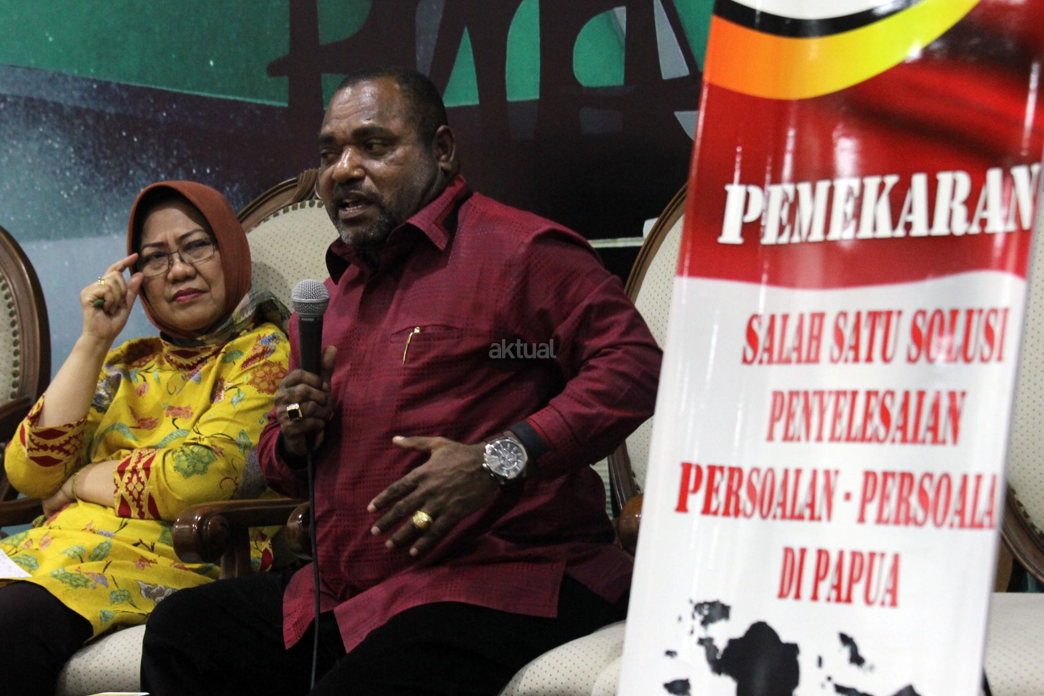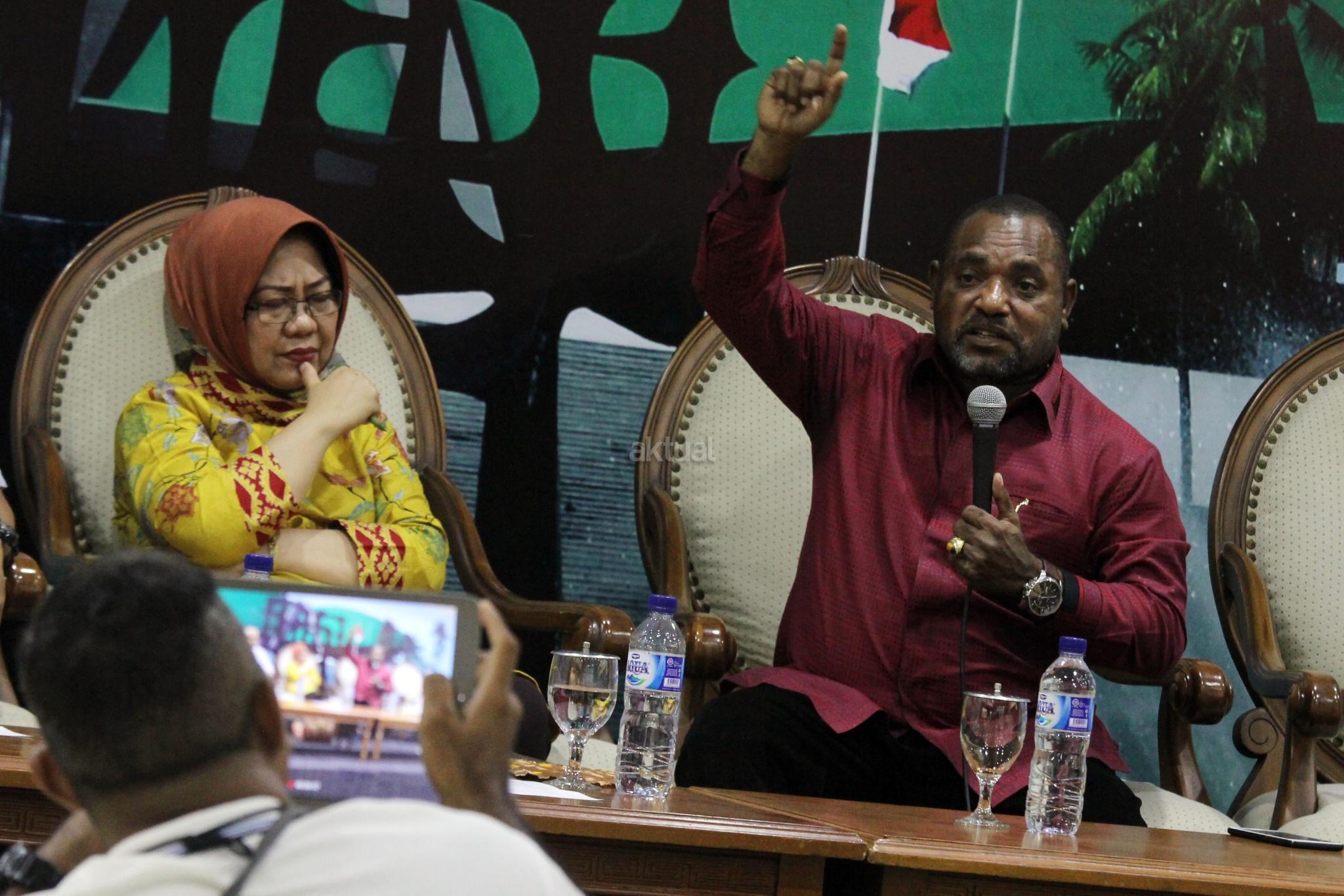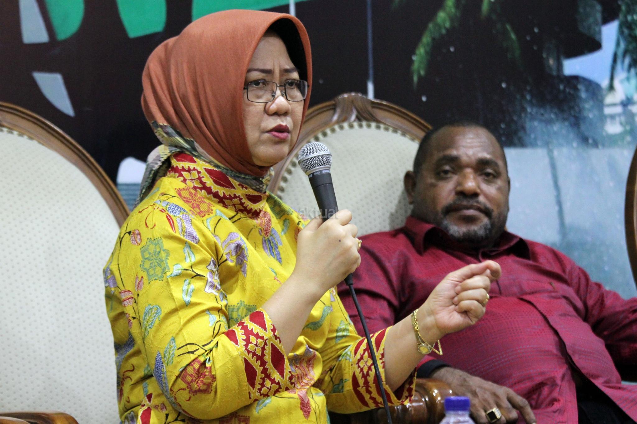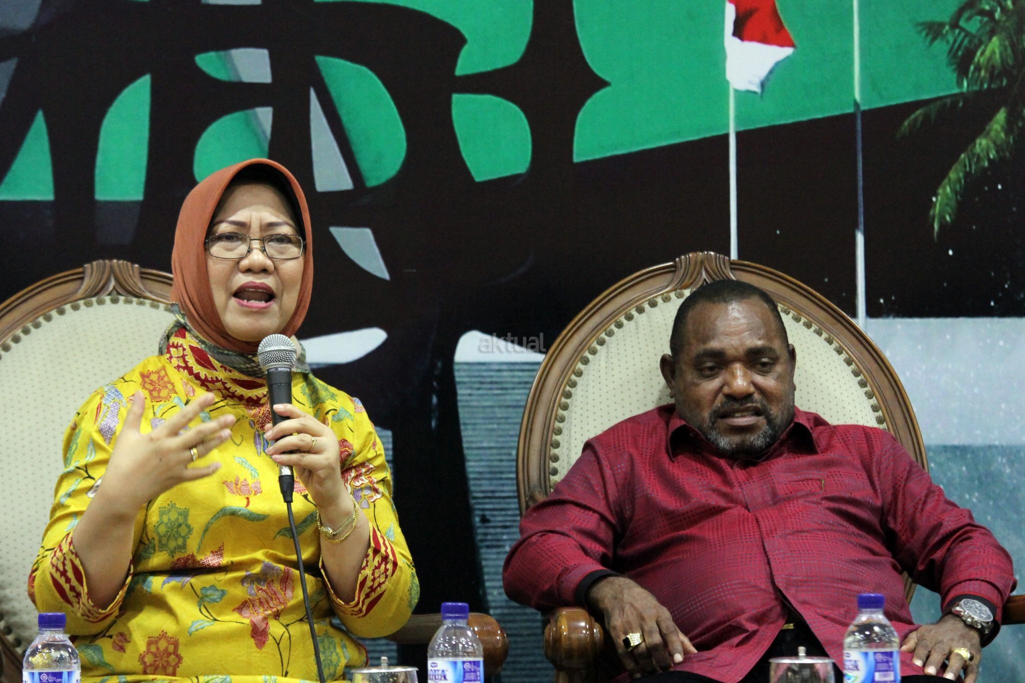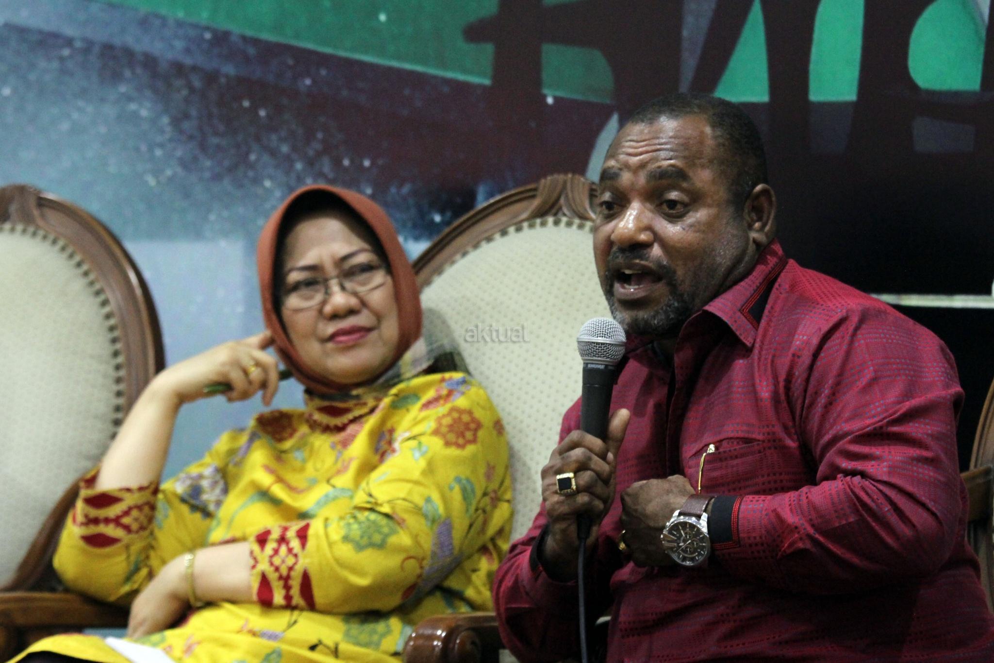 Anggota DPR Fraksi PDIP Dapil Papua Jemmie Demianus Ijie (kanan) dan Peneliti LIPI Siti Zuhro (kiri) berbicara dalam diskusi publik, di Gedung Nusantara III, Kompleks Parlemen Senayan, Jakarta, Selasa (20/2). Dalam diskusi yang bertajuk “Pemekaran Papua Menjadi Solusi atau Petaka?”, mereka berpaandangan bahwa pemekaran dua Propinsi yang sudah ada di Papua yaitu Papua dan Papua Barat, dengan ditambah dengan Provinsi Papua Selata, Papua Tengah dan Papua Barat Daya, akan membuat penataan dan pemerataan pembanguan ekonomi dan Sumber Daya Manusia lebih konstruktif dan efektif, namun harus melalui kajian dan aturan untuk memayungi pelaksanaannya agar tidak menjadi sekadar memuasakan kepentingan kelompok elit saja. AKTUAL/Tino Oktaviano