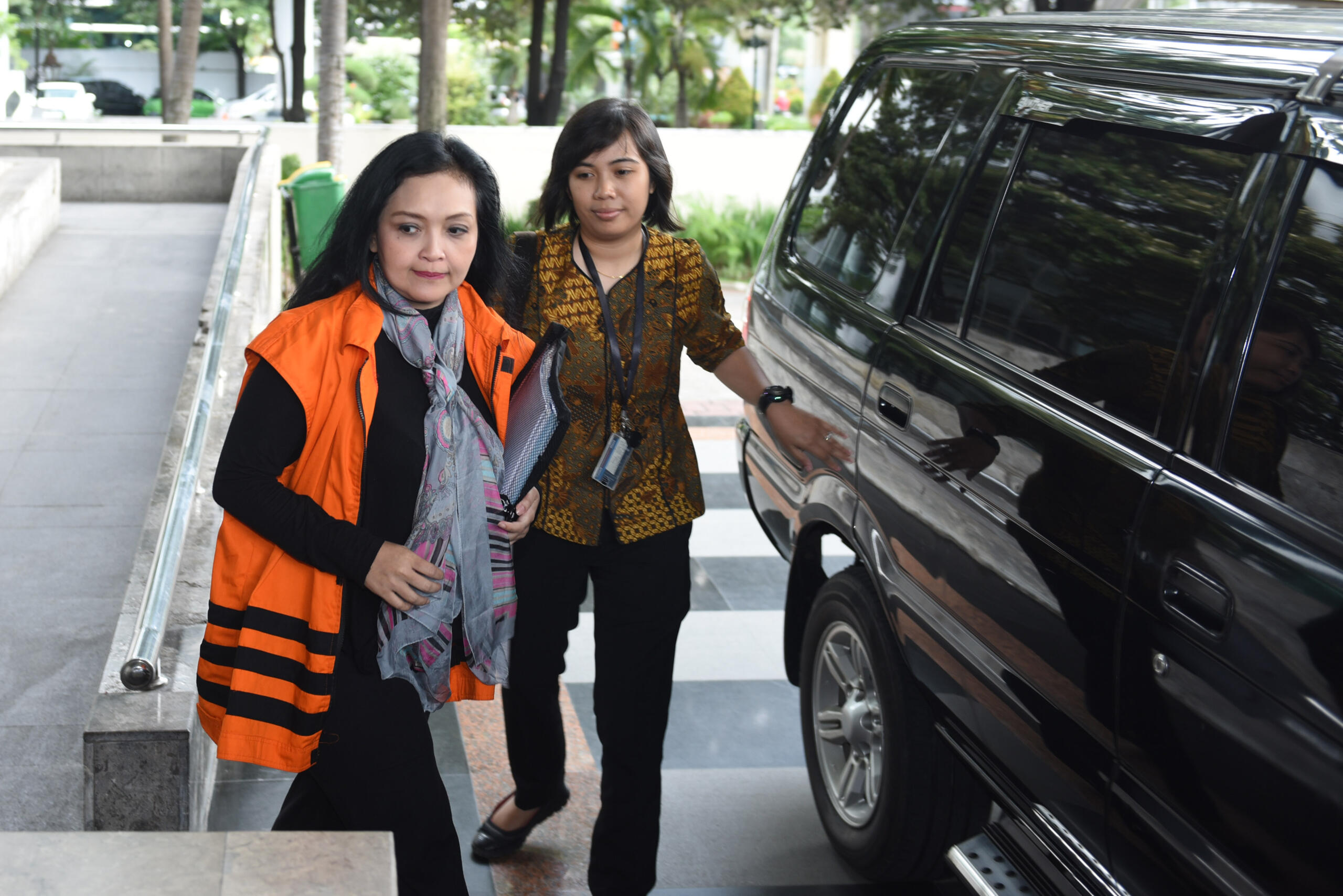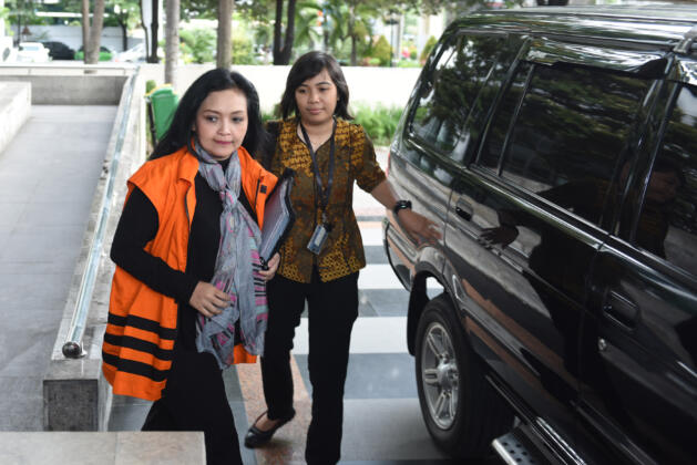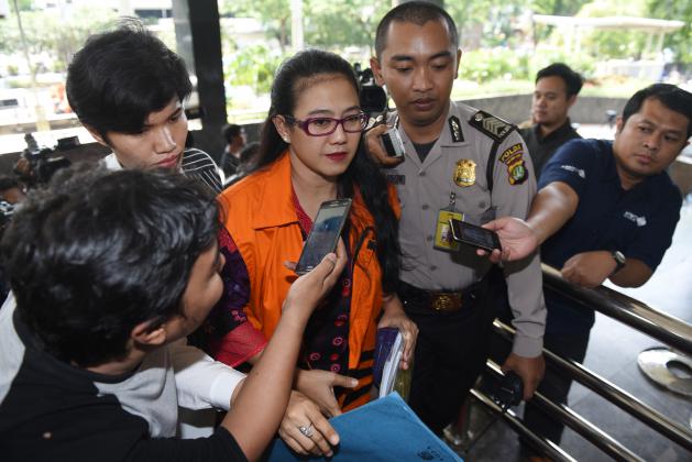 Staf anggota DPR Damayanti Wisnu Putranti, Dessy A Edwin memasuki mobil tahanan seusai menjalani pemeriksaan di Gedung KPK, Jakarta, Jumat (4/3). KPK memeriksa tiga tersangka yang ditangkap saat operasi tangkap tangan yakni anggota Komisi V DPR Damayanti Wisnu Putranti, dua Staf Damayanti, Dessy A Edwin dan Julia Prasetyarini terkait kasus dugaan suap pada proyek Kementerian Pekerjaan Umum dan Perumahan Rakyat (PUPR) tahun anggaran 2016. ANTARA FOTO/Hafidz Mubarak A./ama/16