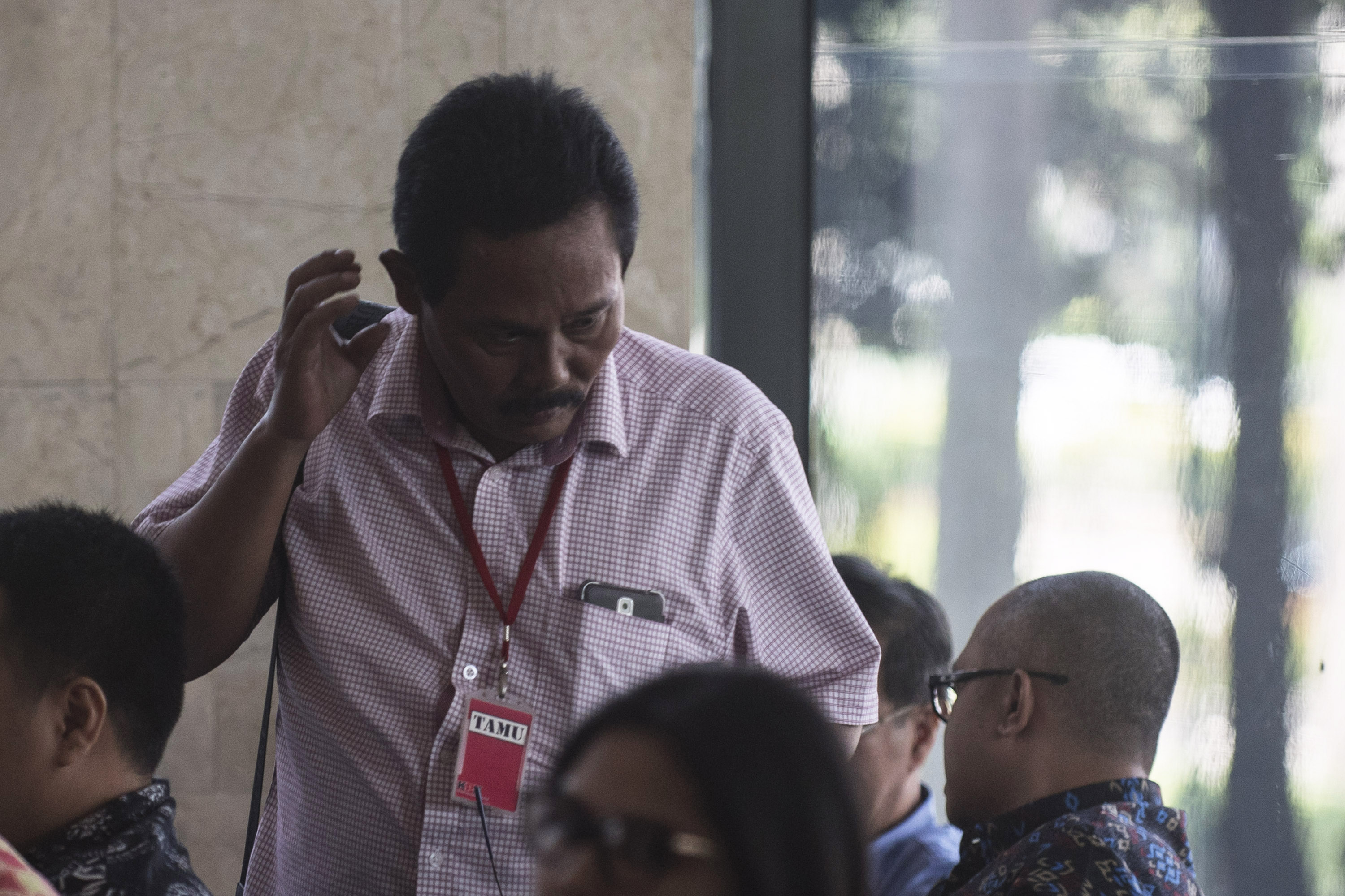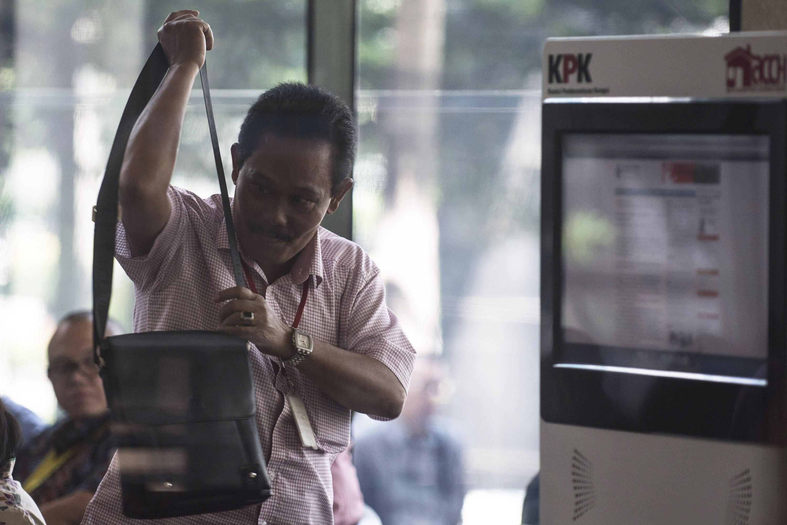 Wakil Ketua DPRD Provinsi Sumut Ruben Tarigan bersiap menjalani pemeriksaan di Gedung KPK, Jakarta, Senin (18/7). Ruben diperiksa sebagai saksi dalam kasus suap di DPRD Sumut periode 2009-2014 dan 2014-2020 dengan tersangka Muhammad Afan. ANTARA FOTO/Sigid Kurniawan/pd/16.