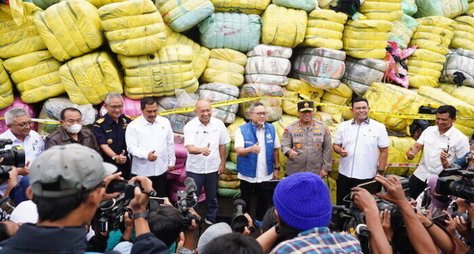 “Pemerintah utamakan menindak tegas dari hulu. Berdasarkan data dari KemenkopUKM, impor pakaian bekas sudah menguasai 31 persen pasar UMKM. Untuk itu, impor pakaian bekas harus ditertibkan. Kami tegaskan sekali lagi, menjual pakaian bekas boleh dan menjual barang impor yang sudah diatur diperbolehkan, yang tidak boleh itu menjual pakaian bekas impor. Hal ini karena impor pakaian bekas mengganggu industri tekstil dan alas kaki sehingga harus segera diatasi,” tegas Mendag Zulkifli Hasan.