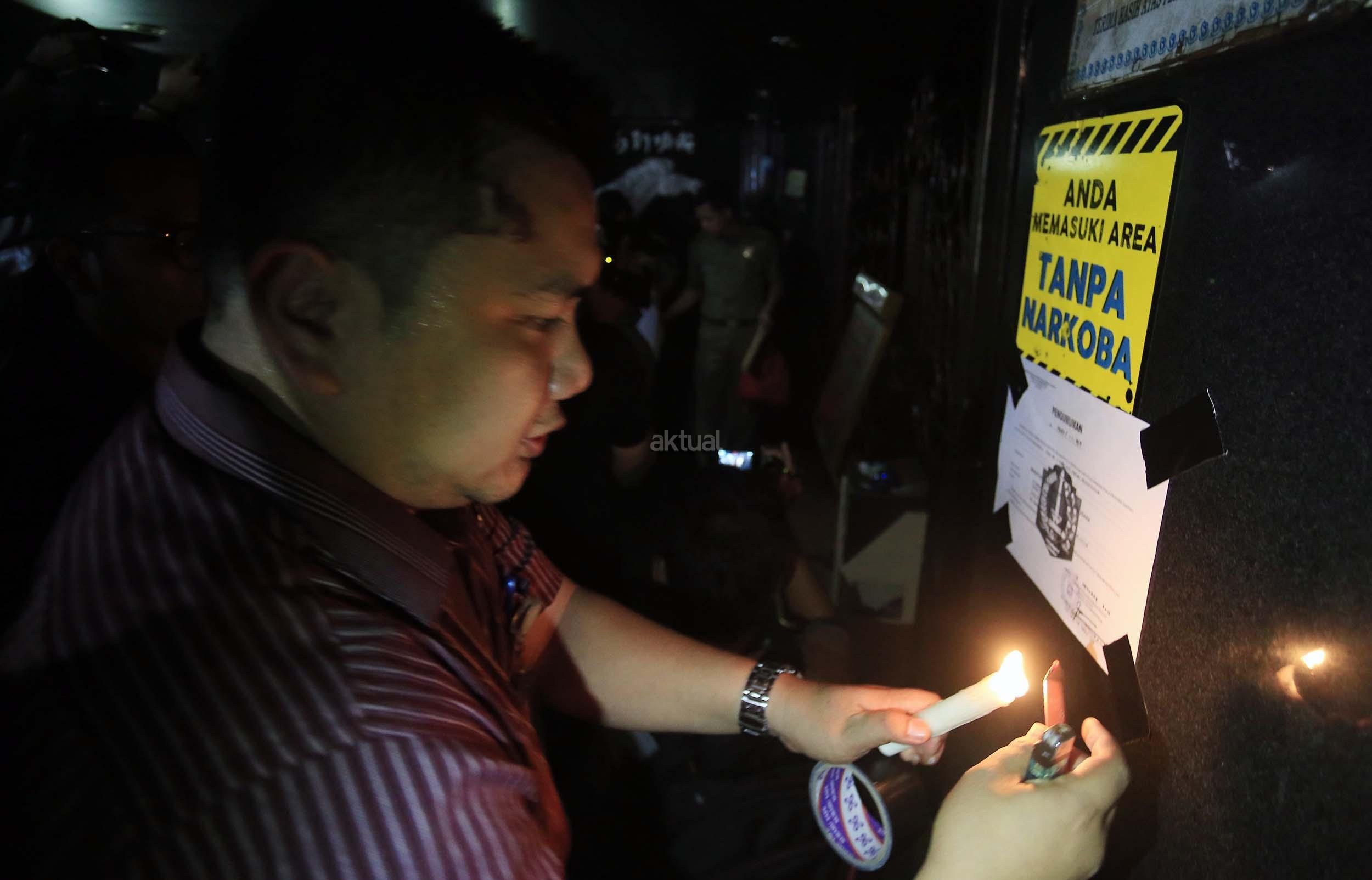 Anggota Satpol PP menyegel tempat hiburan malam Mille"s di kawasan Mangga Besar, Jakarta, Kamis (13/10/2016). Pemprov DKI menutup tempat hiburan malam tersebut karena diduga menjadi tempat peredaran narkoba. AKTUAL/Munzir