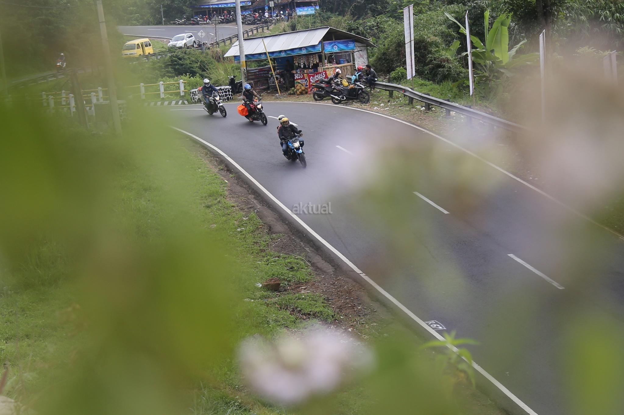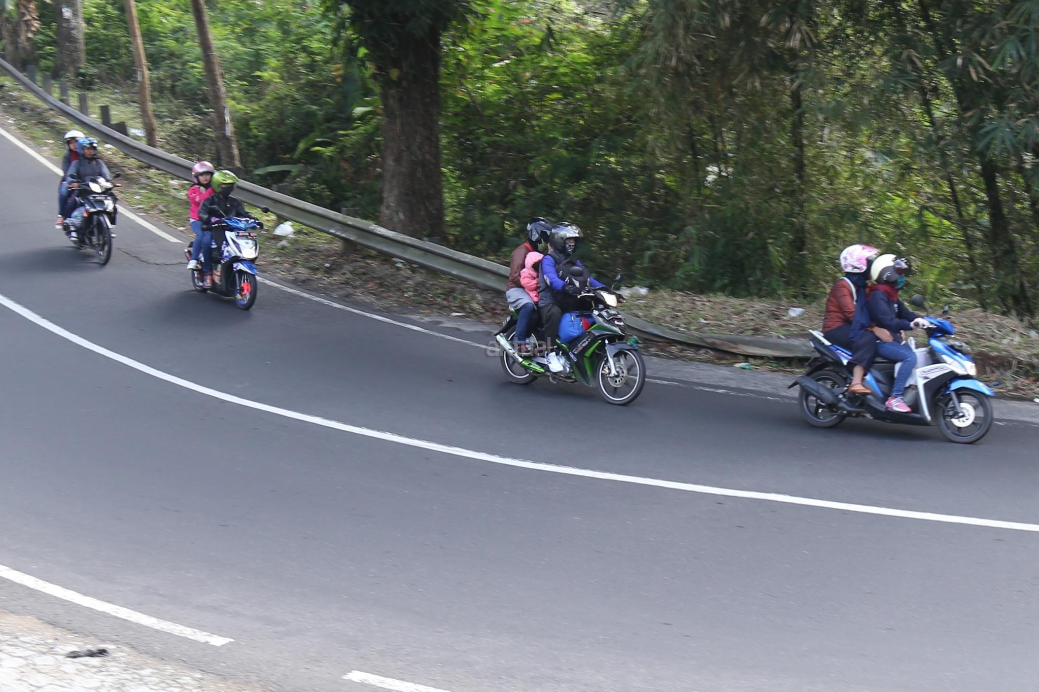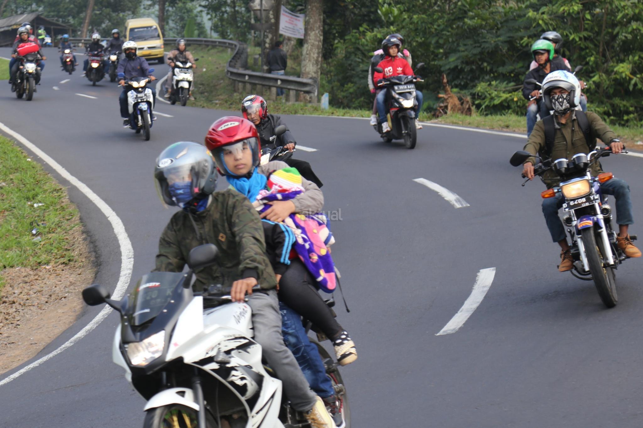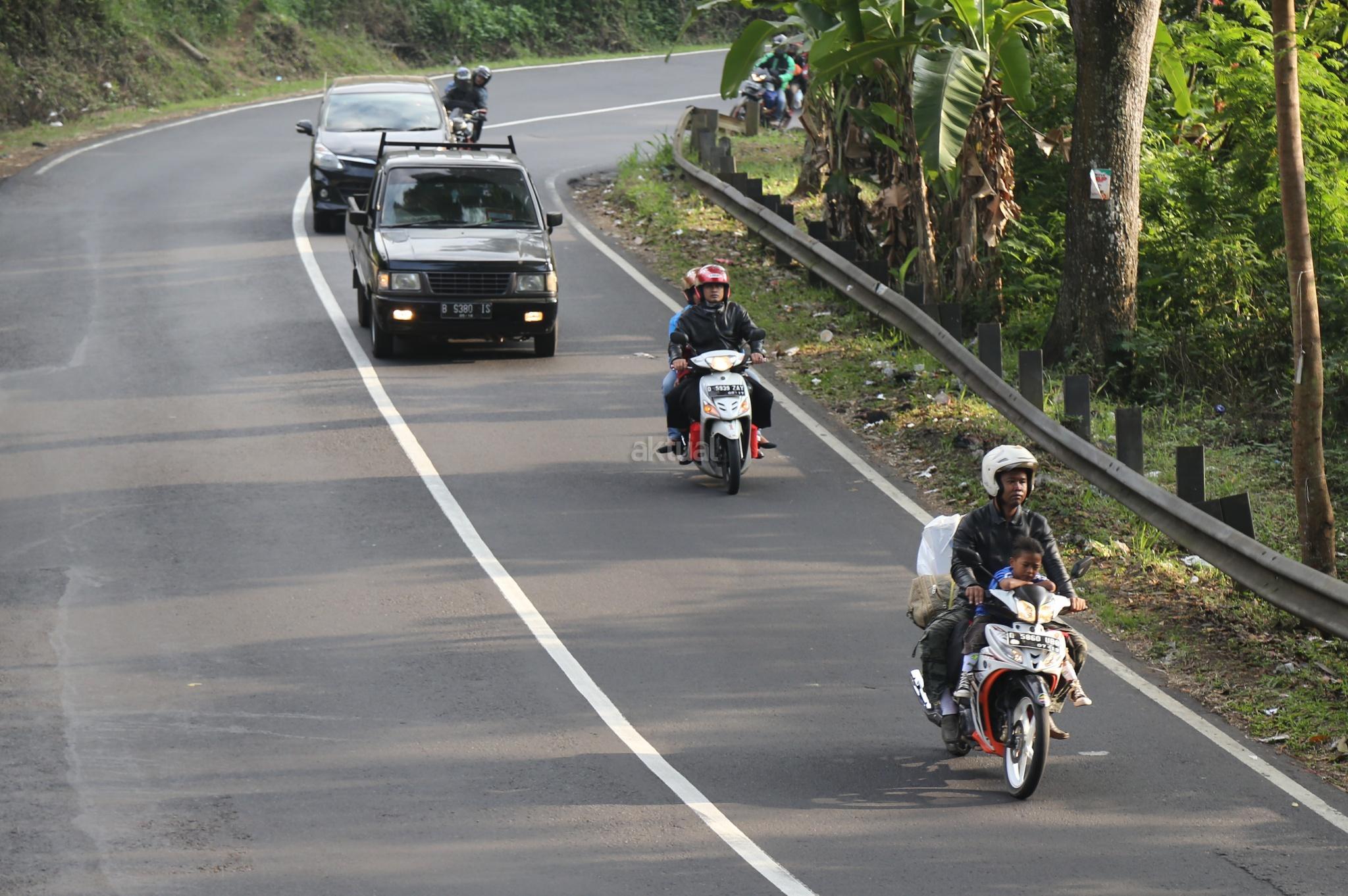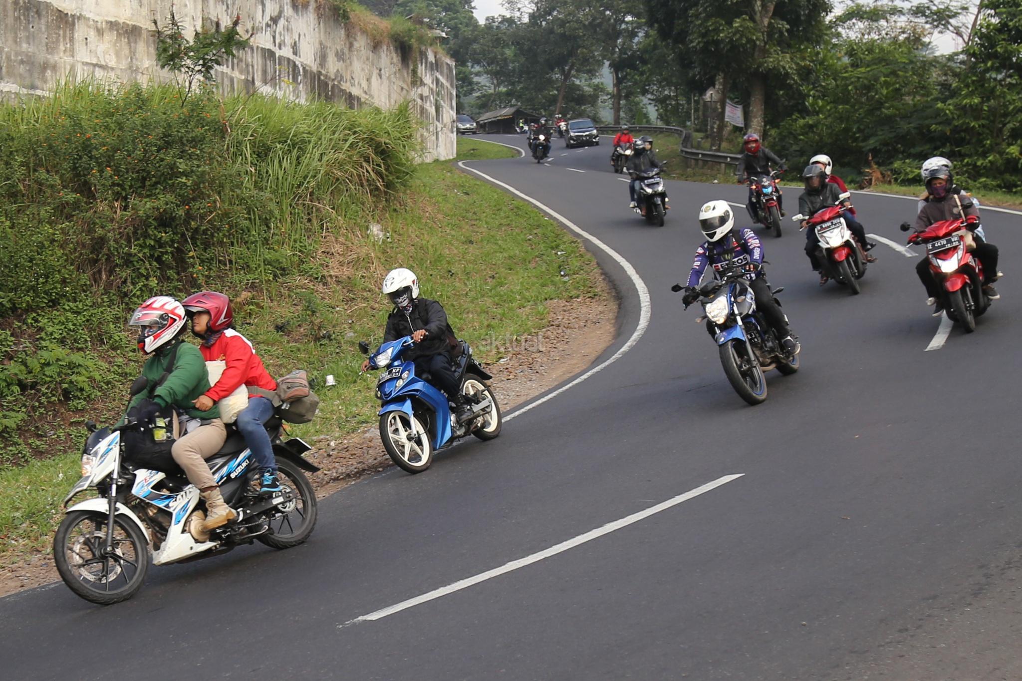Sejumlah pemudik menggunakan sepeda motor saat melintasi jalur Selatan Lingkar Gentong, Kabupaten Tasikmalaya, Jawa Barat, Sabtu (24/6). Jalur lintas selatan menuju Jawa Tengah dan Jawa Timur menjadi rute pemudik pada arus mudik dan arus balik Idul Fitri 1438 H. Jumlah pemudik bersepeda motor meningkat cukup signifikan yakni 18,18% atau sekitar 6,07 juta kendaraan. Tahun lalu ada 5,14 juta pemudik yang menggunakan sepeda motor asal Jakarta. AKTUAL/Tino Oktaviano