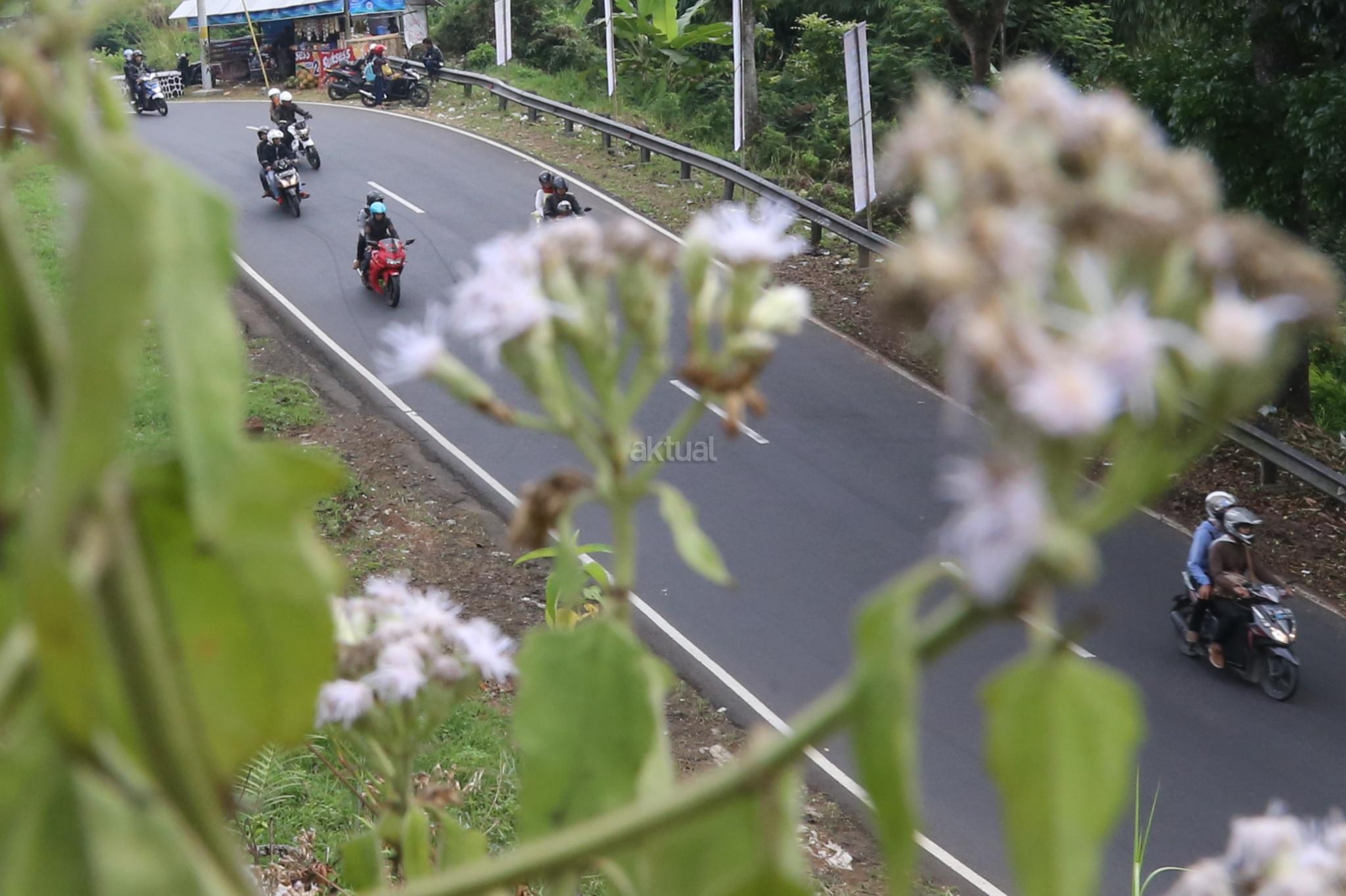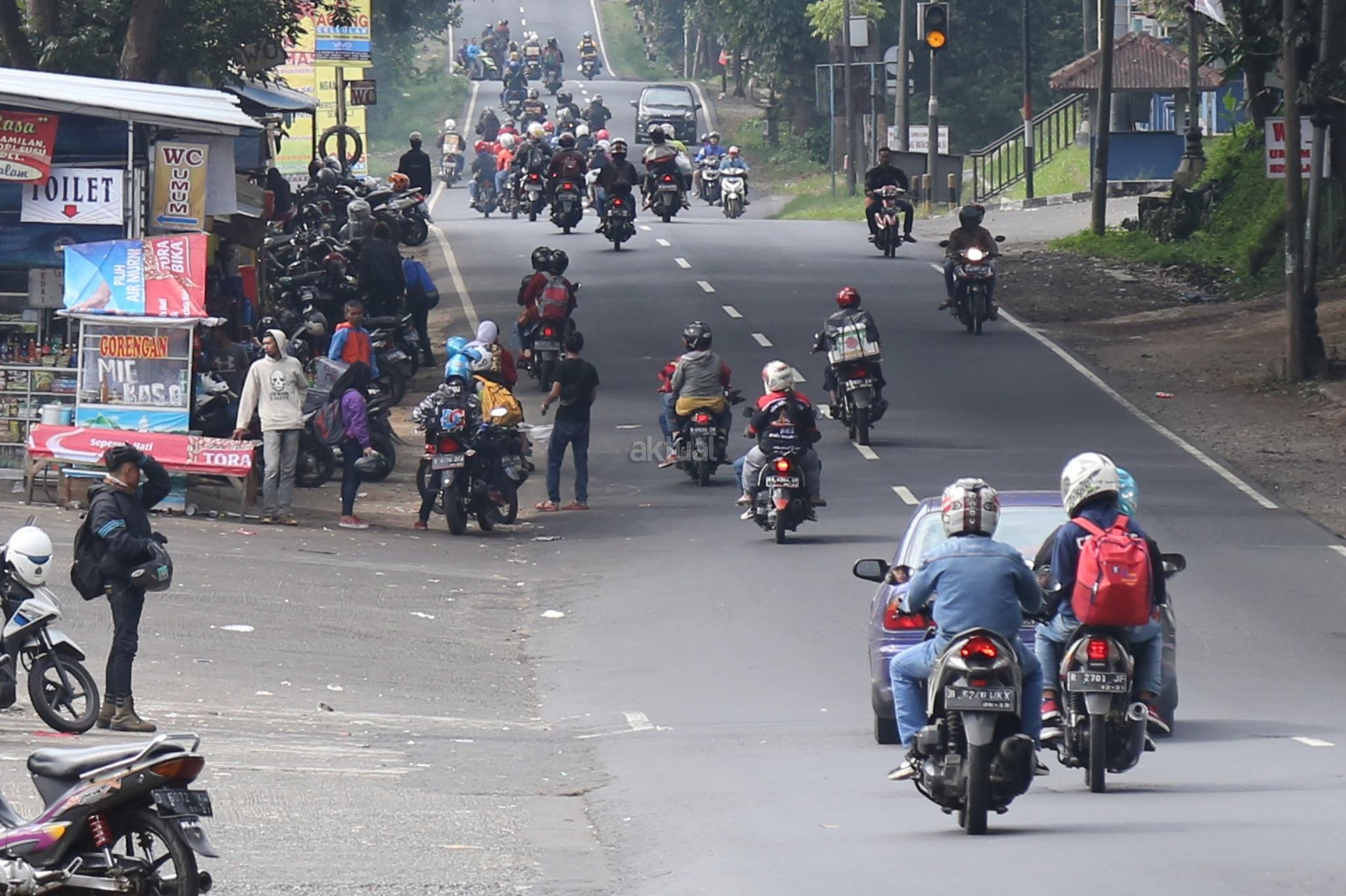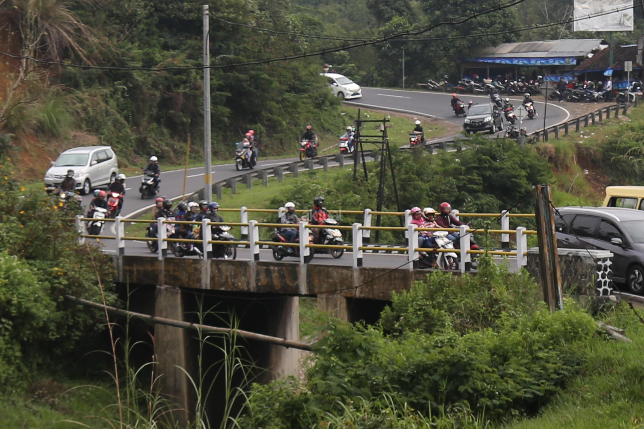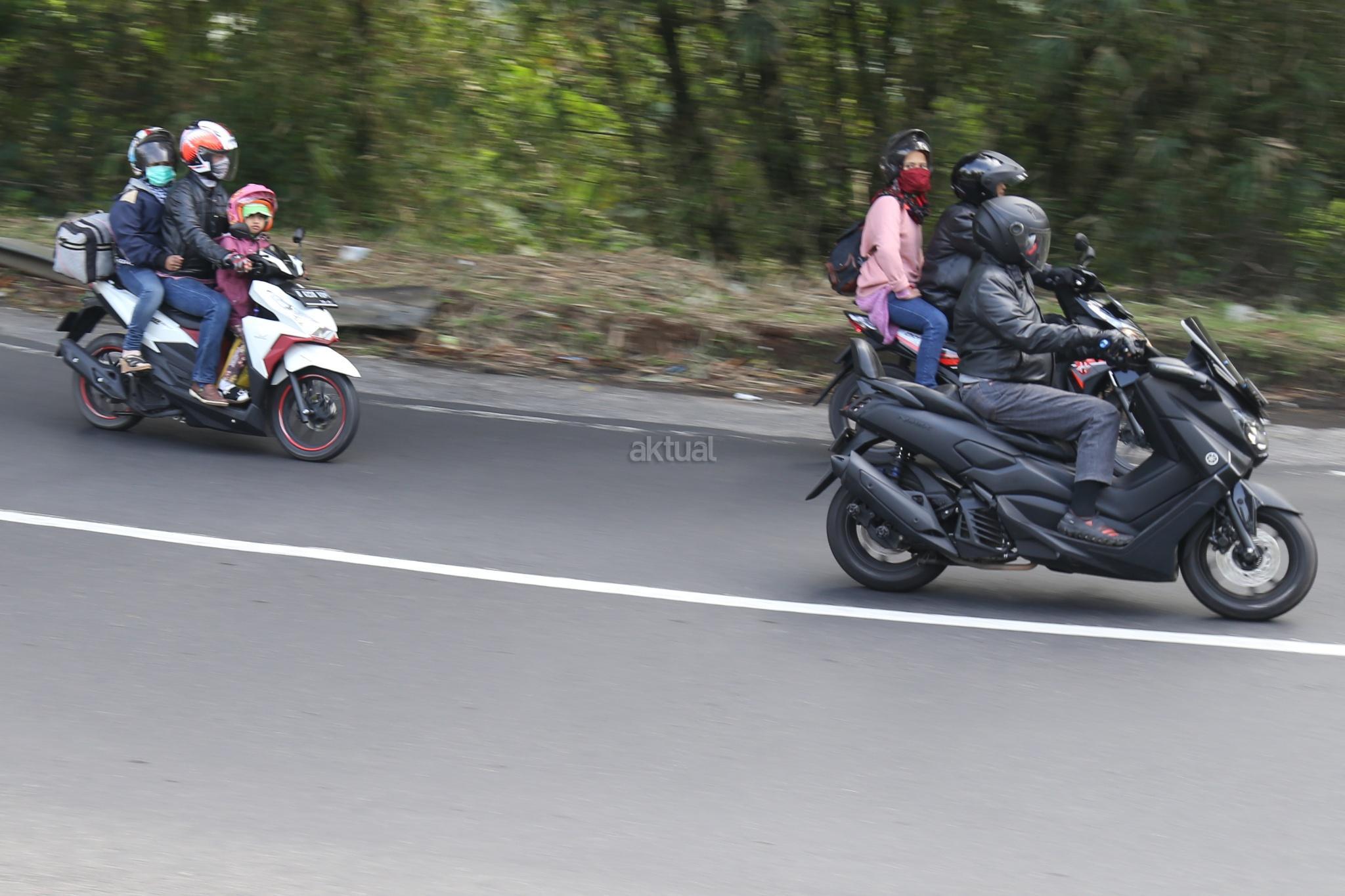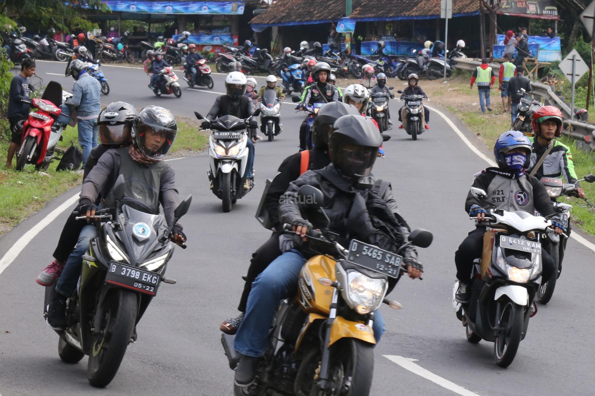 Sejumlah pemudik menggunakan sepeda motor saat melintasi jalur Selatan Lingkar Gentong, Kabupaten Tasikmalaya, Jawa Barat, Sabtu (24/6). Jalur lintas selatan menuju Jawa Tengah dan Jawa Timur menjadi rute pemudik pada arus mudik dan arus balik Idul Fitri 1438 H. Jumlah pemudik bersepeda motor meningkat cukup signifikan yakni 18,18% atau sekitar 6,07 juta kendaraan. Tahun lalu ada 5,14 juta pemudik yang menggunakan sepeda motor asal Jakarta. AKTUAL/Tino Oktaviano
