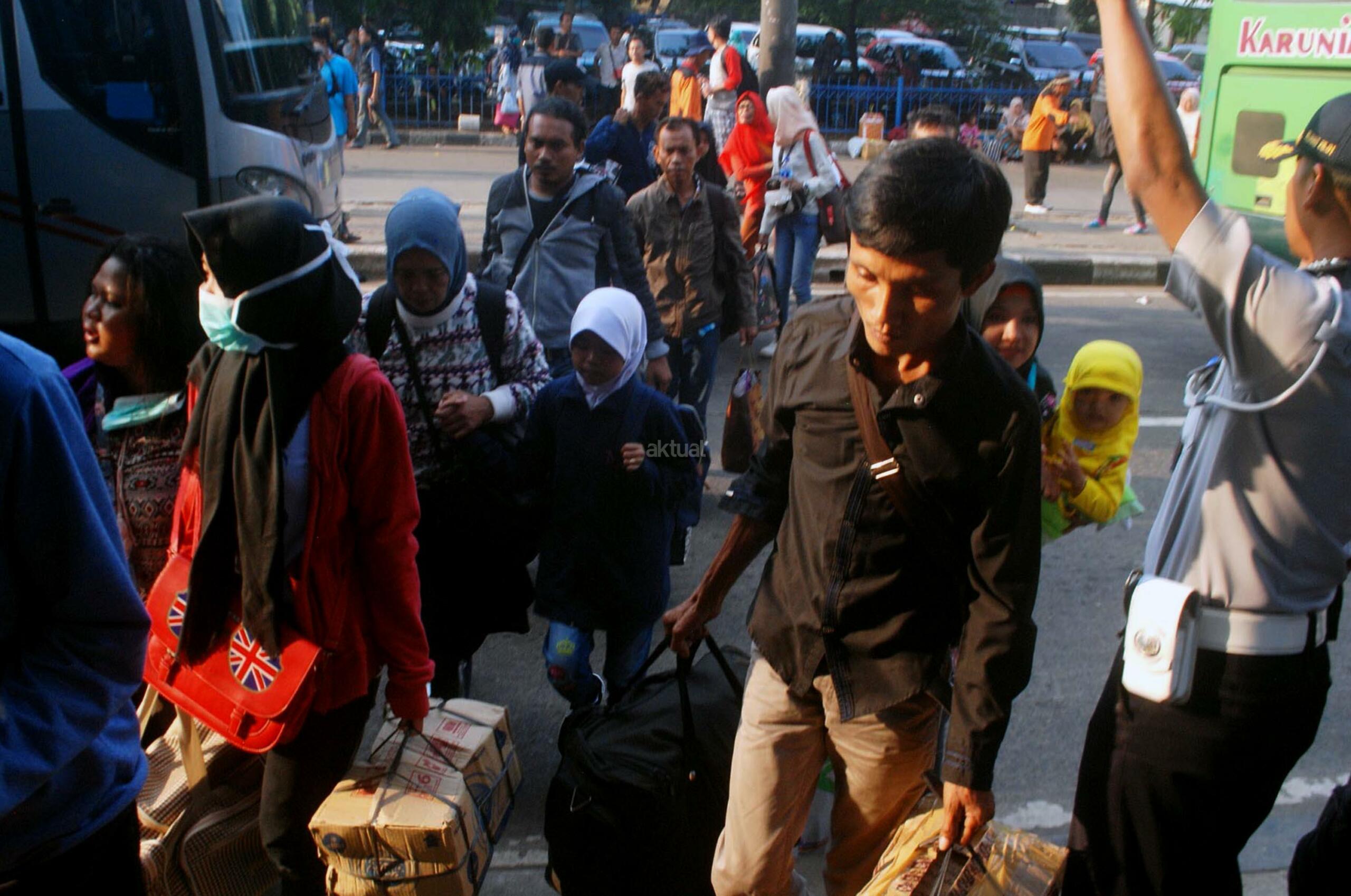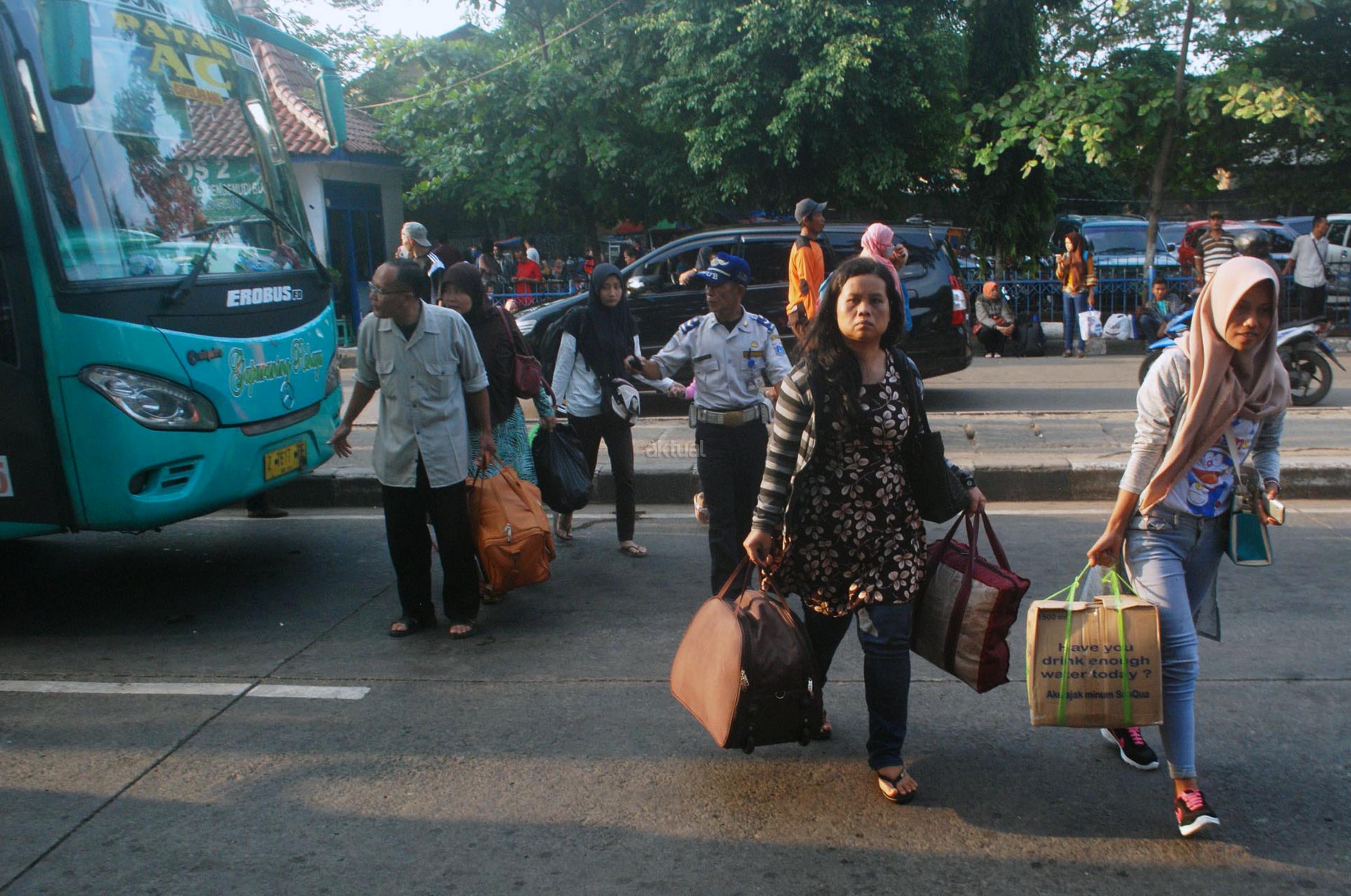 Menjelang berakhirnya libur Lebaran, ribuan pemudik kembali ke Ibu Kota melalui Terminal Kampung Rambutan sebelum memulai rutinitasnya pada esok hari. AKTUAL/Munzir