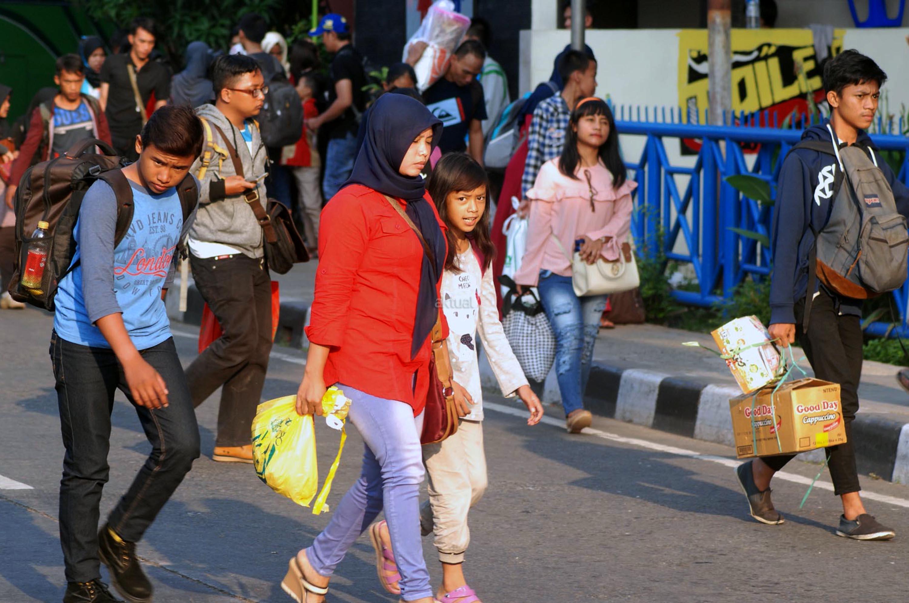 Sejumlah pemudik tiba di Terminal Kampung Rambutan, Jakarta Timur, Minggu (2/7/2017). Menjelang berakhirnya libur Lebaran, ribuan pemudik kembali ke Ibu Kota melalui Terminal Kampung Rambutan sebelum memulai rutinitasnya pada esok hari. AKTUAL/Munzir