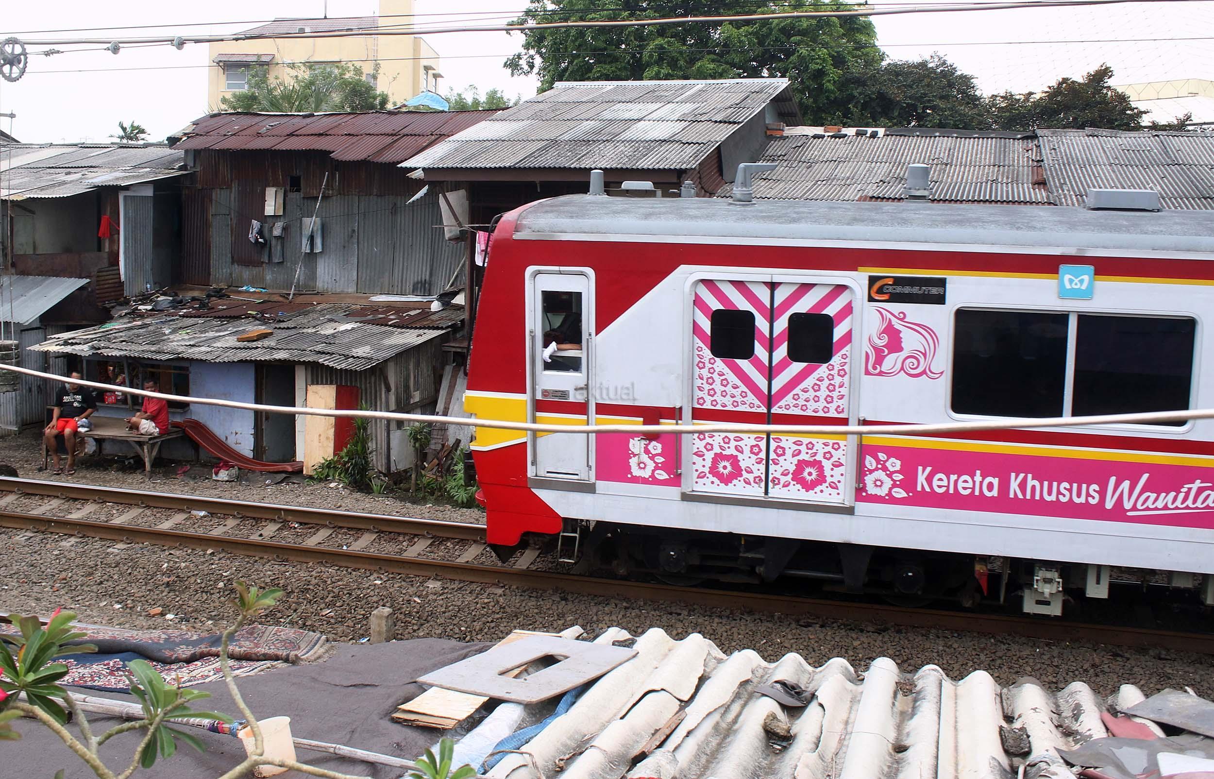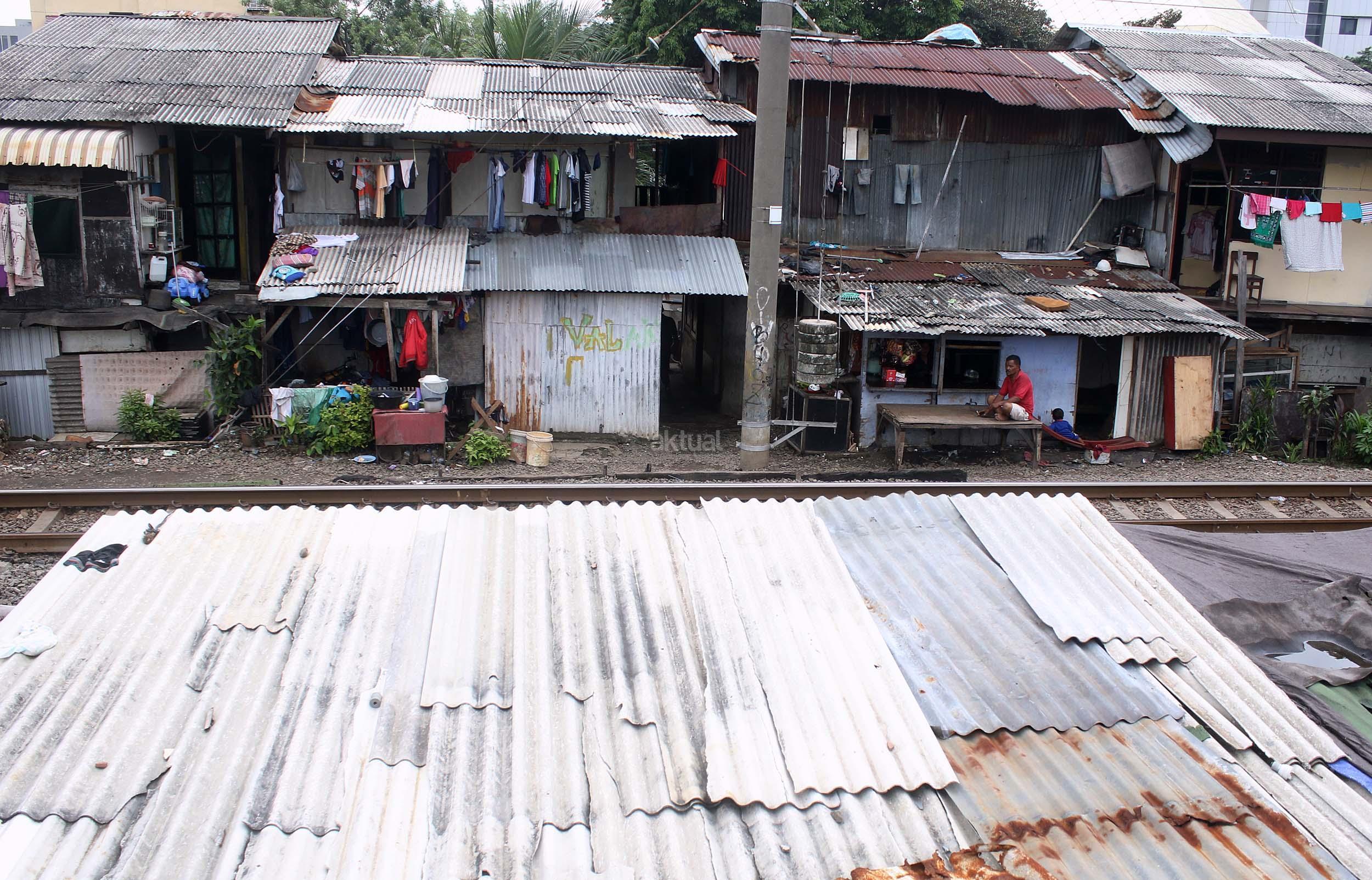 Suasana di sekitar pemukiman kumuh tepi rel kawasan Tanah Abang, Jakarta, Senin (17/10/2016) Selain mengganggu lalu lintas kereta, bangunan kumuh di bantaran rel kereta api ini pun membahayakan penghuni jika kereta melintasi kawasan tersebut. AKTUAL/Munzir