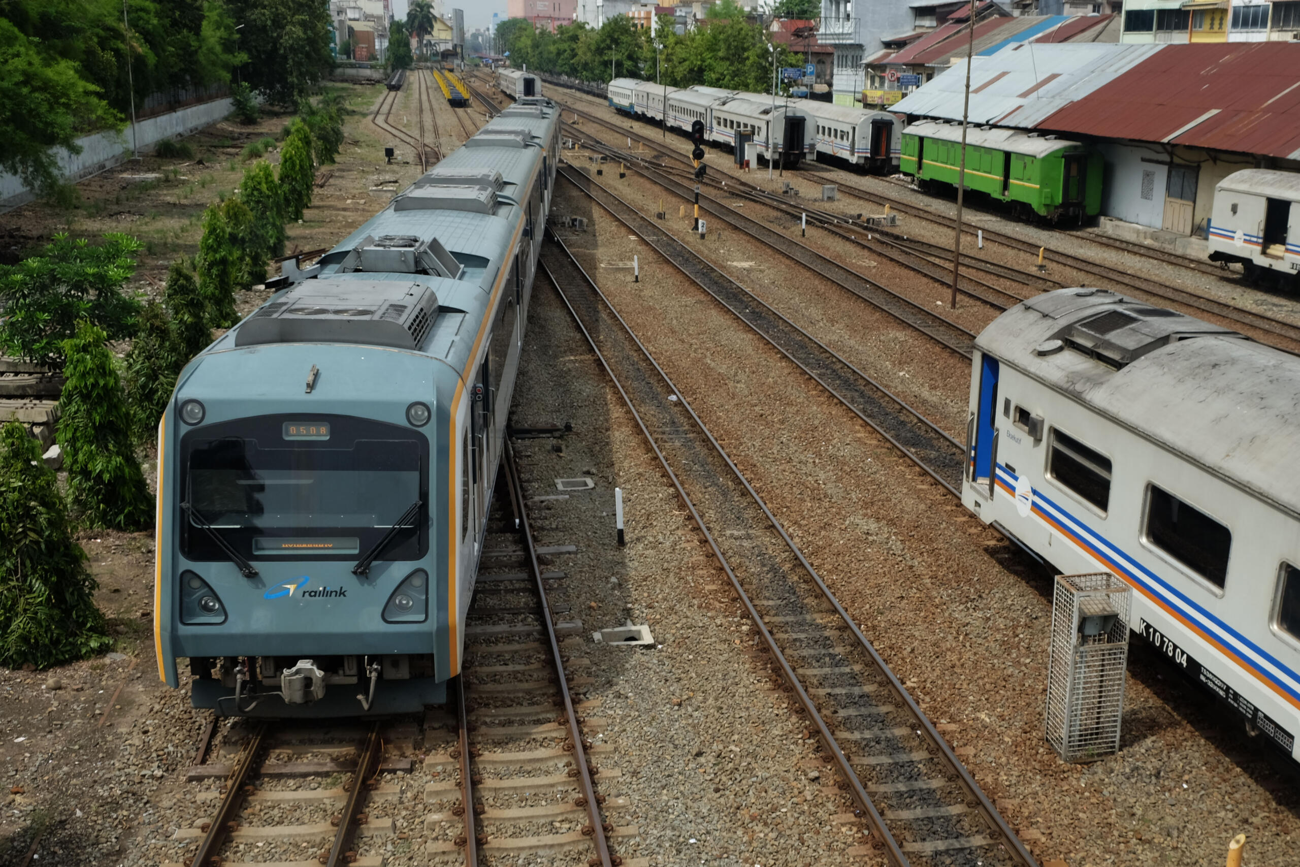 Kereta api Railink tujuan Bandara Kualanamu, Deli Serdang (kiri) berangkat dari Stasiun Kereta Api Bandara, di Medan, Sumatera Utara, Selasa (19/7). PT Railink sebagai anak usaha dari PT Kereta Api Indonesia (Persero) akan memperpanjang rute kereta api bandara, dari Kualanamu, Deli Serdang hingga Binjai dan ditargetkan beroperasi pada semester II Tahun 2017. ANTARA FOTO/Irsan Mulyadi/foc/16.