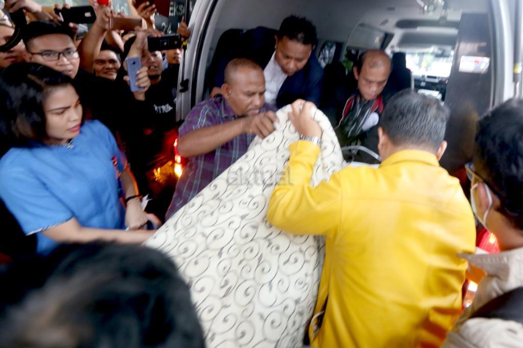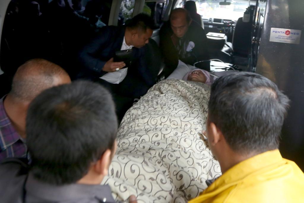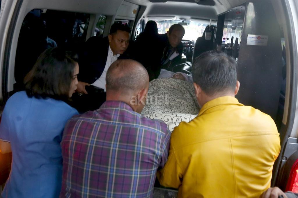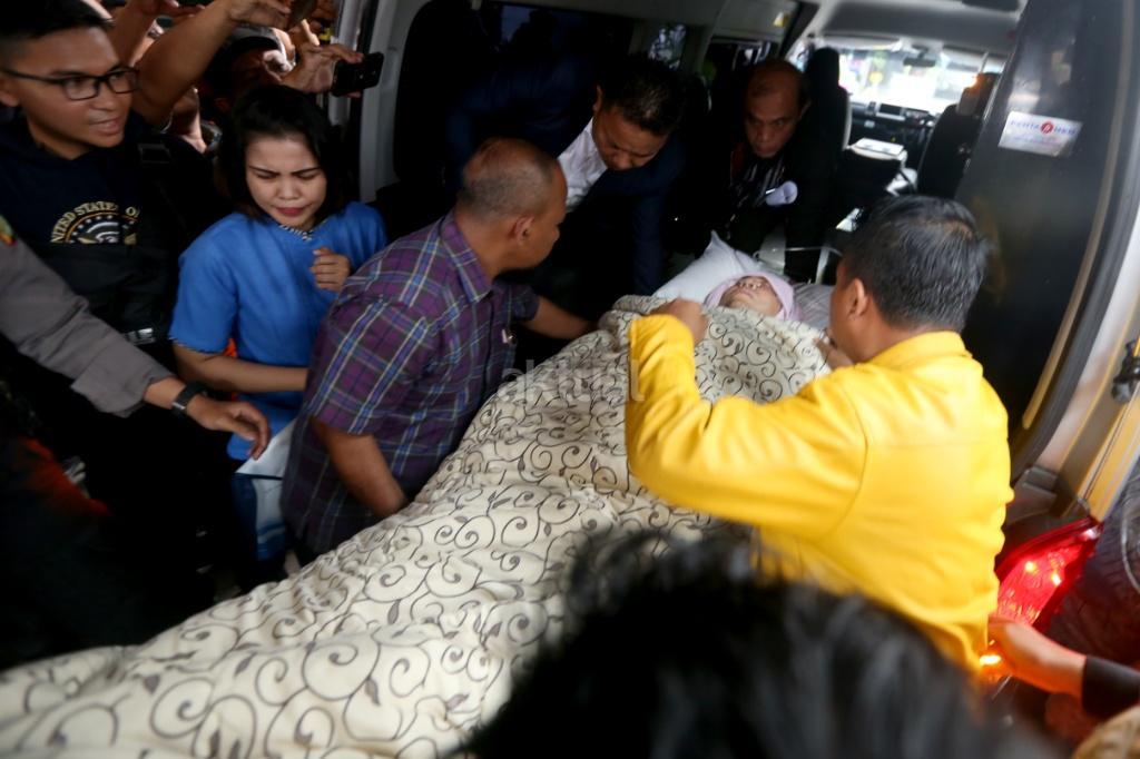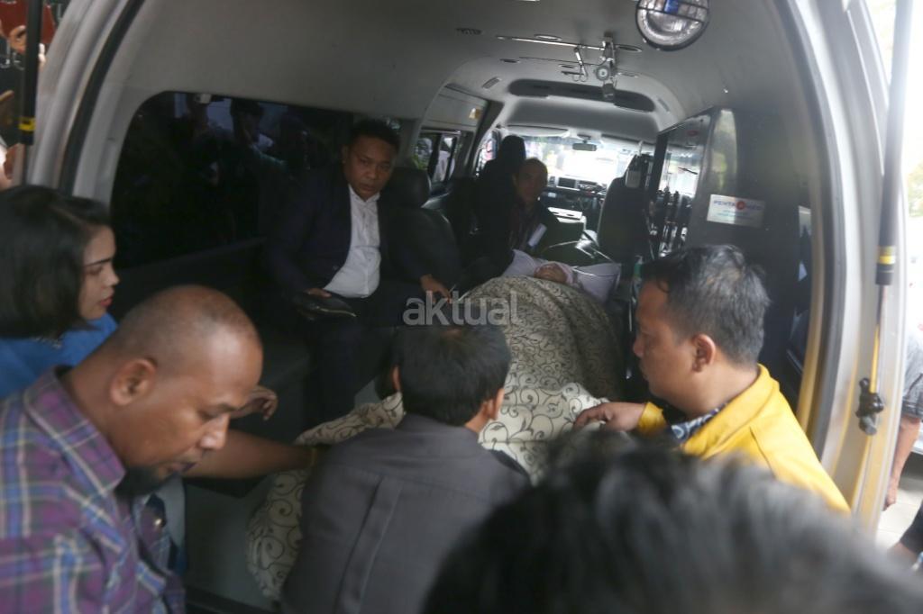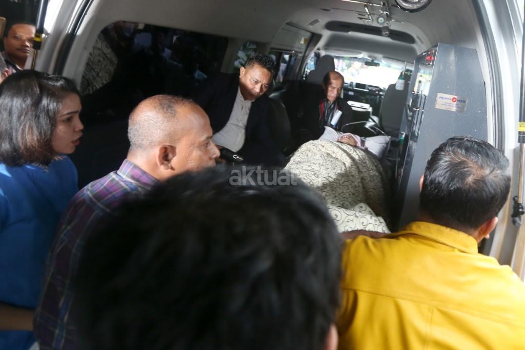 Tersangka kasus korupsi e-KTP Setya Novanto saat sampai di Rumah Sakit Cipto Mangunkusumo (RSCM), Jakarta, Jumat (17/11). Ketua DPR RI itu dipindahkan dari Rumah Sakit Medika Permata Hijau ke RSCM karena mesin MRI di RS Medika Permata Hijau rusak. AKTUAL/Tino Oktaviano