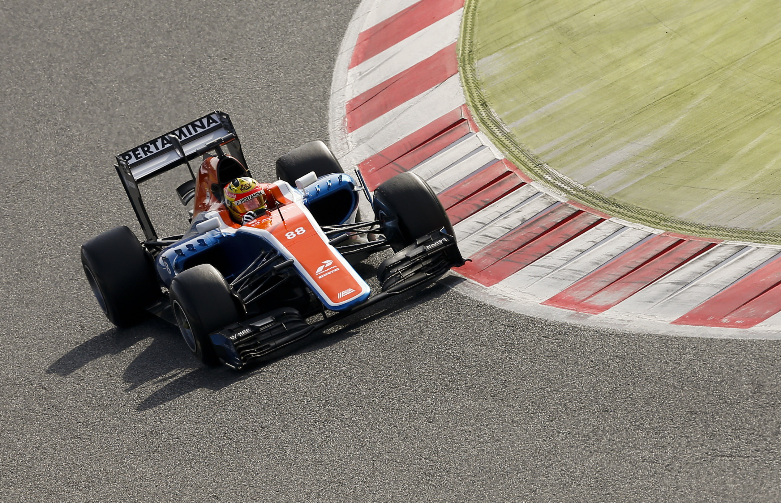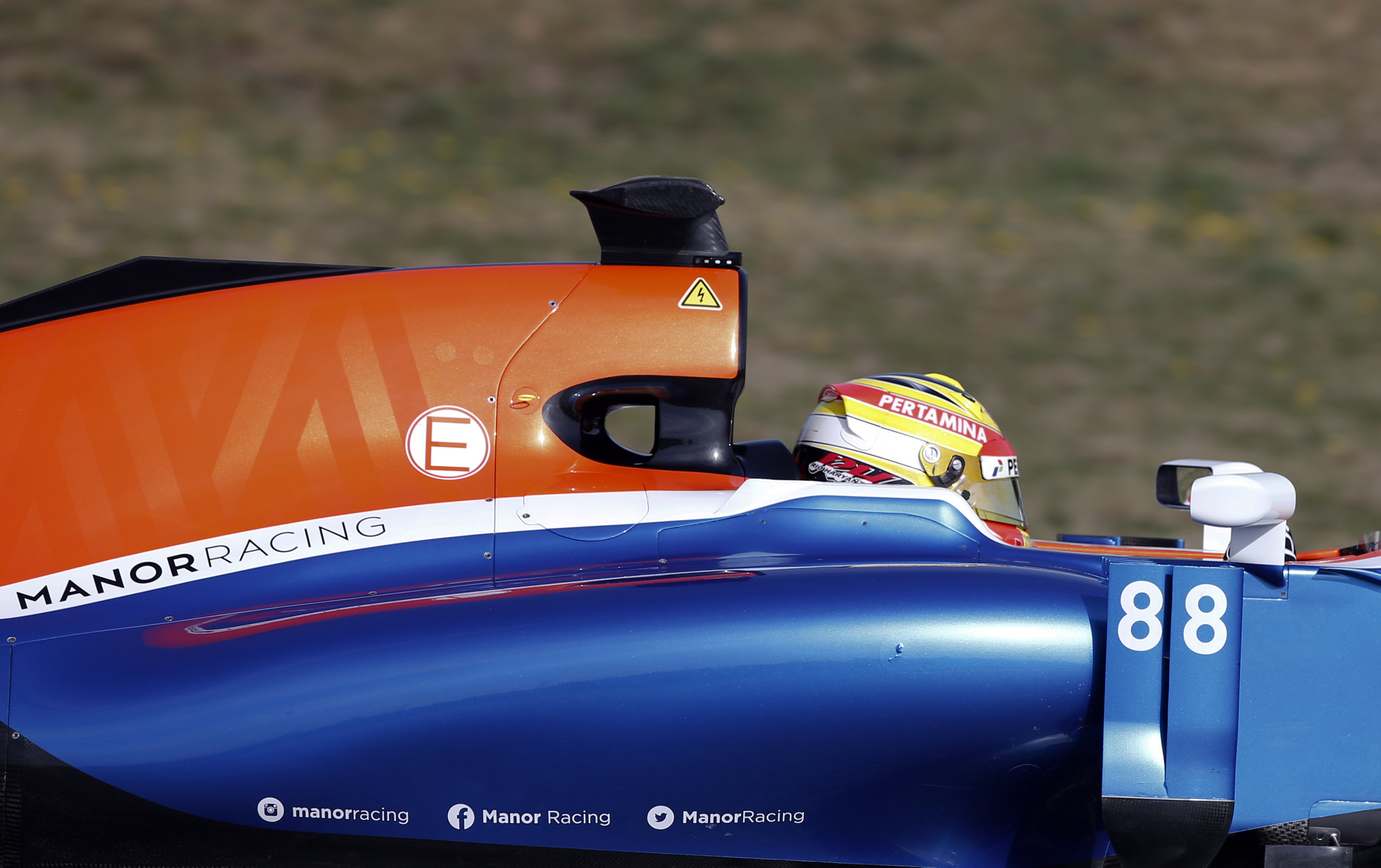 Pembalap Formula 1 dari Manor Racing, Rio Haryanto memacu mobil MRT05 saat tes di Sirkuit Catalunya, Spanyol, Rabu (24/2). ANTARA FOTO/REUTERS/Sergio Pere/pras/16