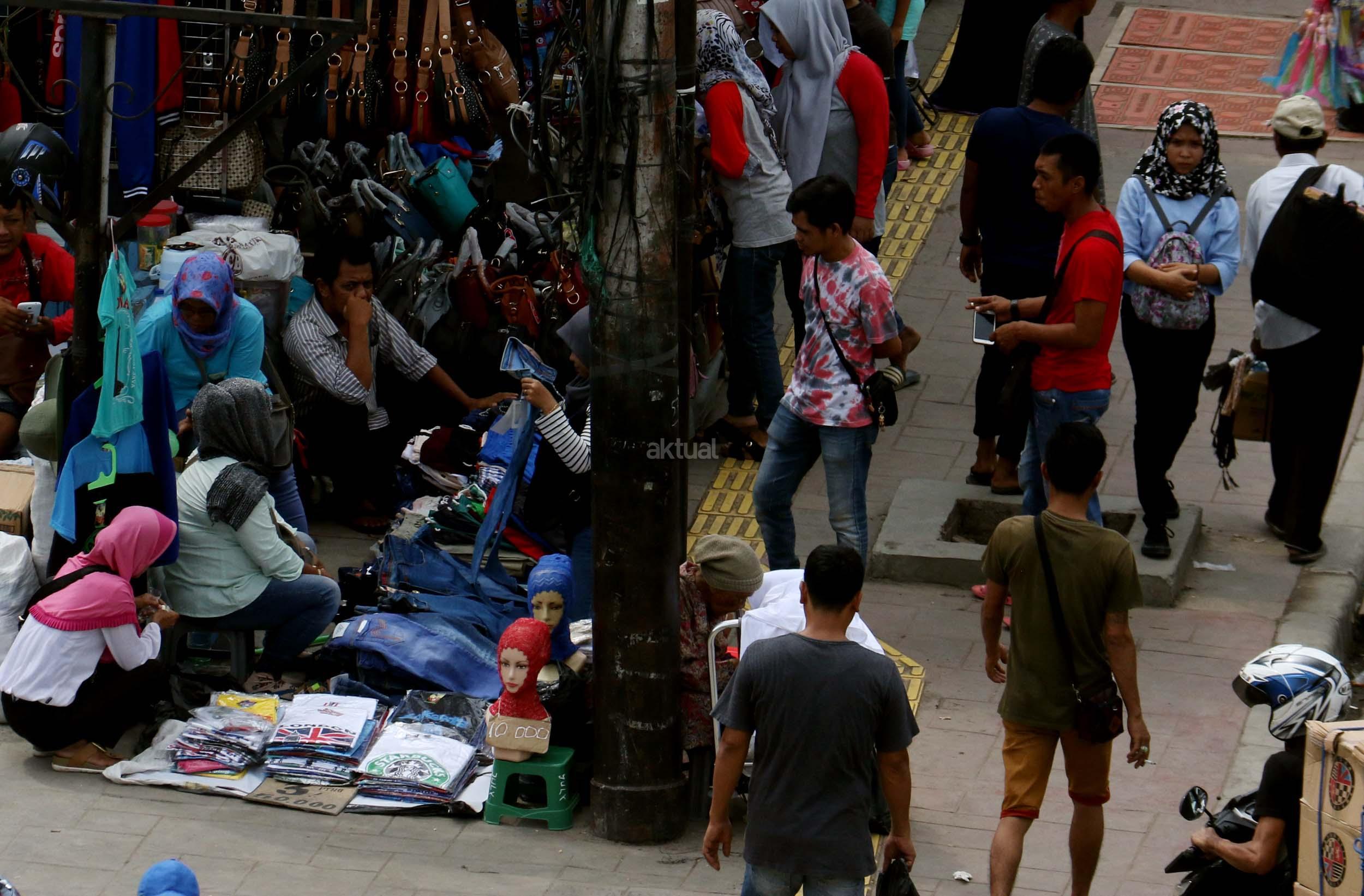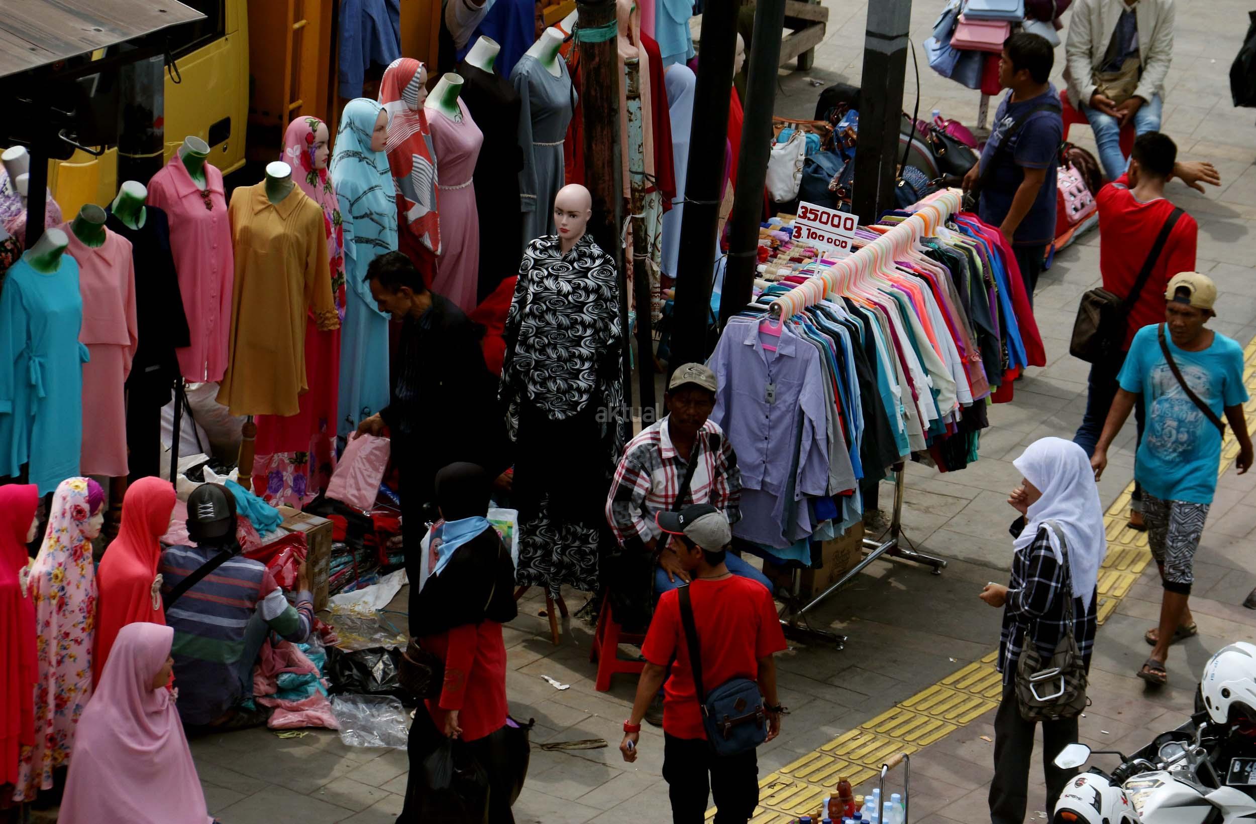 Sejumlah Pedagang Kaki Lima (PKL) berjualan di atas trotoar di Tanah Abang, Jakarta, Senin (9/1/2017). Pemerintah Provinsi DKI Jakarta akan memprioritaskan penataan Pedagang Kaki Lima (PKL) Tanah Abang yang berjualan di atas trotoar yang baru saja dilebarkan. AKTUAL/Munzir