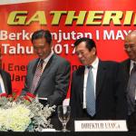 (Dari kiri ke kanan), Direktur PT Mayora Indah Tbk Wardhana Atmadja, berbincang dengan Direktur Utama Andre Atmadja, Komisaris Hermawan Lesmana dan Direktur Hendrik Polisar seusai Penawaran Umum Obligasi Berkelanjutan I Mayora Indah Tahap I Tahun 2017 dengan nilai sebanyak banyaknya Rp500 miliar di Jakarta, Kamis (19/1). Dana yang diperoleh dari hasil penawaran obligasi setelah dikurangi biaya biaya emisi akan digunakan seluruhnya untuk pelunasan Sukuk Mudharabah II Mayora Indah Tahun 2012 yang akan jatuh tempo pada bulan Mei 2017 sejumlah Rp250 miliar, sisainya akan digunakan sebagai modal kerja. AKTUAL/Eko S Hilman