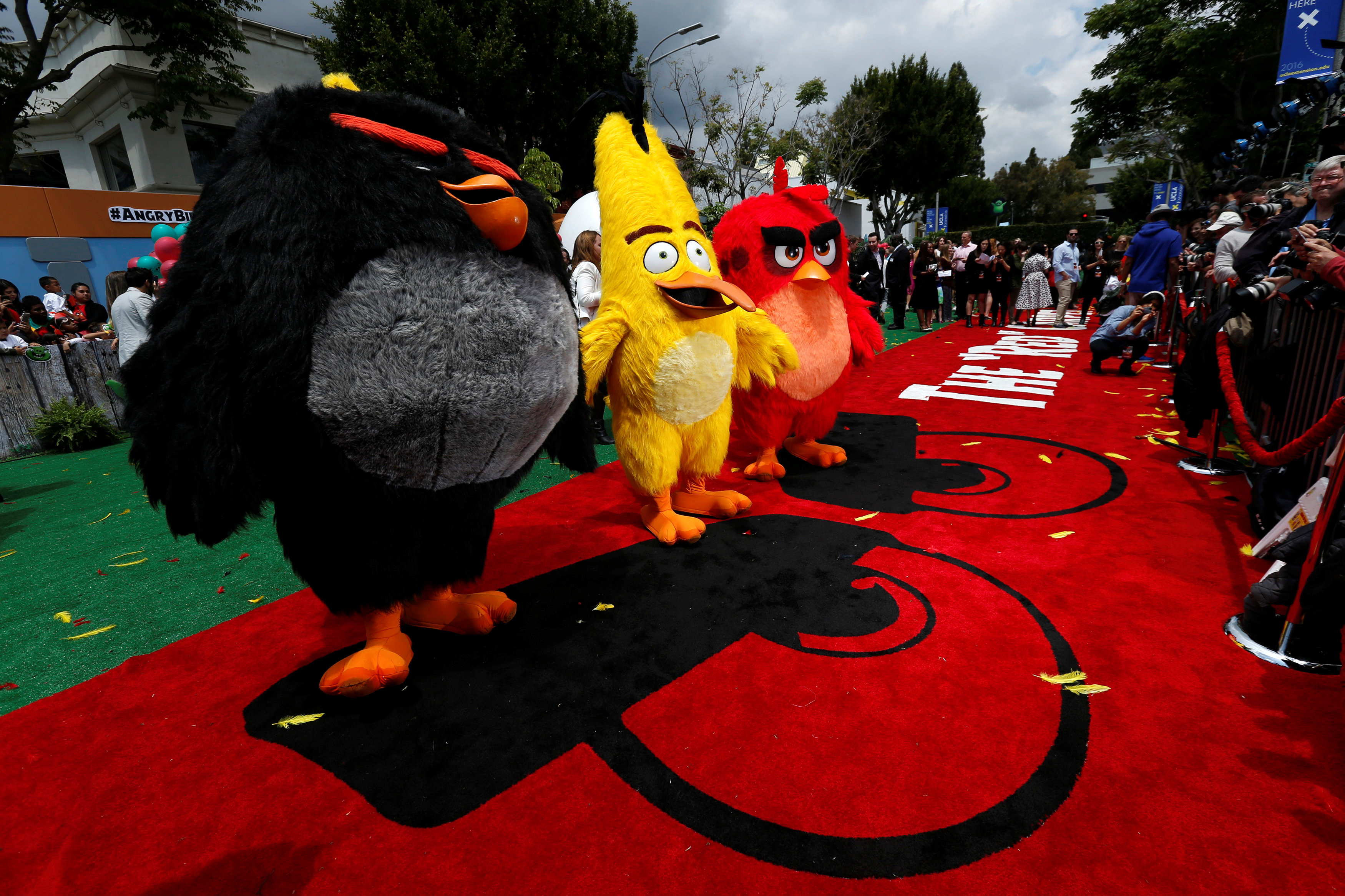 Karakter-karakter film berfoto bersama dalam premier "The Angry Birds Movie" di Los Angeles, Amerika Serikat, Sabtu (7/5). ANTARA FOTO/REUTERS/Mario Anzuoni/cfo/16
