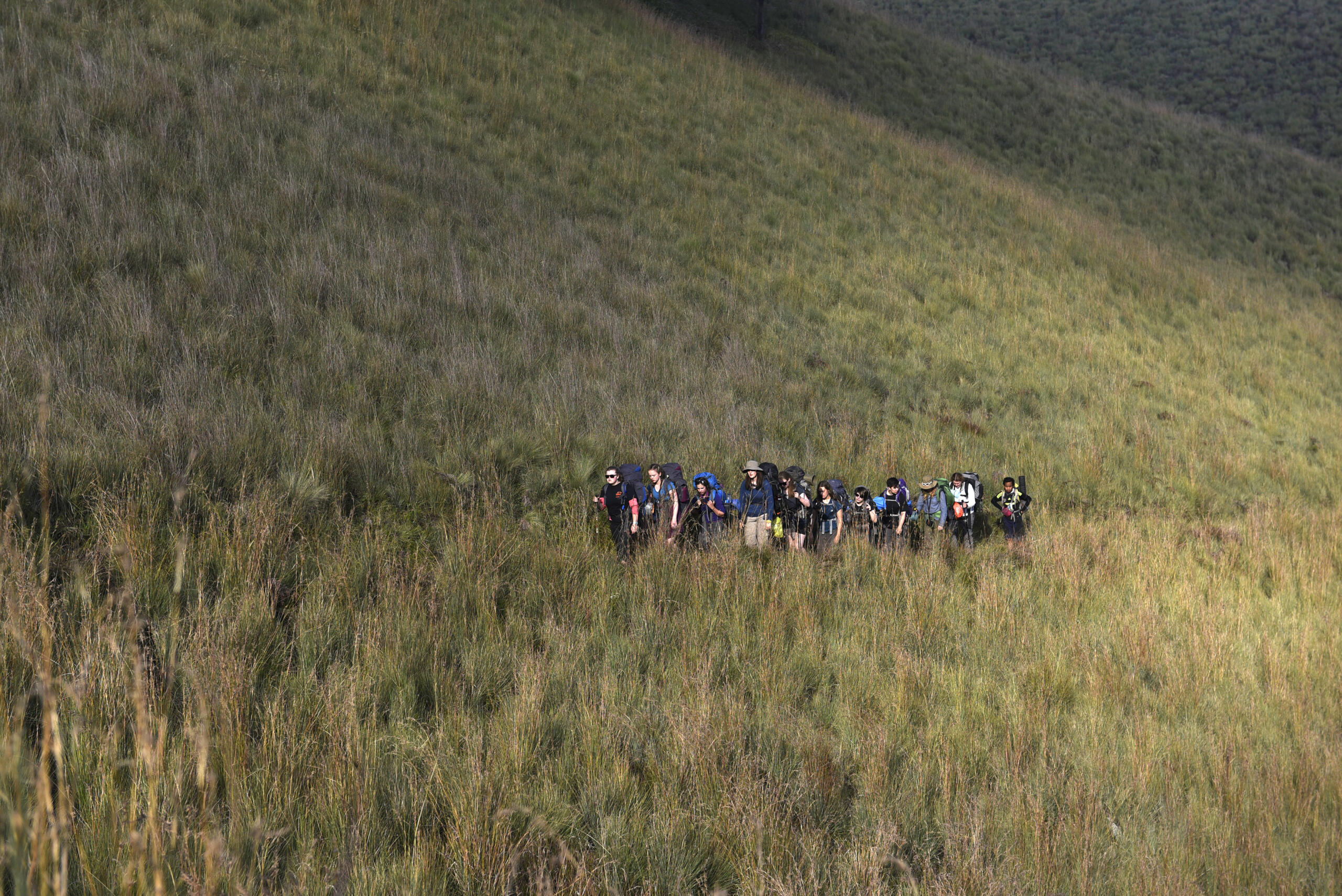 Pendaki melintasi perbukitan saat perjalanan menuju puncak Gunung Semeru, Malang, Jawa Timur, Sabtu (30/7). Gunung Semeru adalah gunung tertinggi di pulau Jawa dan menjadi salah satu destinasi favorit bagi para pendaki gunung baik dalam negeri maupun mancanegara. ANTARA FOTO/Zabur Karuru/aww/16.
