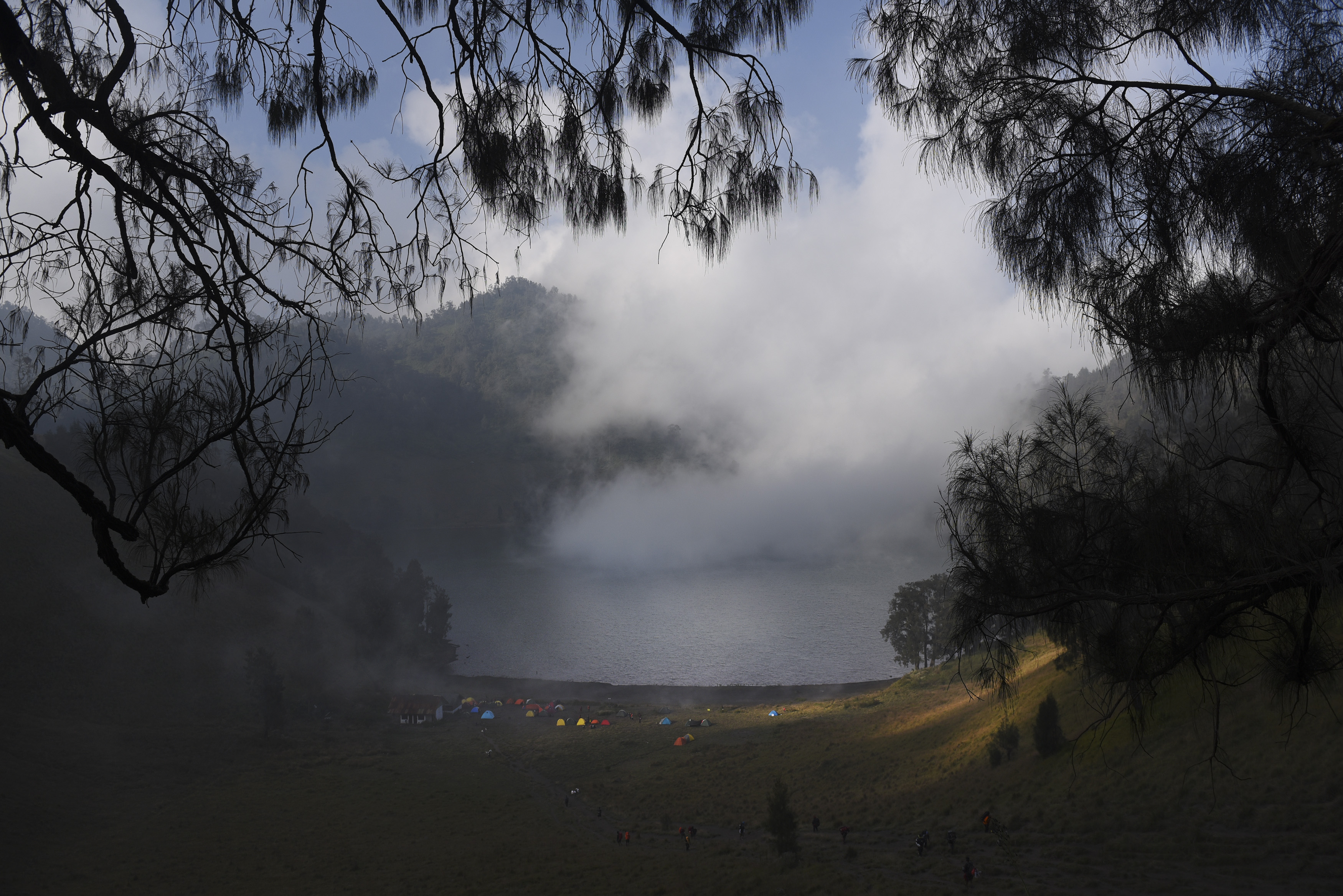 Sejumlah pendaki berisitirahat di dalam tenda di Kalimati sebelum melanjutkan pendakian ke puncak Gunung Semeru, Malang, Jawa Timur, Minggu (31/7). Gunung Semeru adalah gunung tertinggi di pulau Jawa dan menjadi salah satu destinasi favorit bagi para pendaki gunung baik dalam negeri maupun mancanegara. ANTARA FOTO/Zabur Karuru/aww/16.