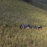 Sejumlah pendaki melintasi Danau Ranu Kumbolo saat perjalanan menuju puncak Gunung Semeru, Malang, Jawa Timur, Minggu (31/7). Gunung Semeru adalah gunung tertinggi di pulau Jawa dan menjadi salah satu destinasi favorit bagi para pendaki gunung baik dalam negeri maupun mancanegara. ANTARA FOTO/Zabur Karuru/aww/16.