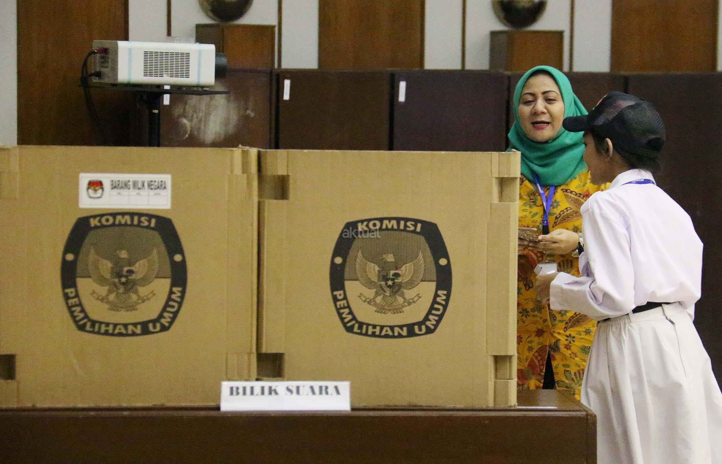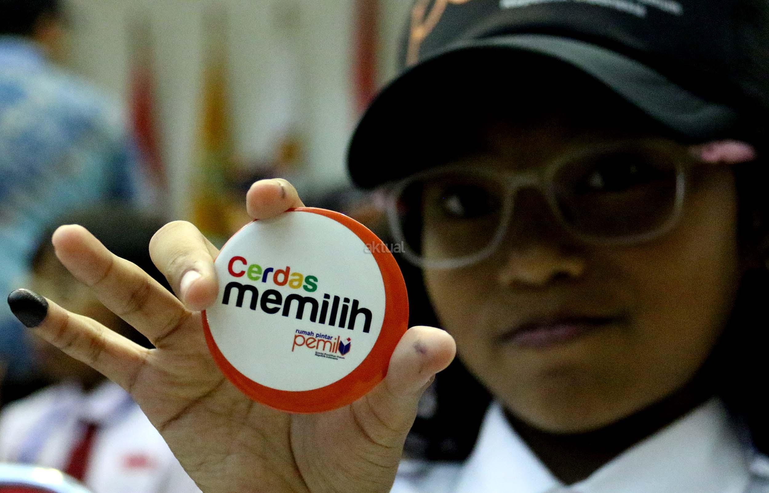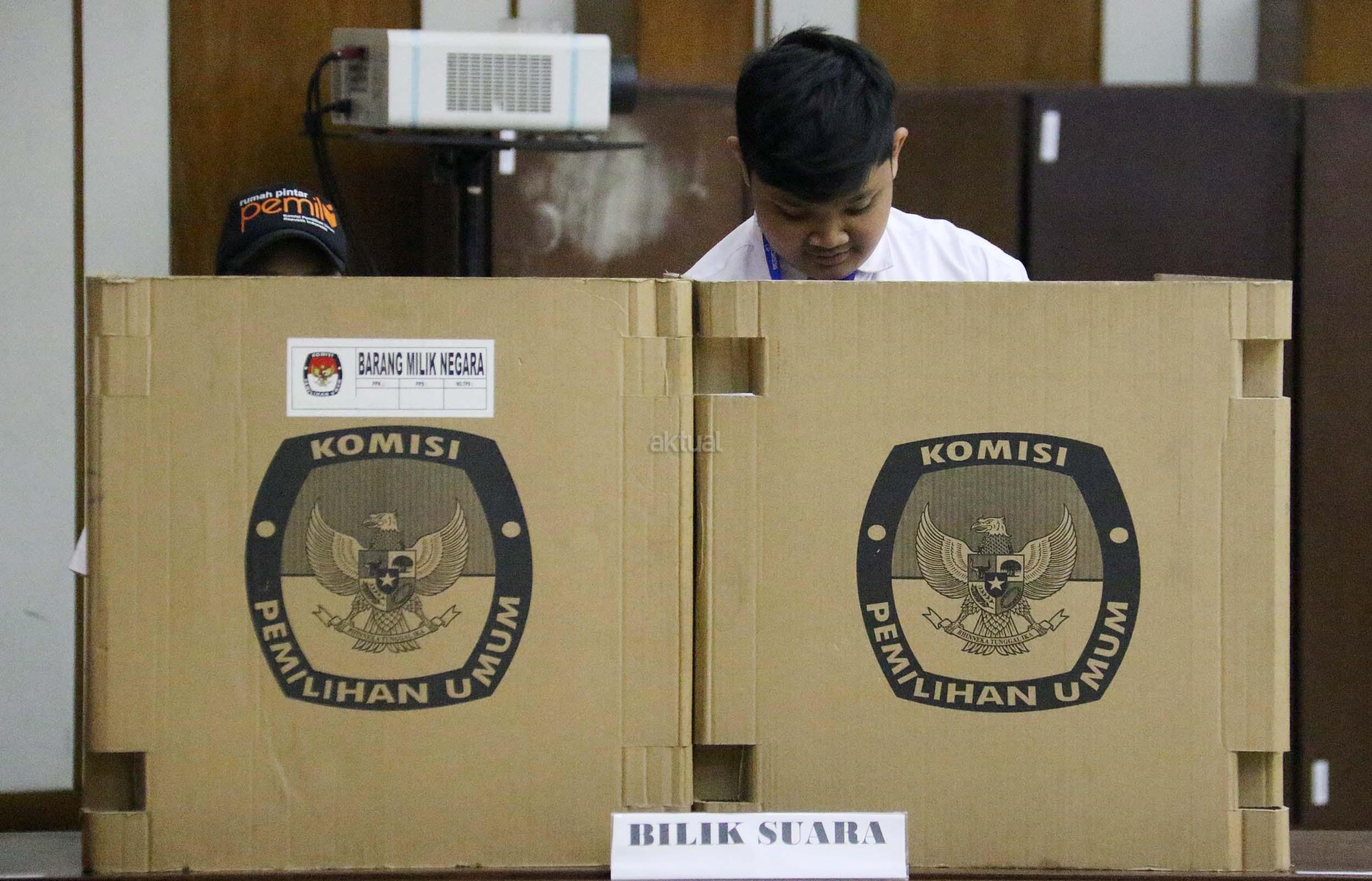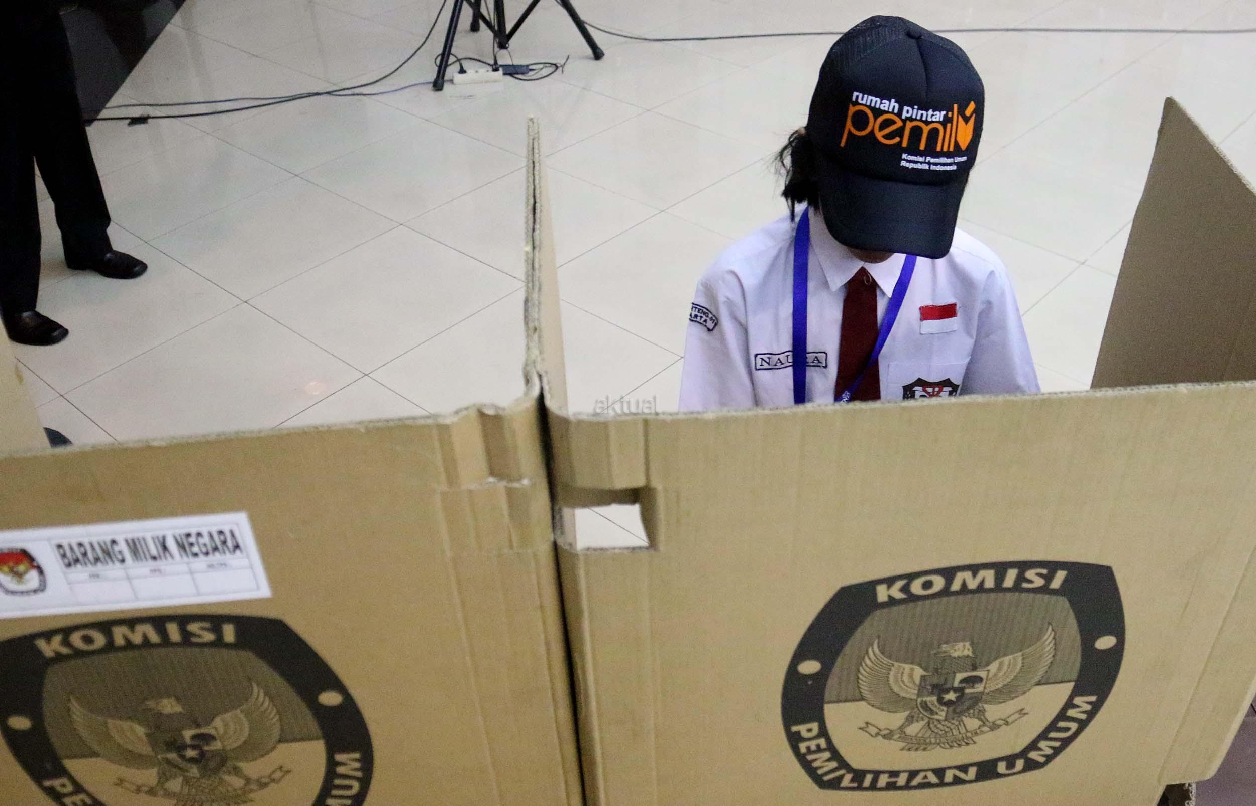 Sejumlah murid Sekolah Dasar (SD) 01 Menteng melakukan simulasi pemilihan umum di kantor Komisi Pemilihan Umum (KPU) RI di Jakarta, Senin (21/11/2016). Sebanyak 61 murid SD 01 Menteng mengunjungi kantor Komisi Pemilihan Umum (KPU) RI dalam pengenalan sistem Pemilu dini dan simulasi pemilihan Umum. AKTUAL/Munzir