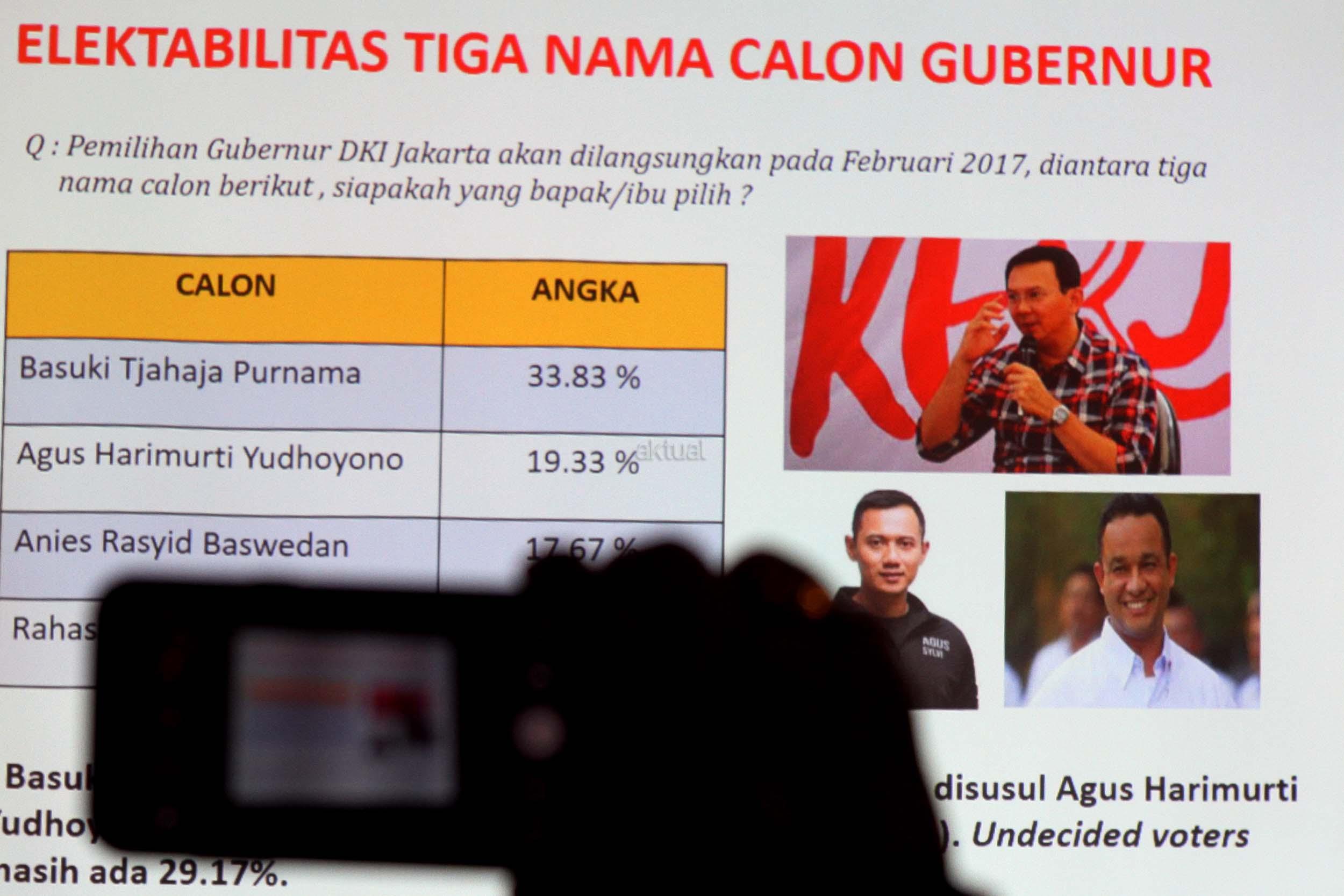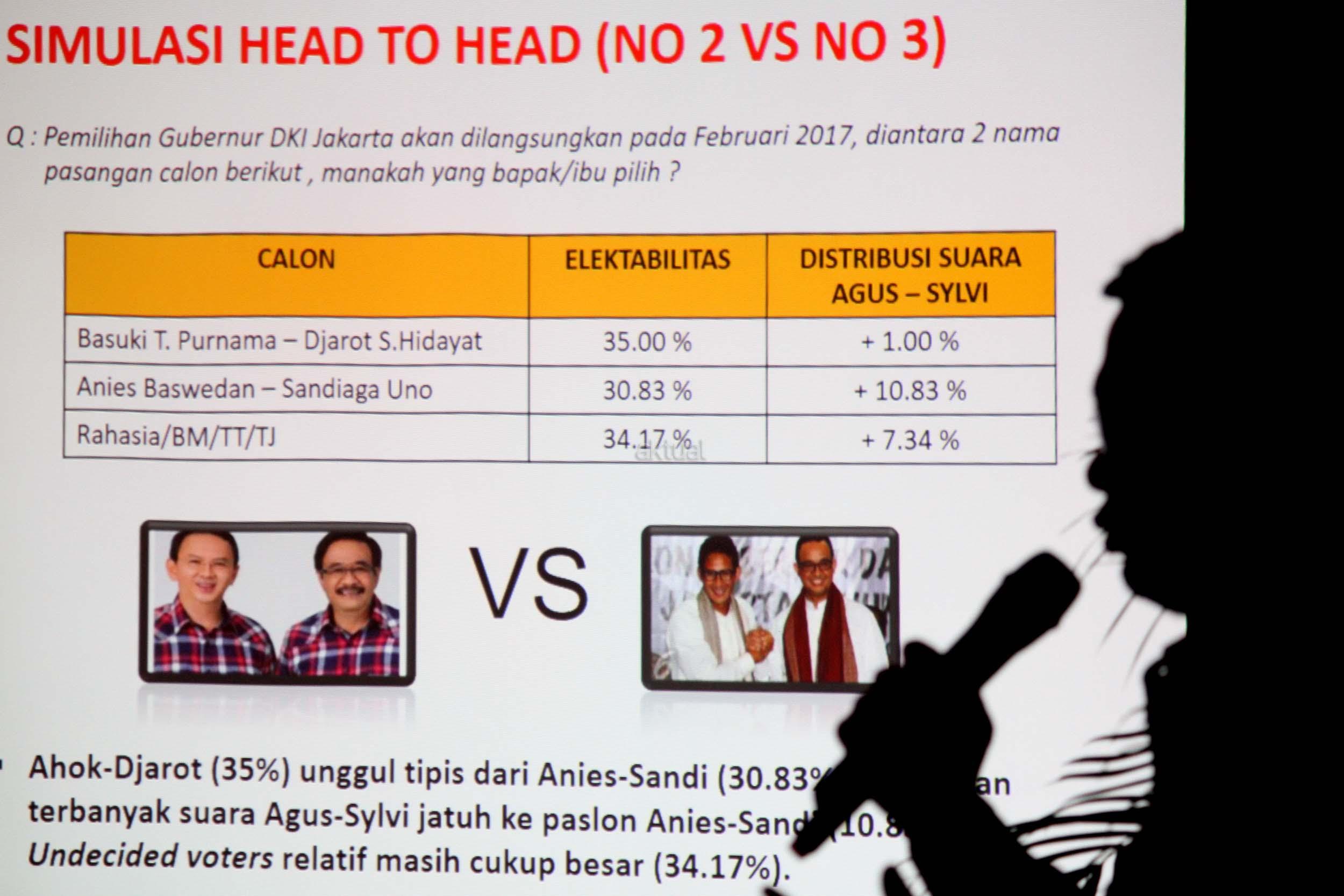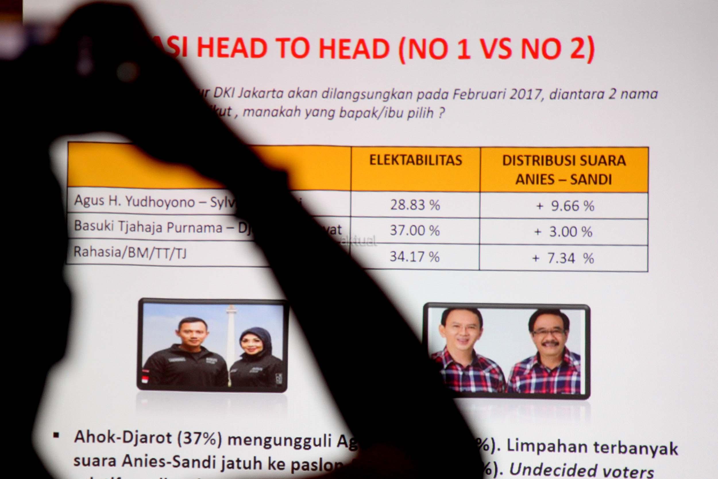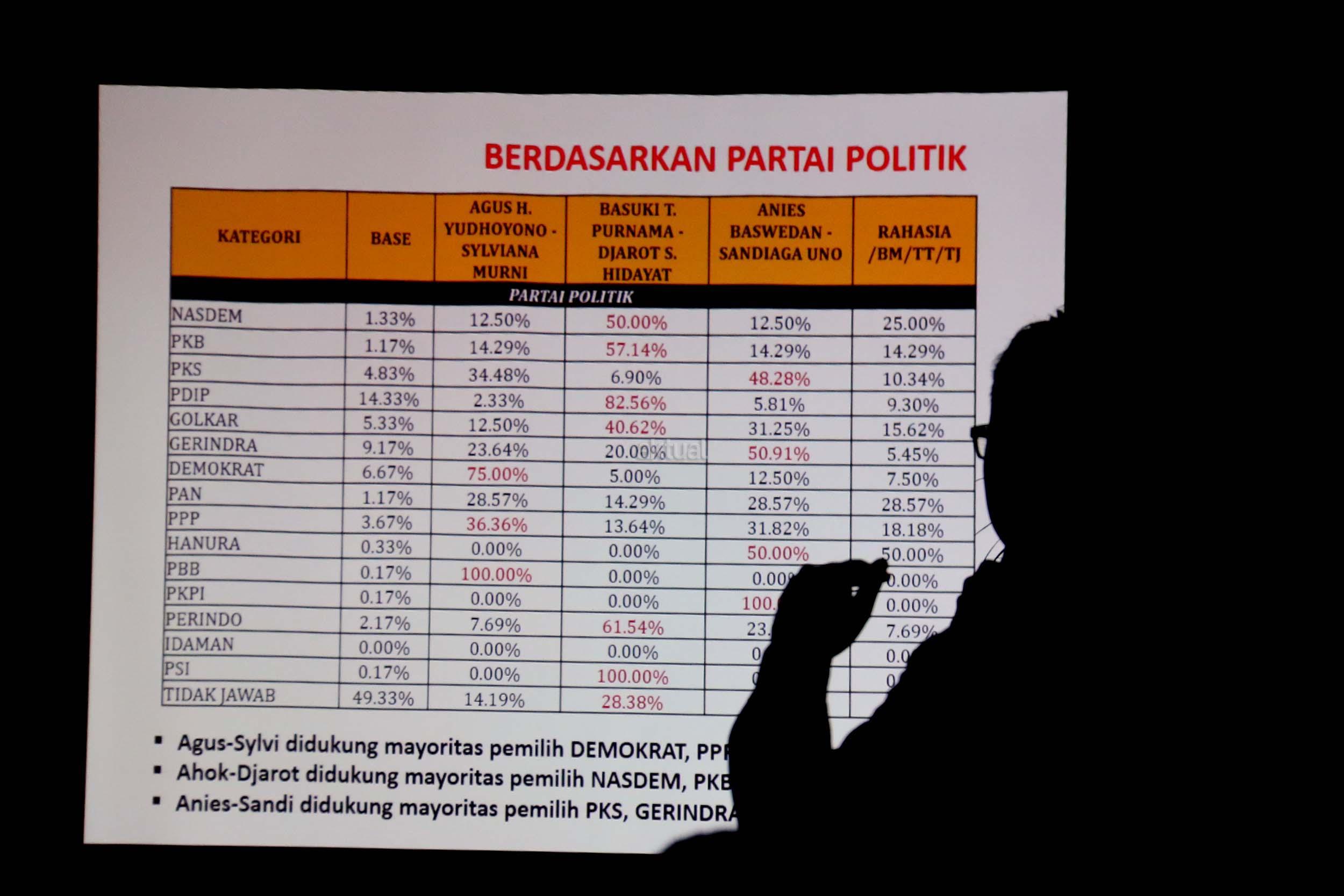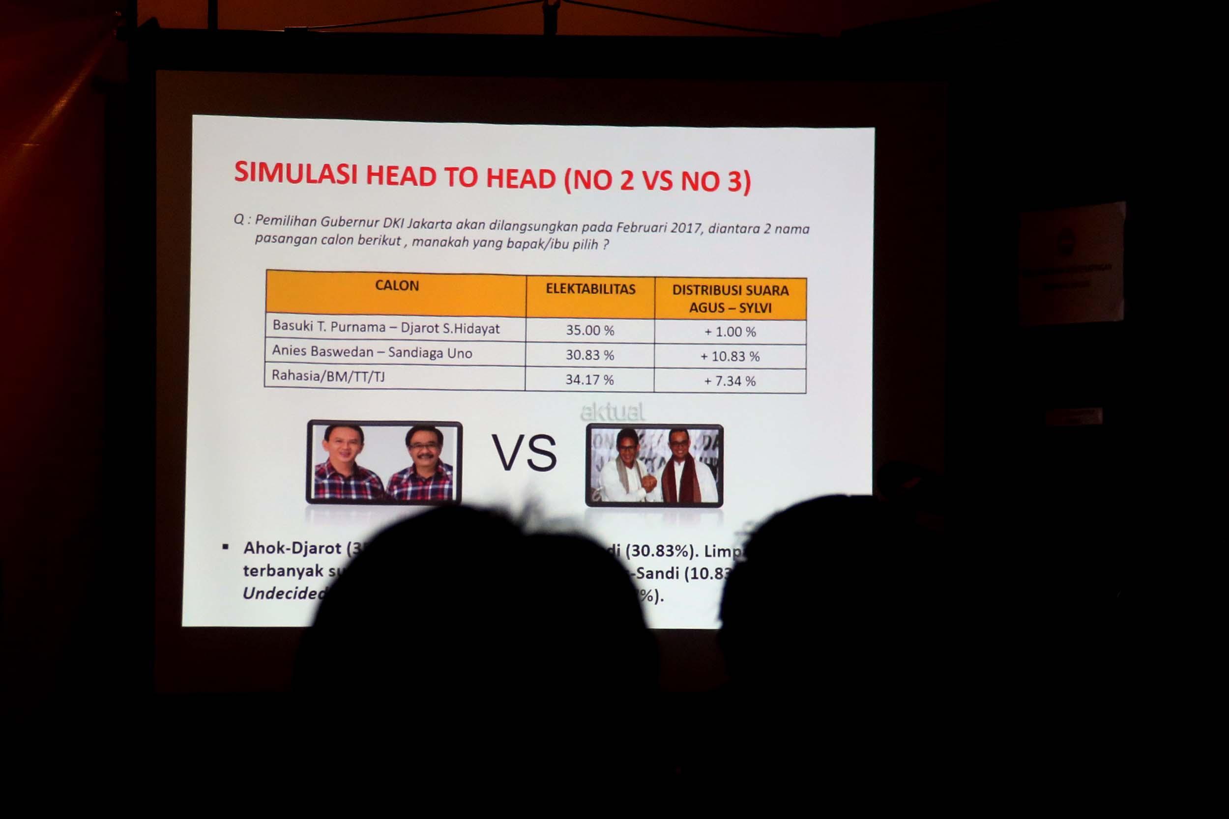Dalam paparan hasil survei SDI, pemilih setia Ahok/Djarot menuding kubu Agus/Sylvi yang selama ini menyerang kandidatnya selama masa kampanye. Karenanya jika Ahok/Djarot tak lolos ke putaran kedua, mereka akan mengalihkan dukungan kepada pasangan Anies/Sandy. AKTUAL/Munzir