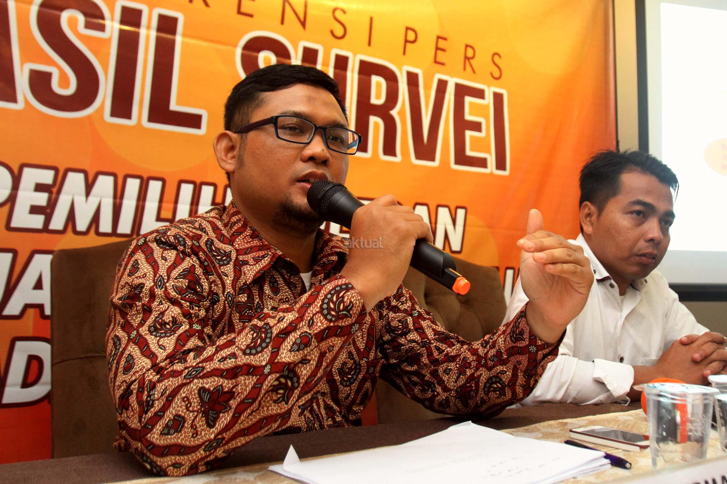 Peneliti SDI, Imam Suherman (kiri) saat memaparkan hasil survei terkini , di kantor Sinergi Data Indonesia (SDI), Jakarta, Sabtu (12/2/2017). Dalam paparan hasil survei SDI, pemilih setia Ahok/Djarot menuding kubu Agus/Sylvi yang selama ini menyerang kandidatnya selama masa kampanye. Karenanya jika Ahok/Djarot tak lolos ke putaran kedua, mereka akan mengalihkan dukungan kepada pasangan Anies/Sandy. AKTUAL/Munzir