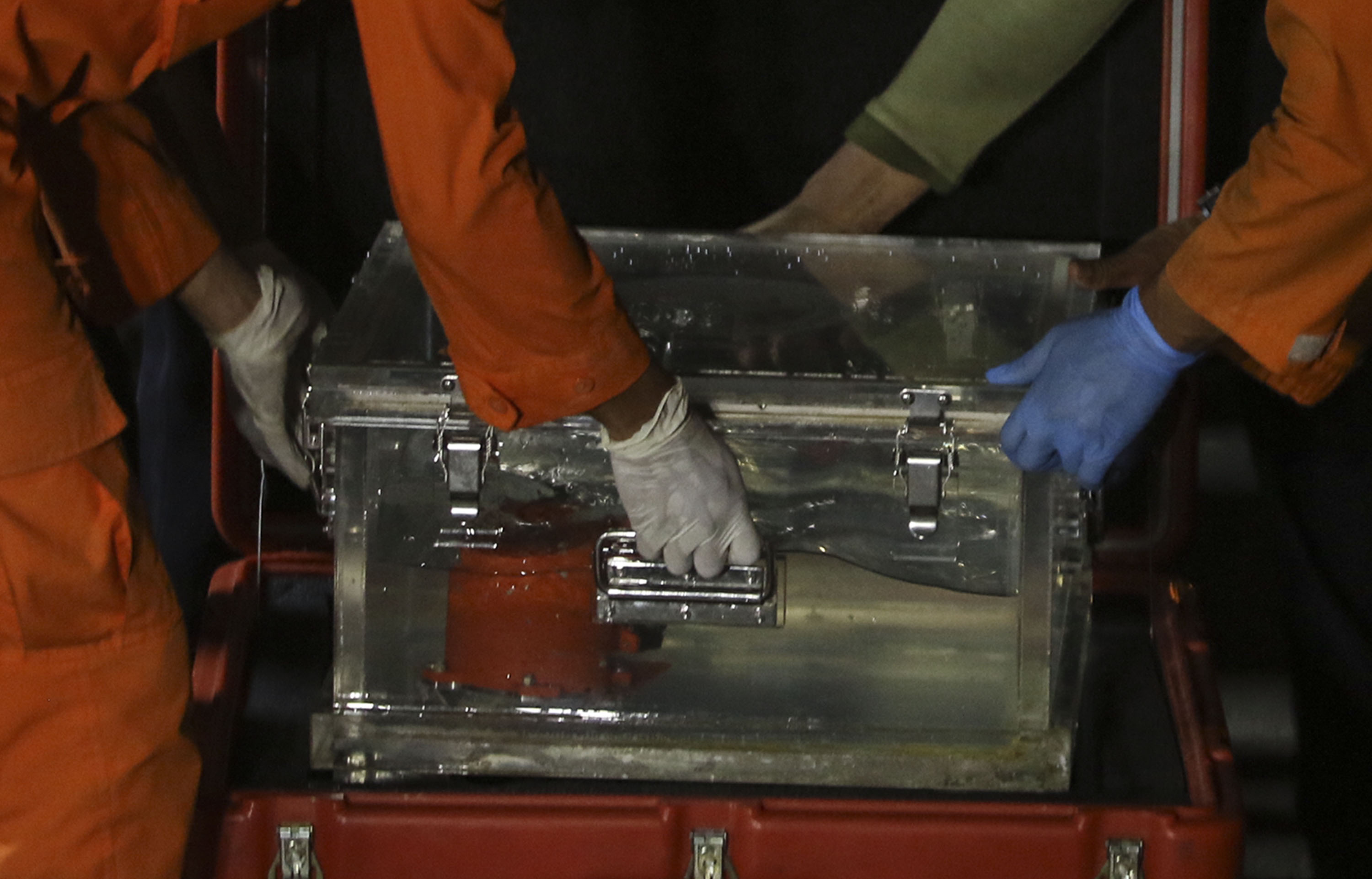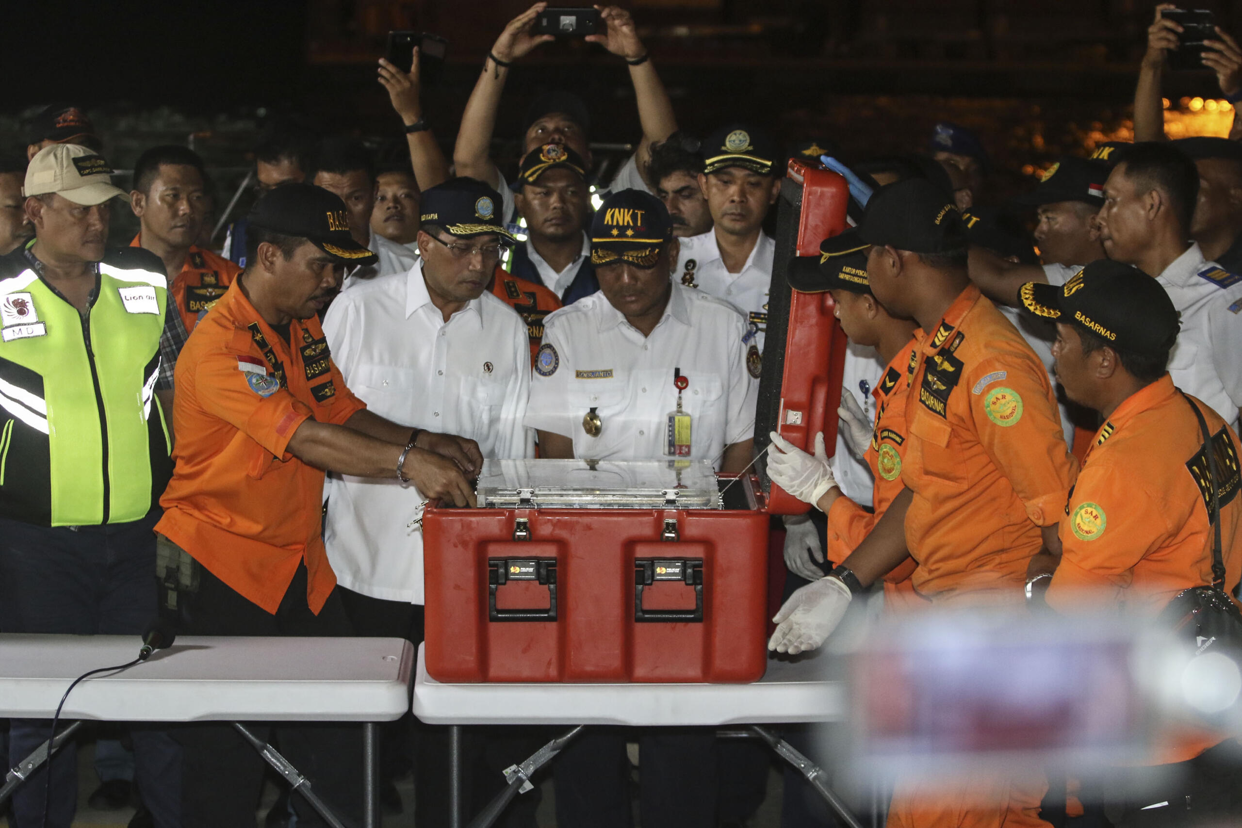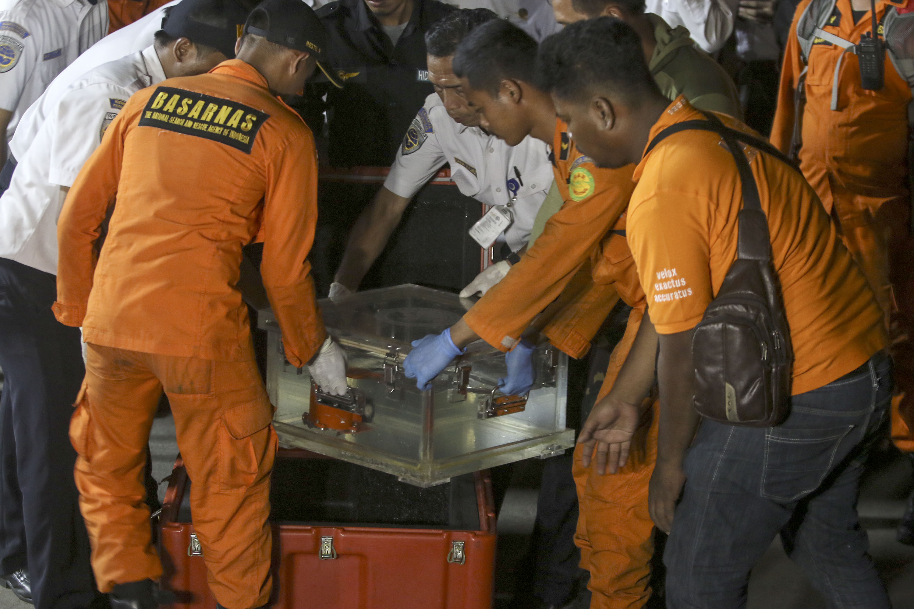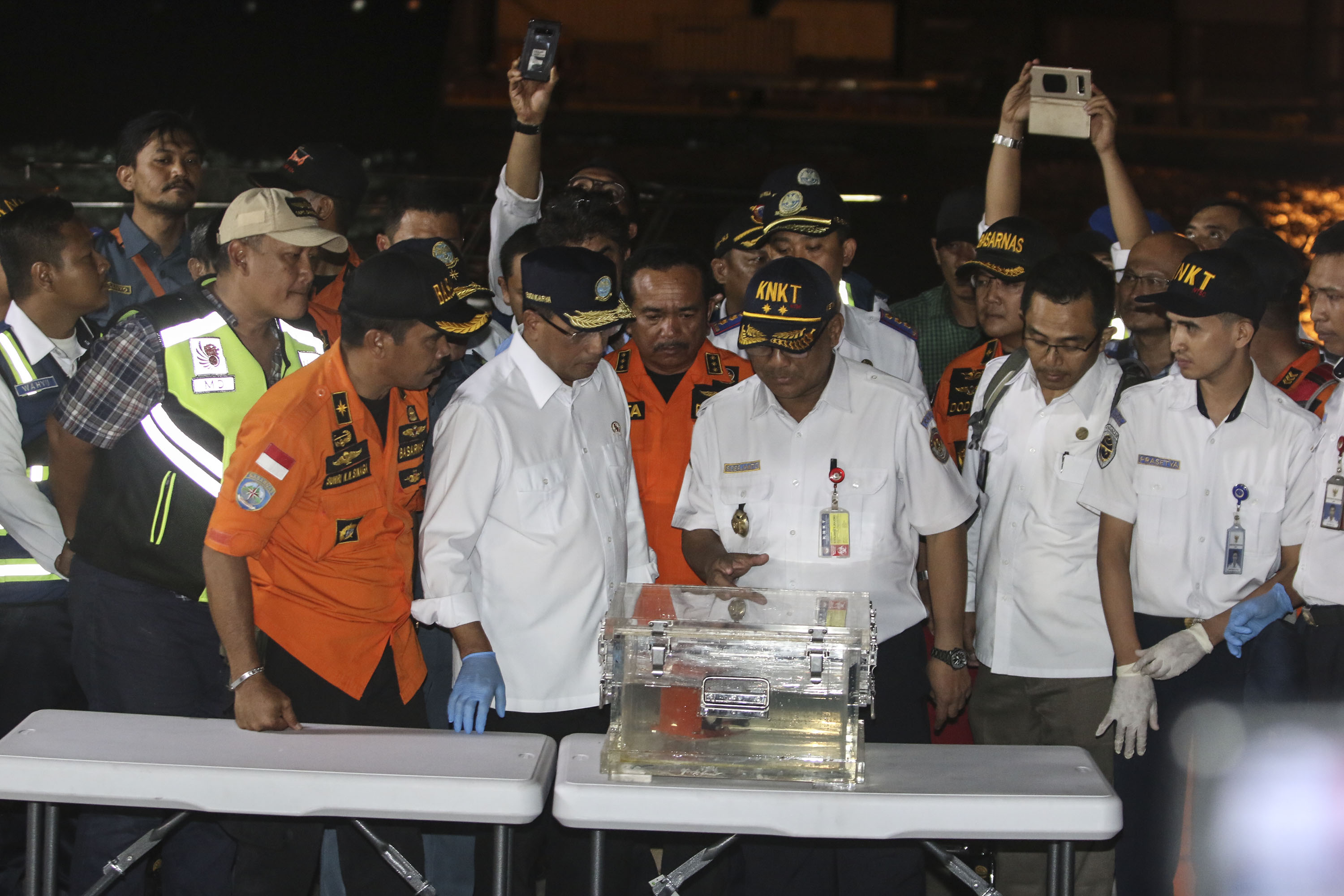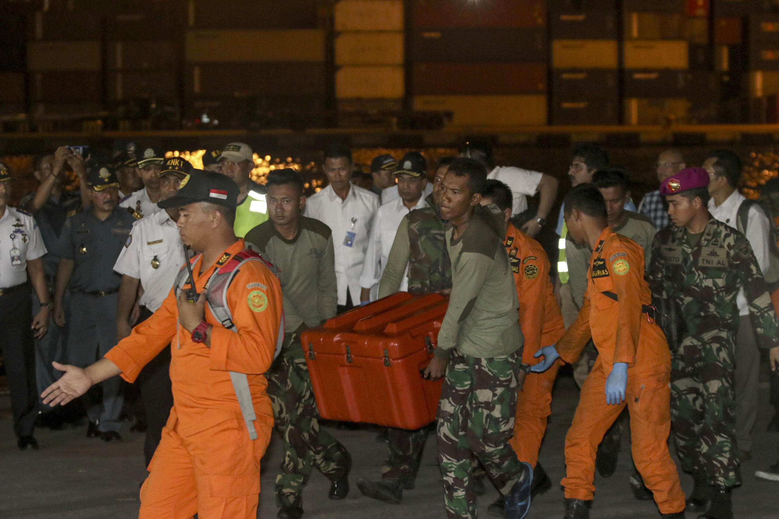 Tim SAR gabungan membawa kotak berisi kotak hitam (black box) pesawat Lion Air bernomor registrasi PK-LQP dengan nomor penerbangan JT 610 di Pelabuhan Tanjung Priok, Jakarta, Kamis (1/11/2018). Kotak hitam sebagai Flight Data Recorder (FDR) itu akan dibawa ke laboratorium KNKT untuk dilakukan investisigasi lebih lanjut. AKTUAL/Tino Oktaviano
