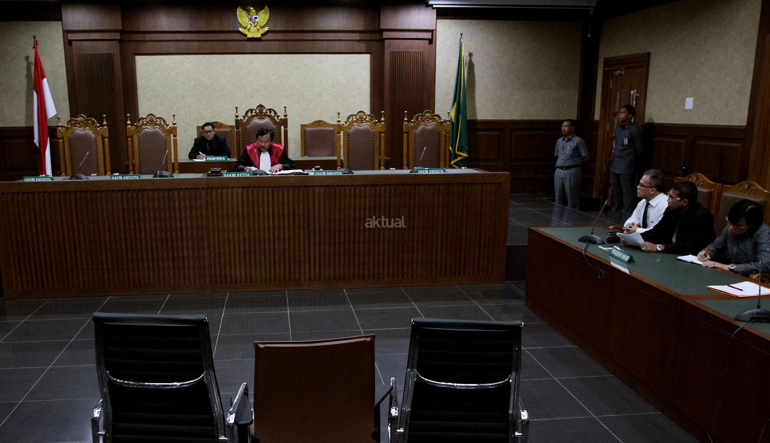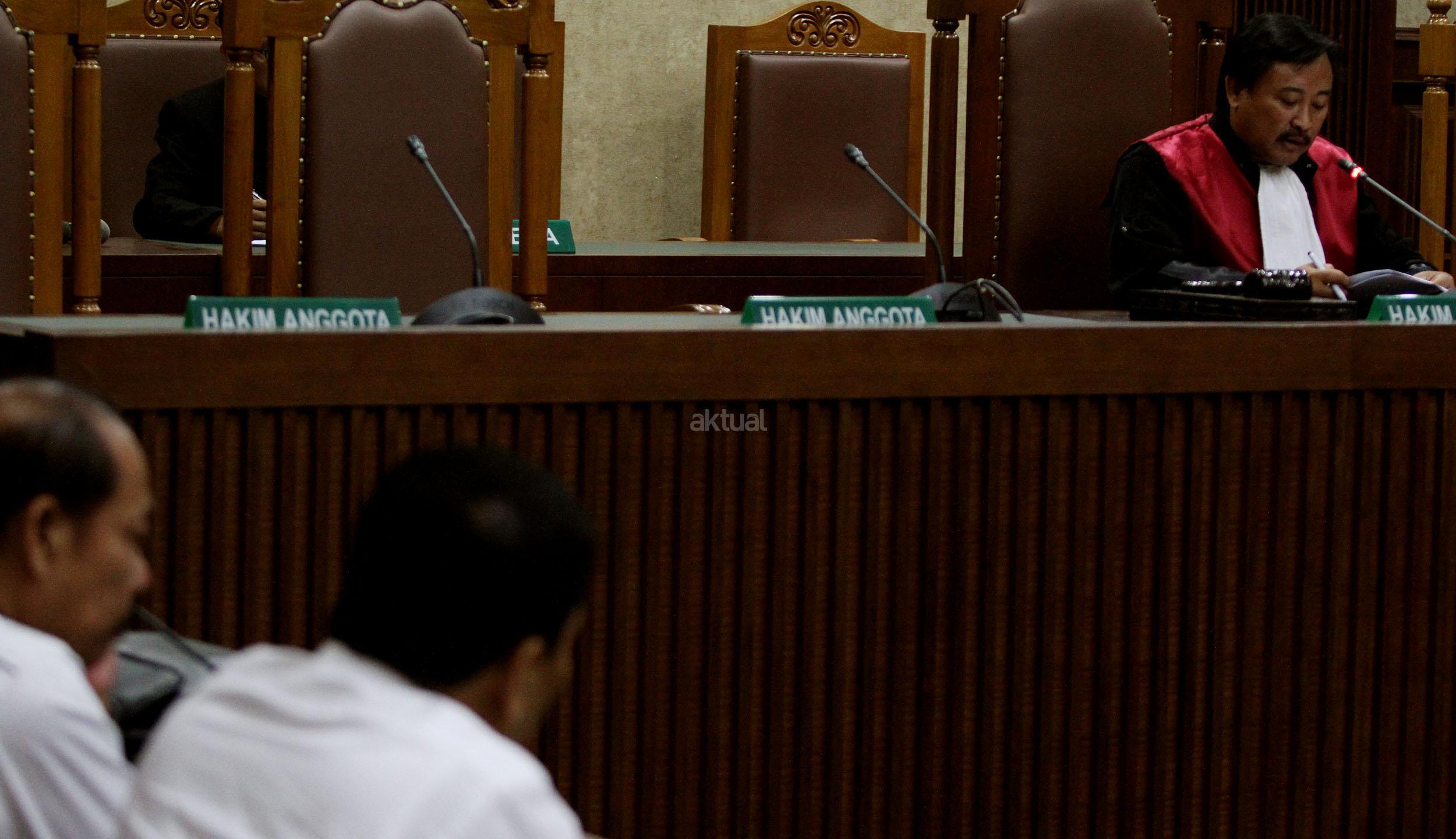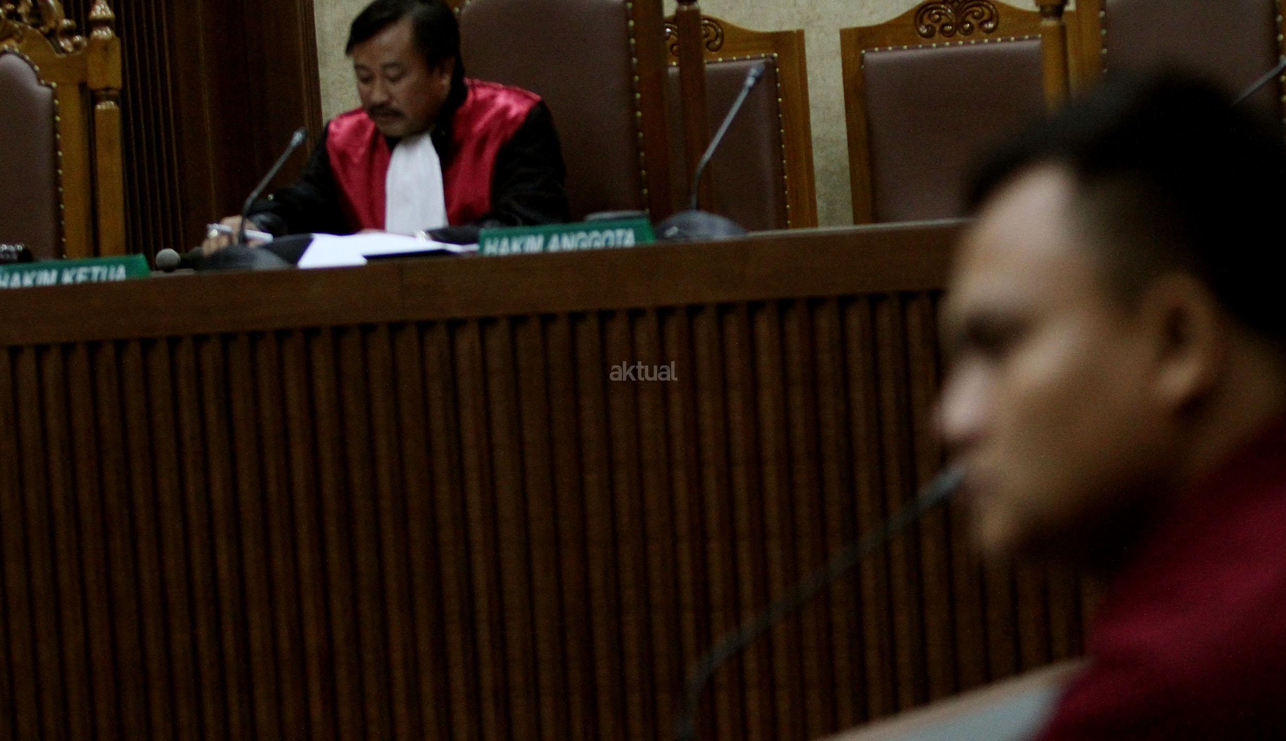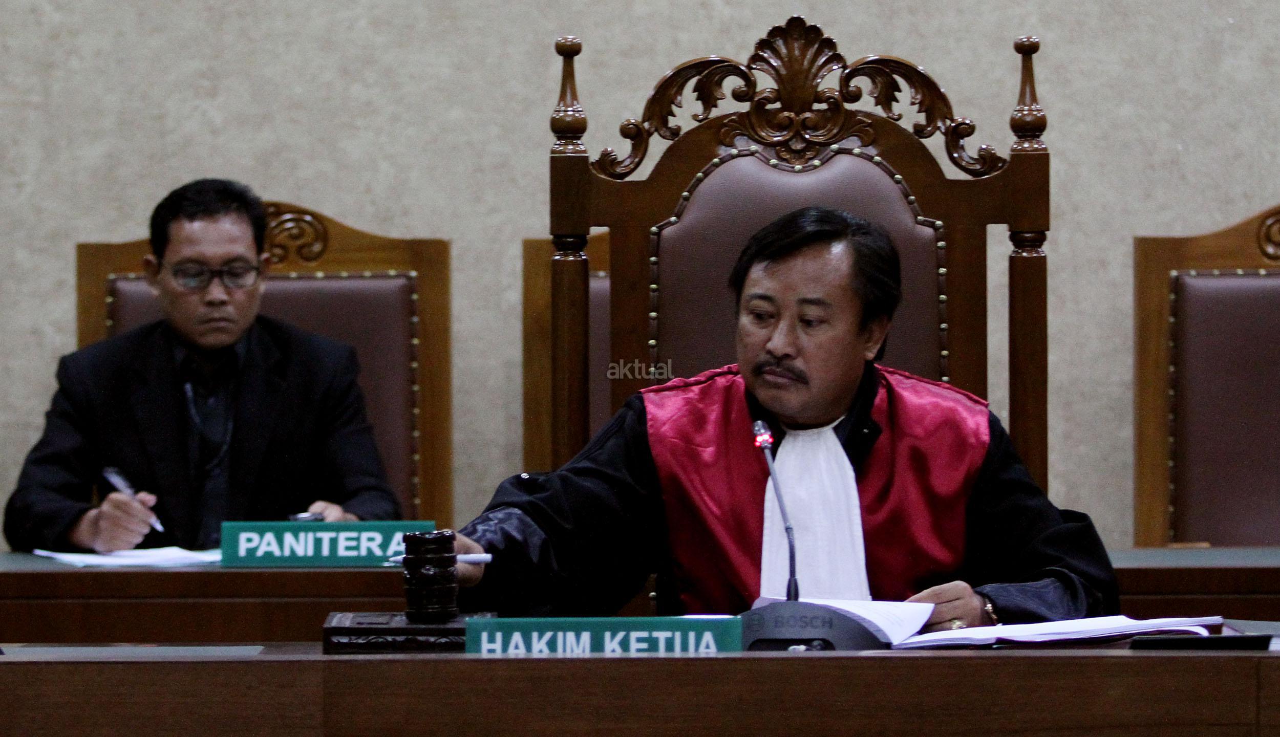 Hakim tunggal I Wayan Merta (kanan) membacakan putusan sidang praperadilan Jessica Kumala Wongso yang menjadi tersangka dugaan pembunuhan terhadap Wayan Mirna Salihin di Pengadilan Negeri Jakarta Pusat, Jakarta, Selasa (1/3/2016). Pengadilan Negeri Jakarta Pusat menolak seluruh permohonan yang diajukan pemohon Jessica Kumala Wongso dalam gugatan praperadilan.