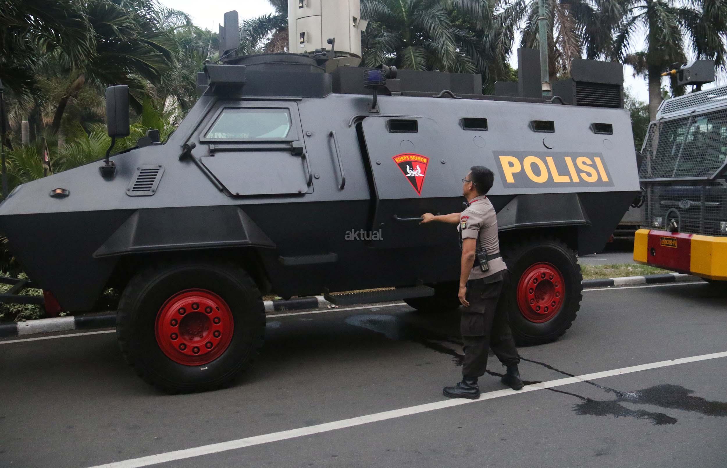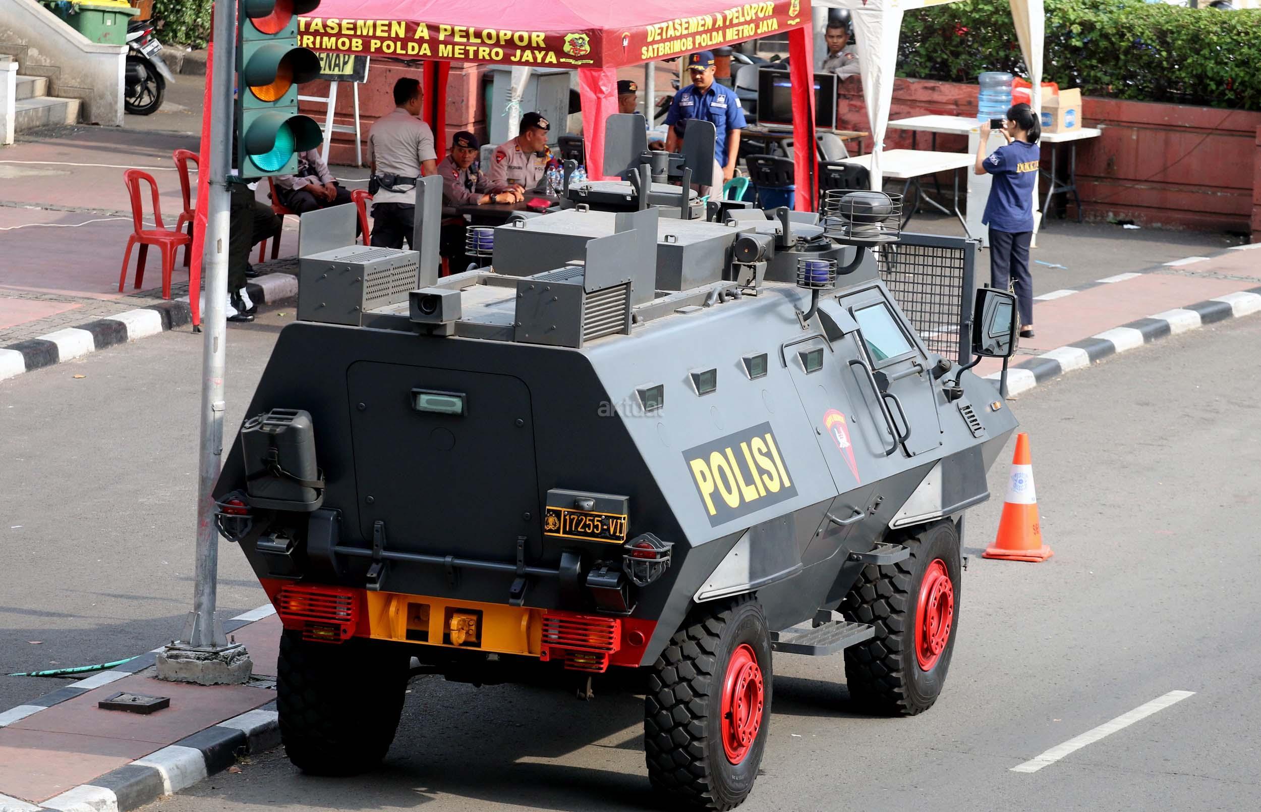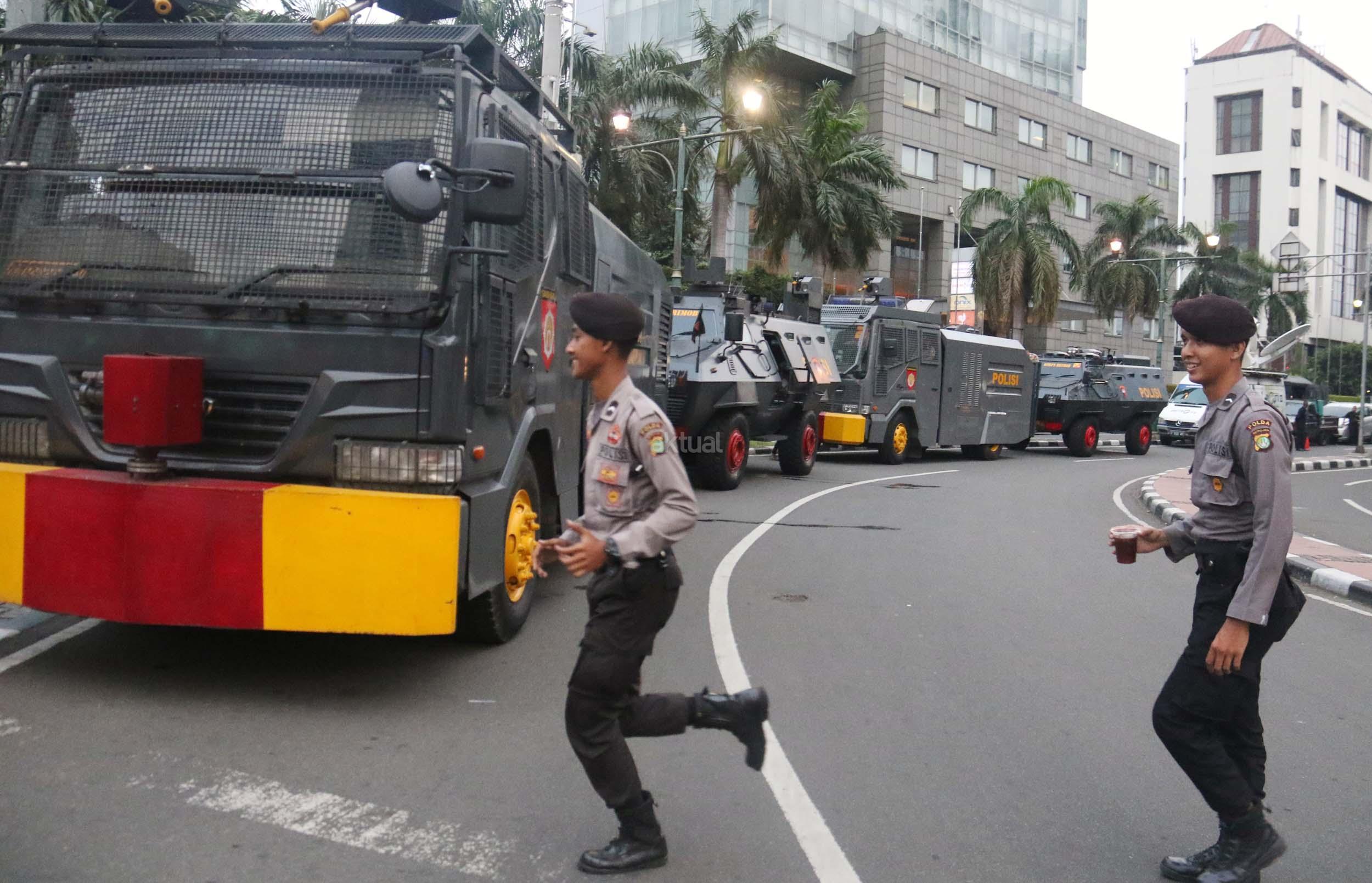 Kendraan taktis Baracuda dan Water Canon milik Kepolisian bersiaga di kawasan Bunderan HI, Jakarta, Sabtu (31/12/2016). Di kawasan Bundaran HI sendiri ada beberapa Baracuda dan Water Canon yang disiagakan untuk menjaga perayaan tahun baru yang dimeriahkan oleh masyarakat Jakarta.