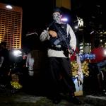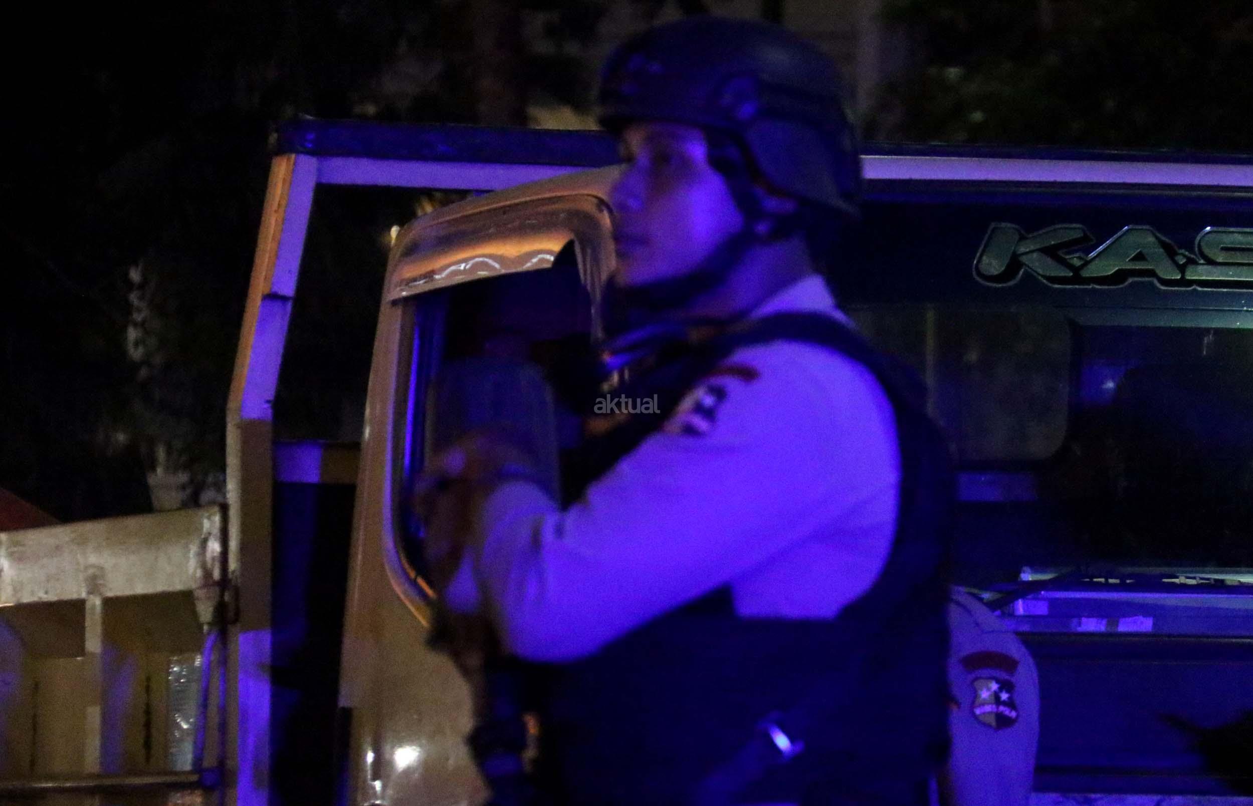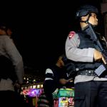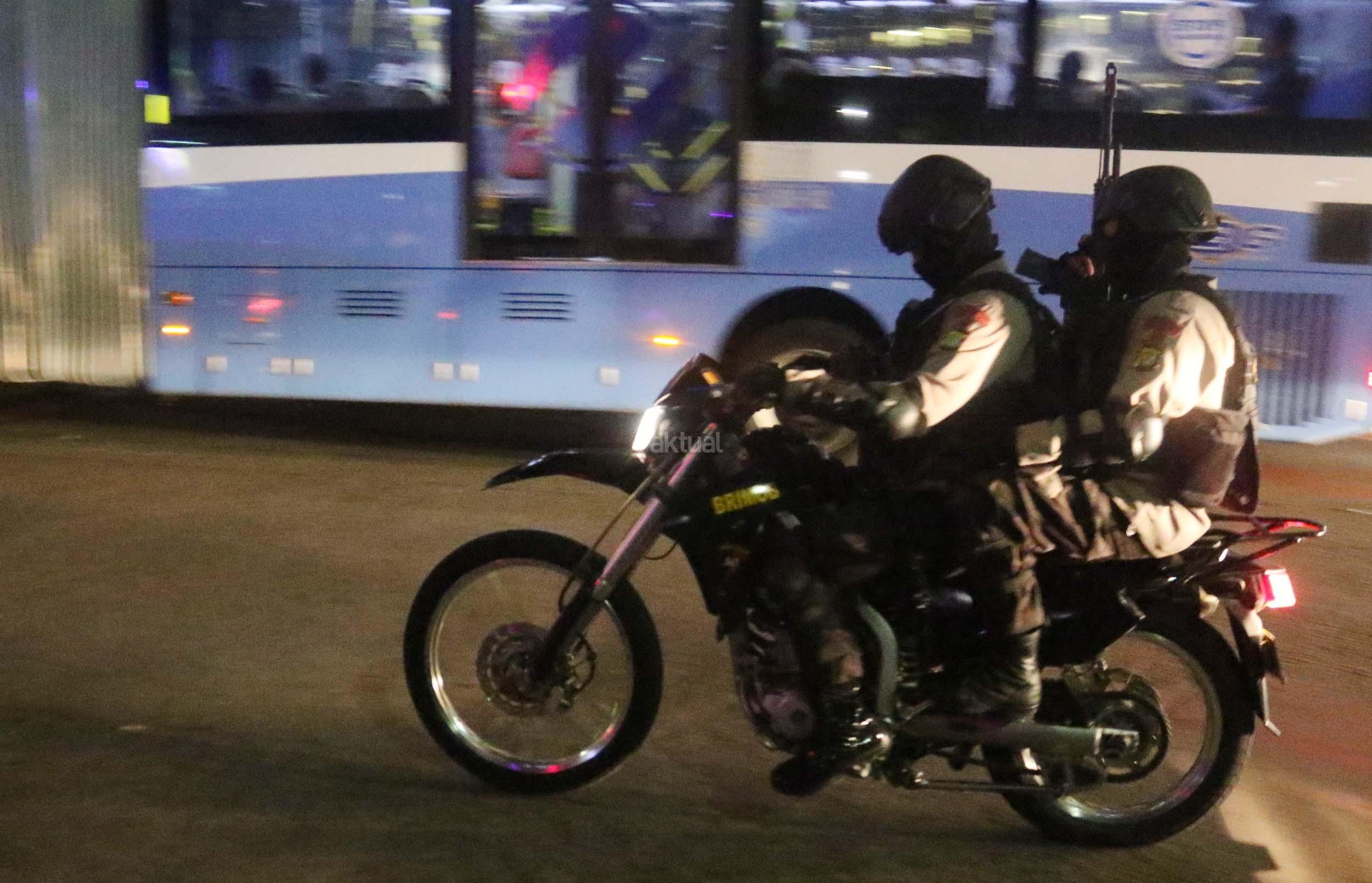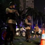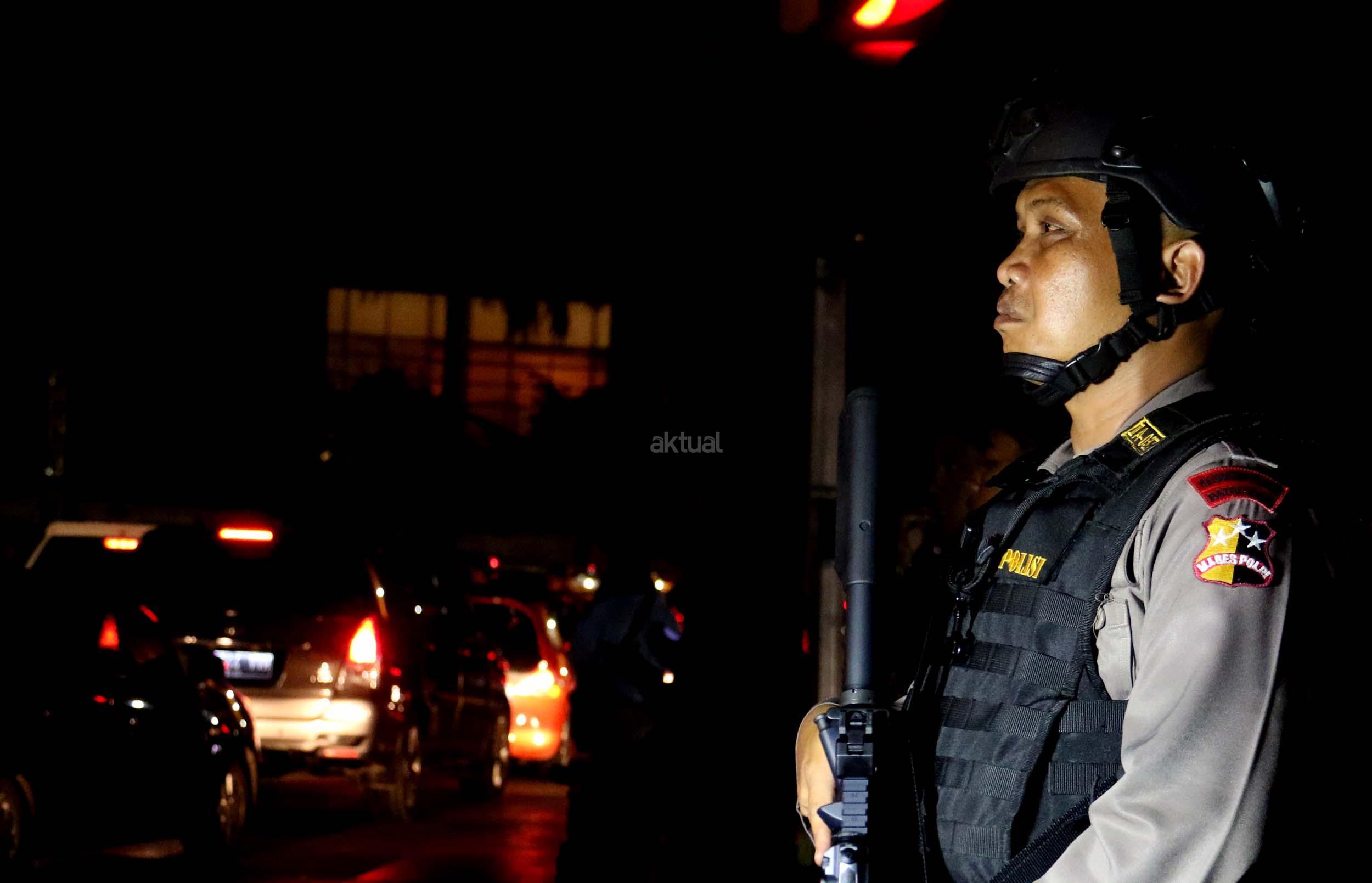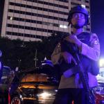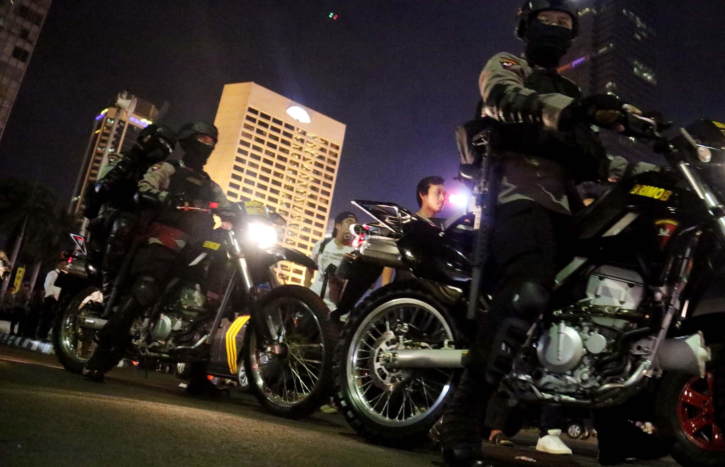 Petugas kepolisian bersenjata lengkap berjaga di kawasan Bundaran HI, Jakarta, Sabtu (31/12/2016). Meski Car Free Night dalam rangka perayaan pergantian tahun dibatalkan oleh Pemerintah Provinsi DKI Jakarta, namun sejumlah anggota Polisi tetap berjaga di sepanjang Sudirman – Thamrin demi menjaga keamanan malam pergantian tahun di Ibukota.