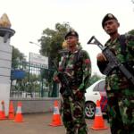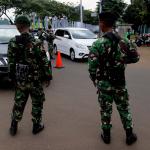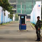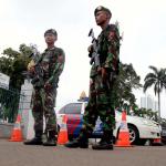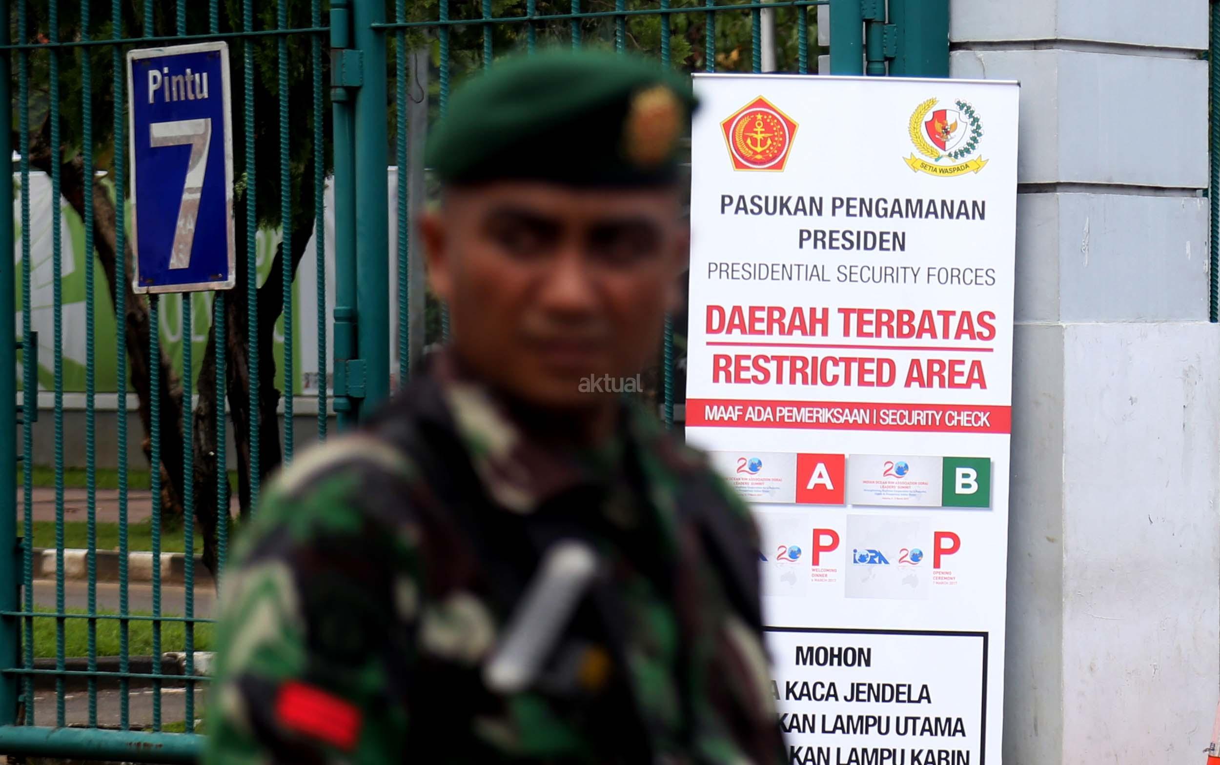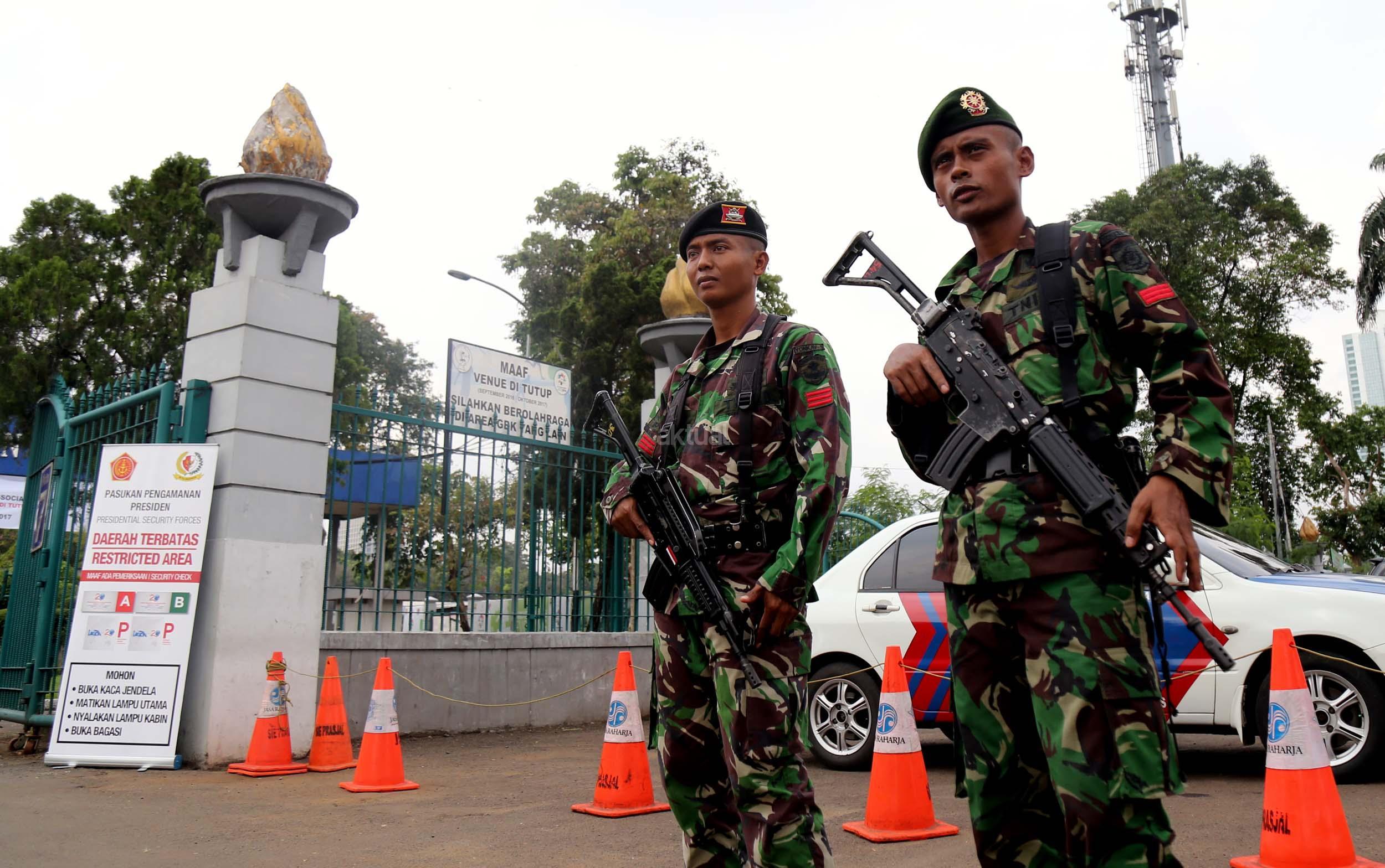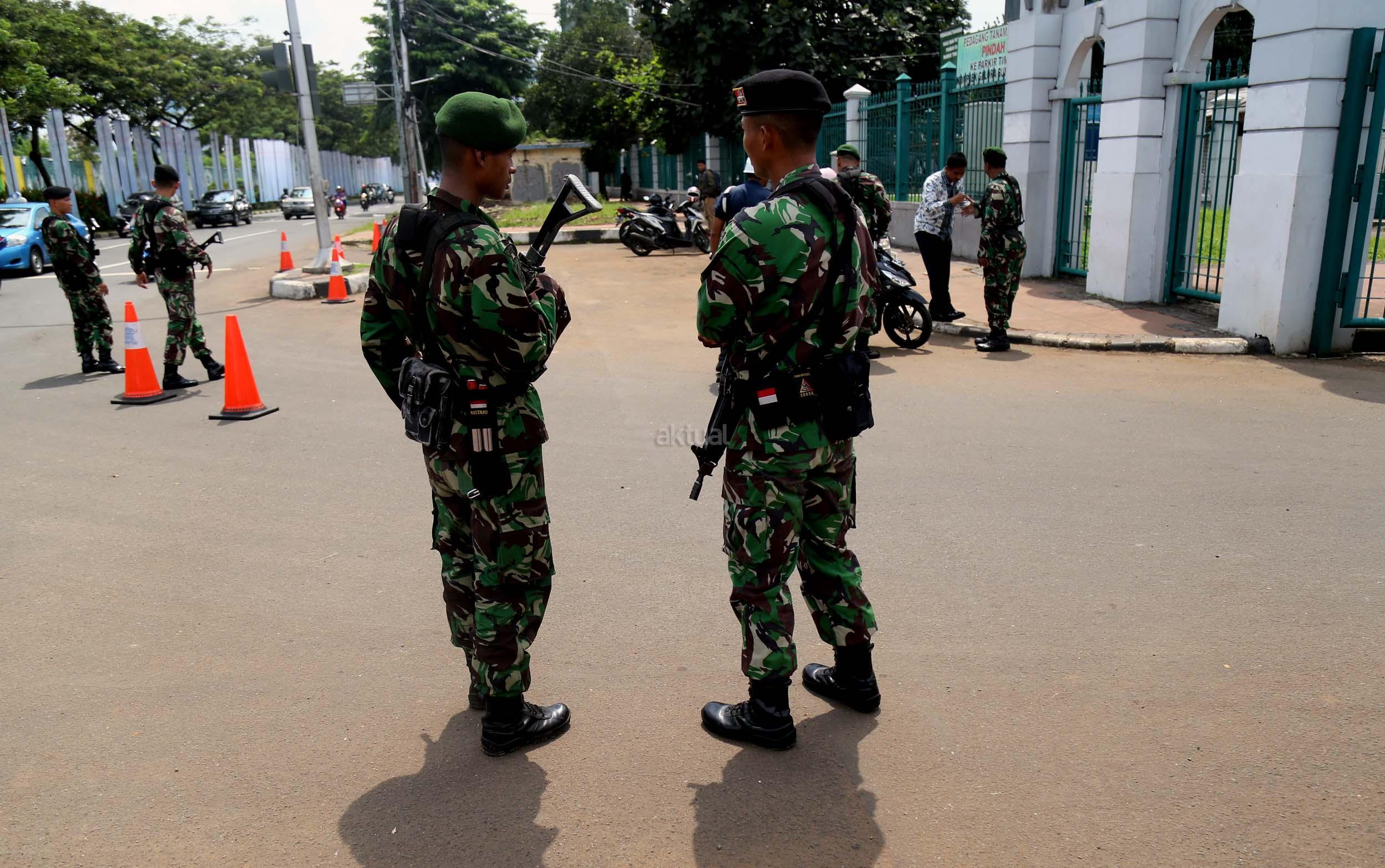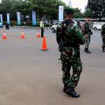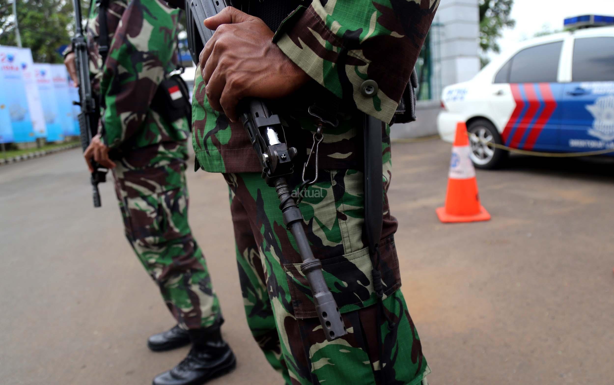 Personel TNI AD melakukan pengamanan di pintu gerbang menuju lokasi pelaksanaan KTT Indian Ocean Rim Association (IORA) ke-20 tahun 2017 di Kompleks Stadion Utama Gelora Bung Karno, Jakarta, Senin (6/3/2017). Sebanyak 12.000 personel gabungan TNI dan Polri disiagakan untuk pengamanan KTT IORA 2017 yang diikuti 21 negara, berlangsung 5-7 Maret 2017. AKTUAL/Munzir