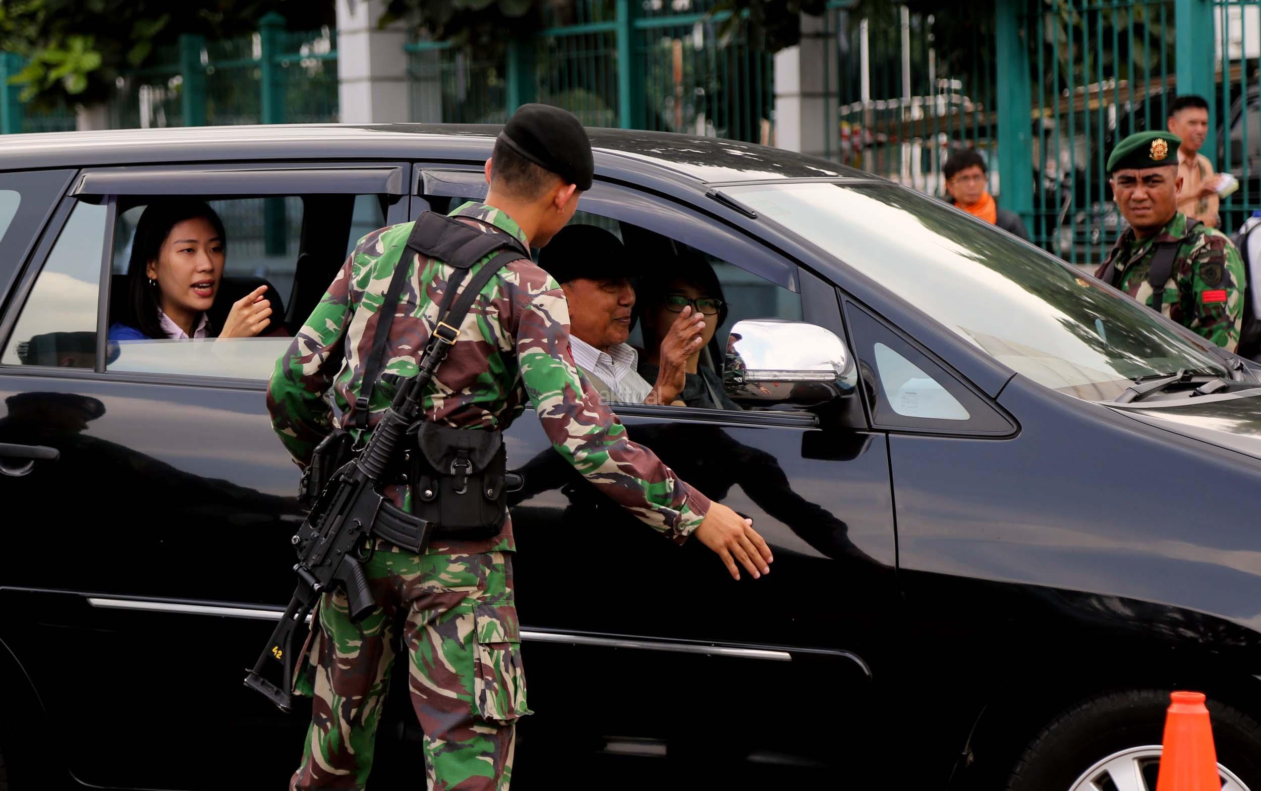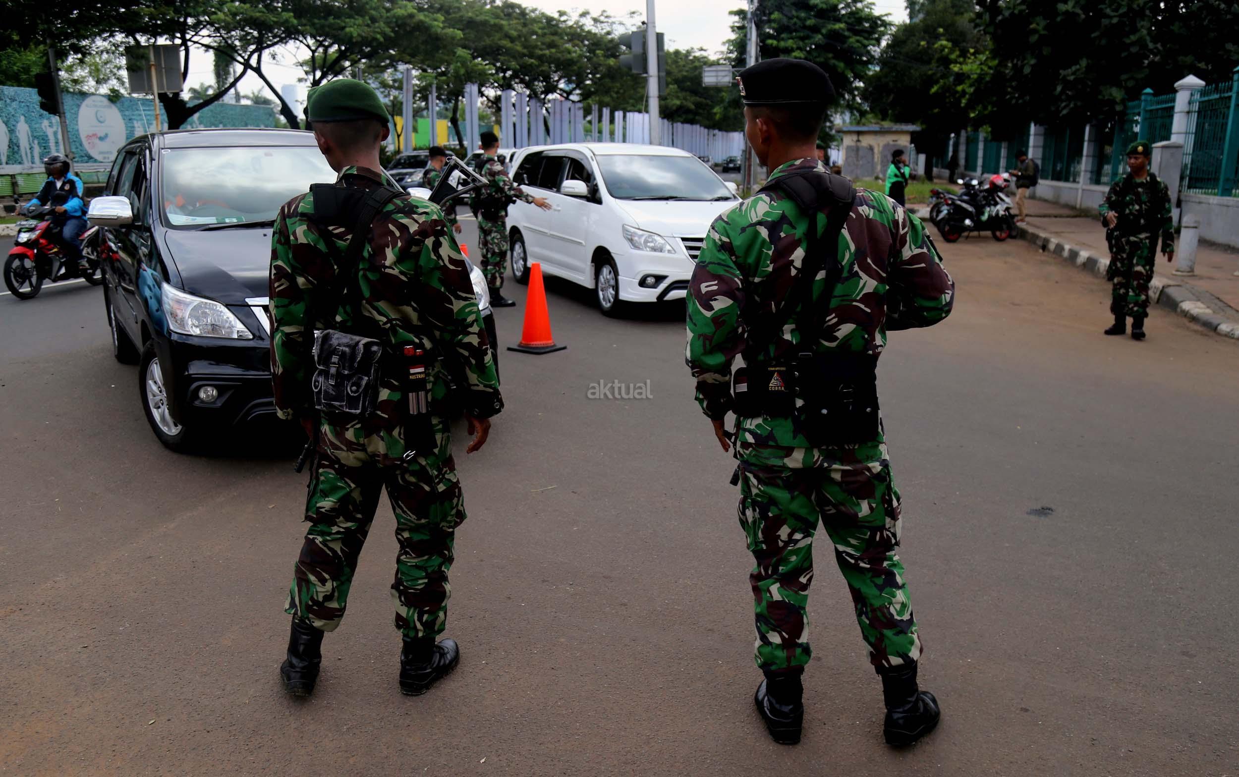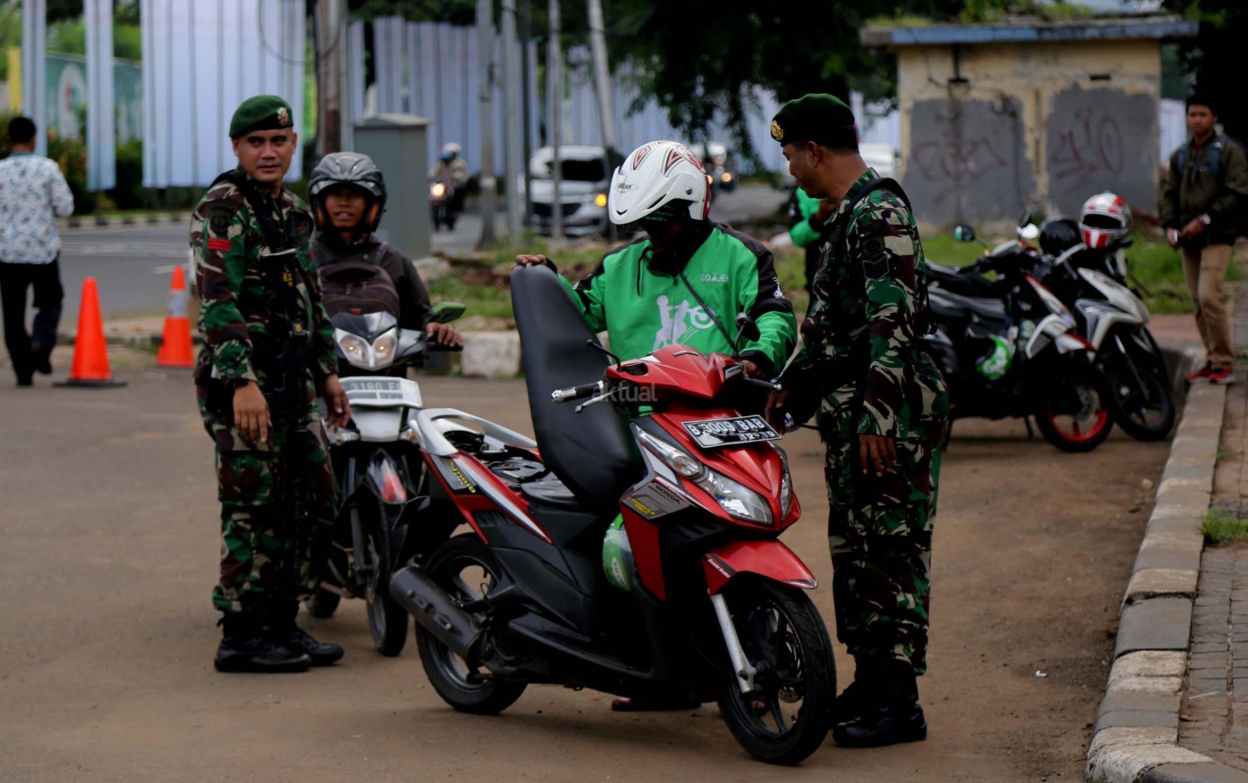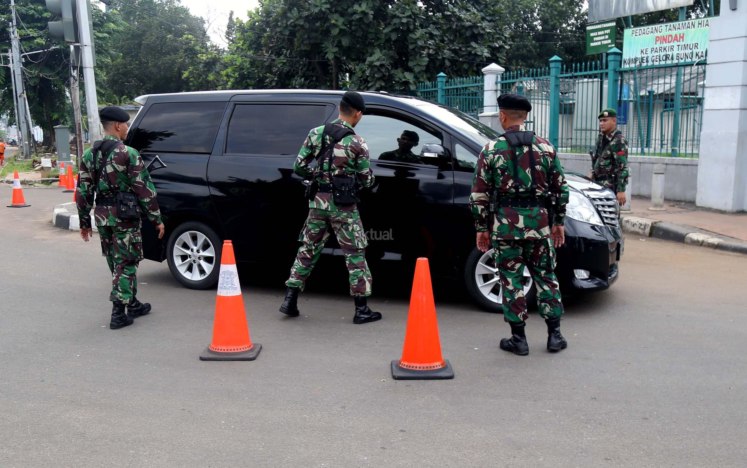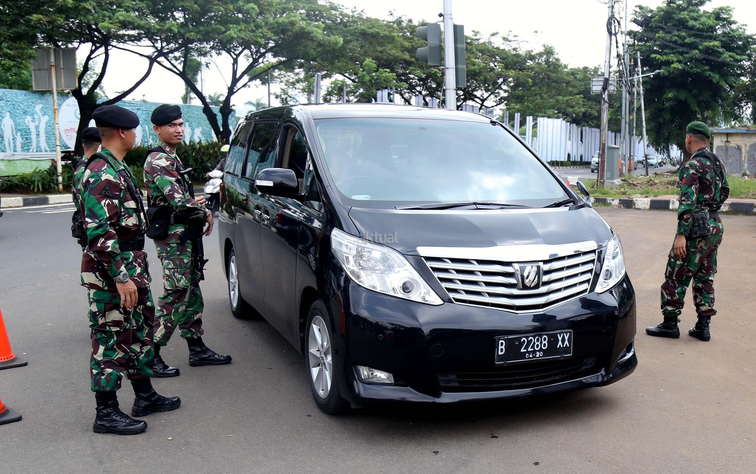 Personel TNI AD melakukan pemeriksaan pengamanan kendaraan yang akan memasuki lokasi pelaksanaan KTT Indian Ocean Rim Association (IORA) ke-20 tahun 2017 di Kompleks Stadion Utama Gelora Bung Karno, Jakarta, Senin (6/3/2017). Sebanyak 12.000 personel gabungan TNI dan Polri disiagakan untuk pengamanan KTT IORA 2017 yang diikuti 21 negara, berlangsung 5-7 Maret 2017. AKTUAL/Munzir