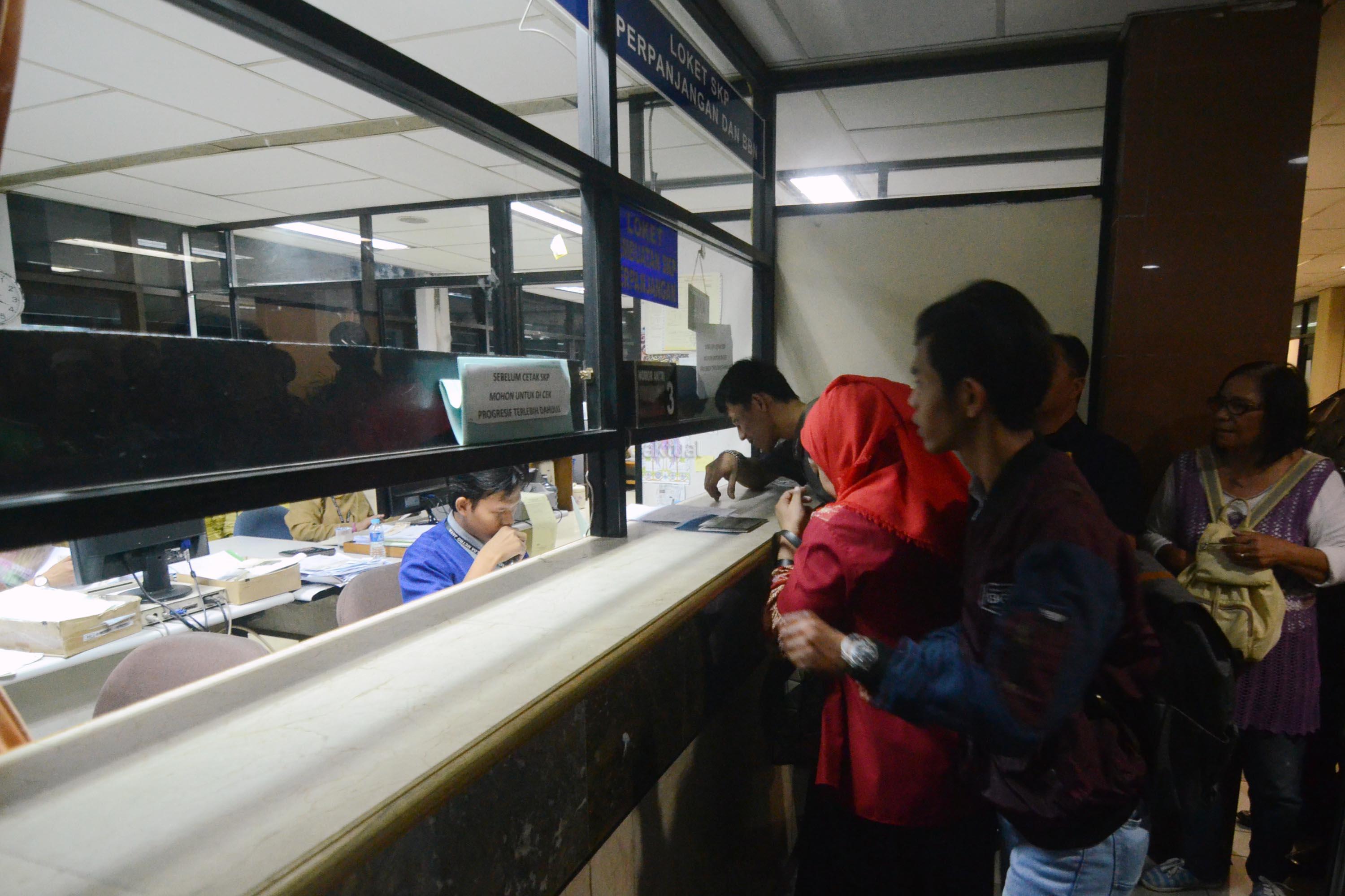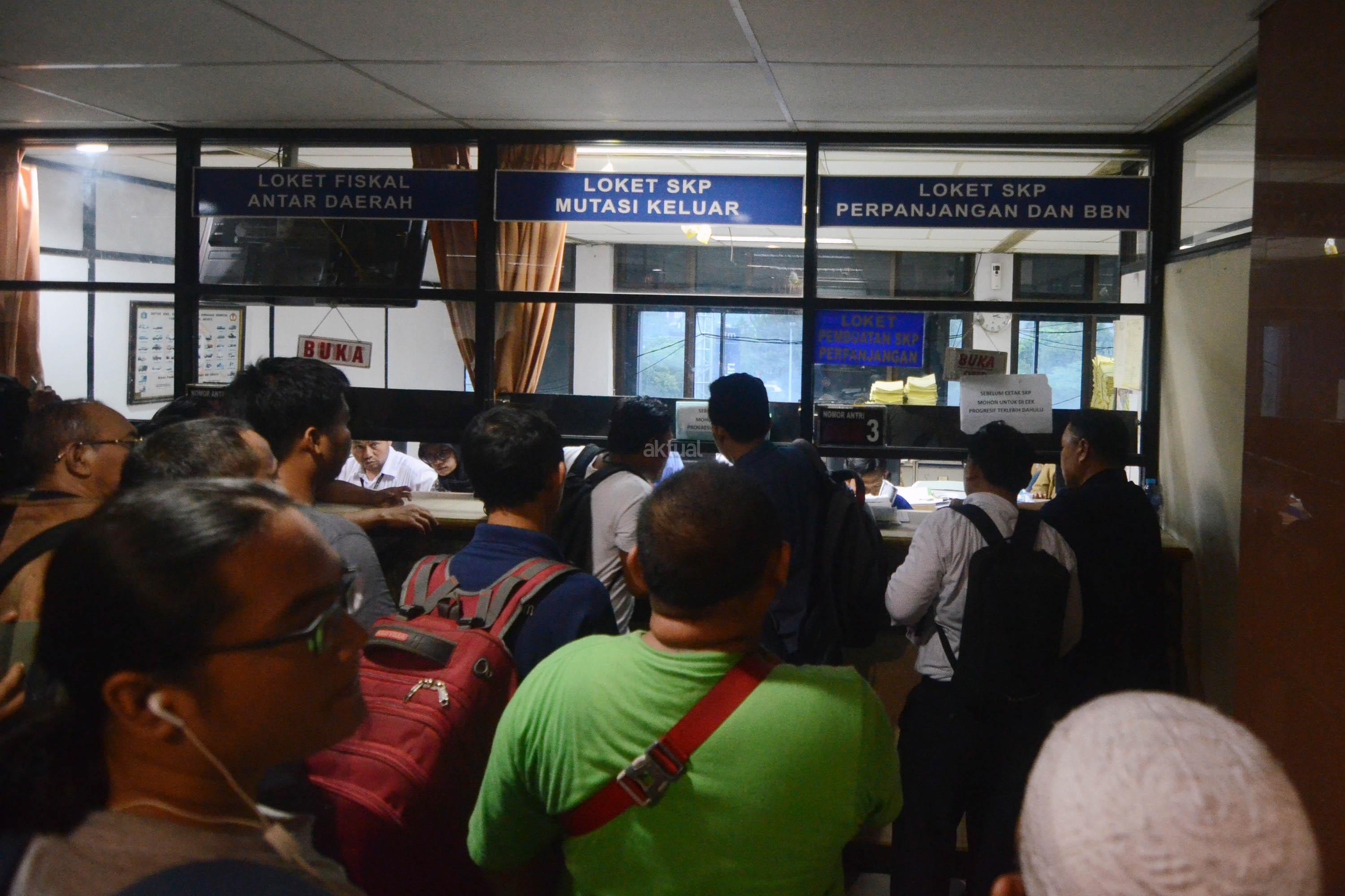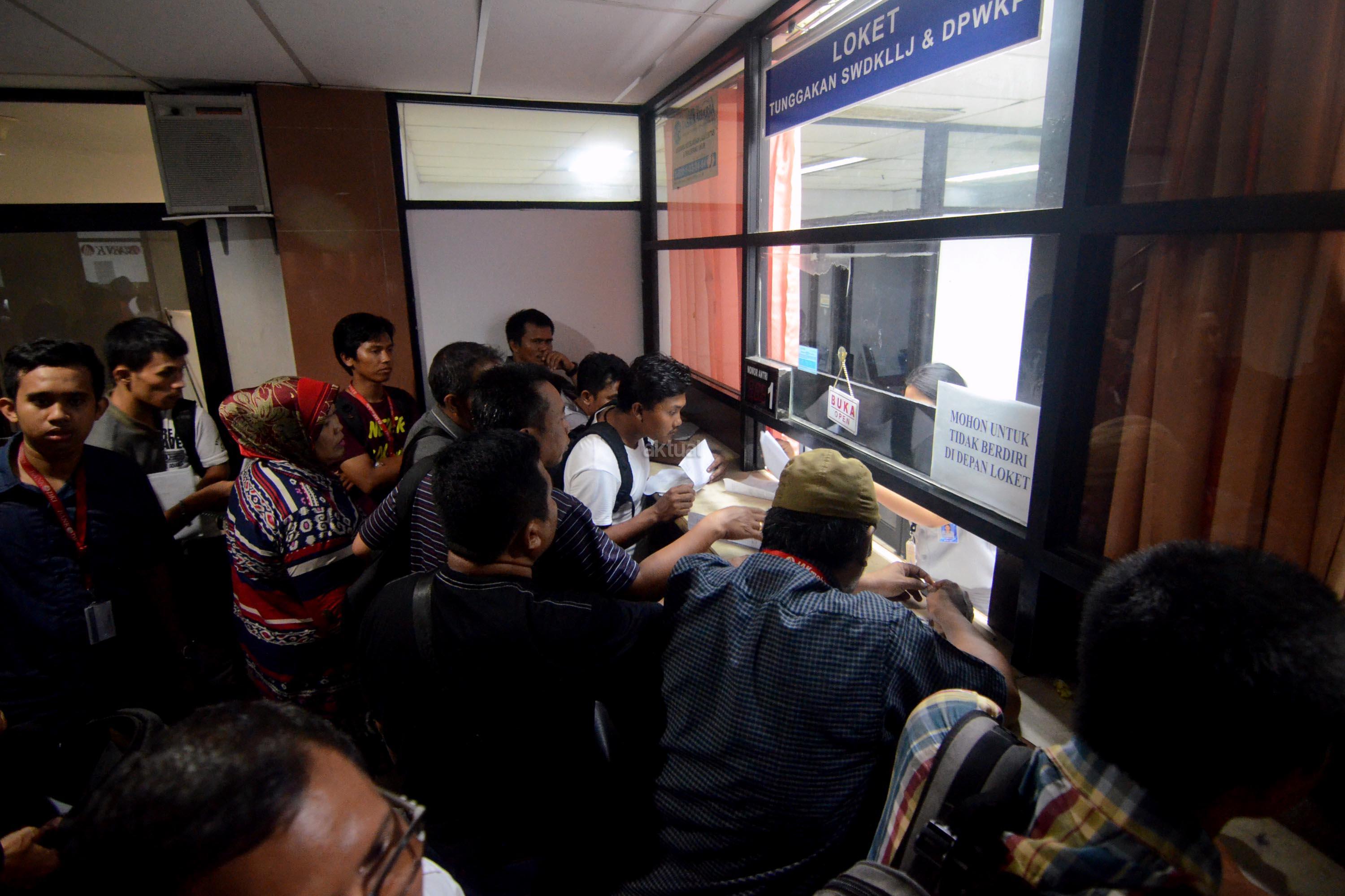 Warga melakukan pembayaran pajak kendaraan bermotor di Kantor Samsat Polda Metro Jaya, Jakarta, Selasa (1/7/2017). Dirlantas Polda Metro Jaya bekerja sama dengan Pemprov DKI Jakarta menghapus sanksi administrasi atau denda pajak kendaraan bermotor (PKB) dan bea balik nama kendaraan bermotor (BBN-KB) bagi wajib pajak (WP) yang memiliki tunggakan. AKTUAL/Munzir