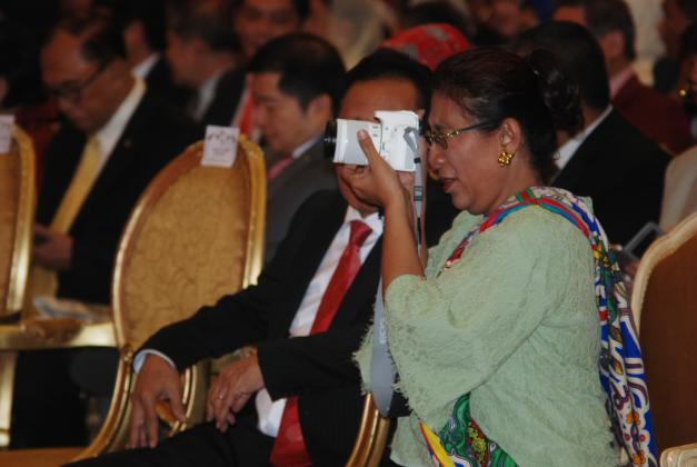 Menteri Kelautan dan Perikanan Susi Pudjiastuti (kanan) mengabadikan peristiwa Penganugerahan Gelar Doktor Honoris Causa (Dr.H.C) Megawati Soekarnoputri Bidang Politik dan Pemerintahan di Kampus Unpad, Bandung, Jawa Barat, Rabu (25/5). Universitas Padjadjaran (Unpad) memberikan gelar DHC kepada Megawati atas pemikiran, prestasi, dan jasa-jasanya terhadap negara dan luar negeri di bidang politik serta pemerintahan. ANTARA FOTO/Fahrul Jayadiputra/ama/16