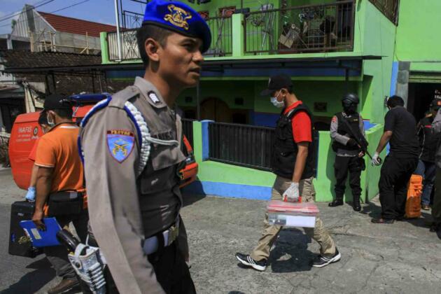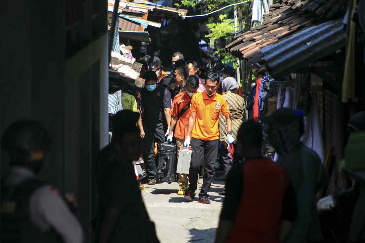 Anggota Datasemen Khusus (Densus) 88 antiteror Mabes Polri bersama Inafis dan Labfor Mabes Polri membawa sejumlah barang bukti milik pelaku bom bunuh diri di Mapolres Solo, Nur Rohman dalam penggeledahan di rumah keluarganya di Kampung Sangkrah, Pasar Kliwon, Solo, Jawa Tengah, Jumat (8/7). Penggeledahan lanjutan tersebut untuk mencari bahan bukti baru dalam pengembangan kasus bom bunuh diri di Mapolresta Solo yang dilakukan oleh Nur Rohman. ANTARA FOTO/Maulana Surya/ama/16.