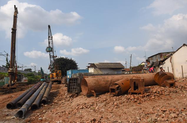 Alat berat meratakan tanah pada proyek pembangunan rel ganda Manggarai-Jatinegara di Manggarai, Jakarta, Rabu (1/6). Pengerjaan proyek rel ganda Manggarai-Jatinegara yang terbagi dalam lima paket senilai Rp 363,26 miliar untuk meningkatkan pelayanan PT KAI itu ditargetkan selesai pada Desember 2017. ANTARA FOTO/Wahyu Putro A/ama/16