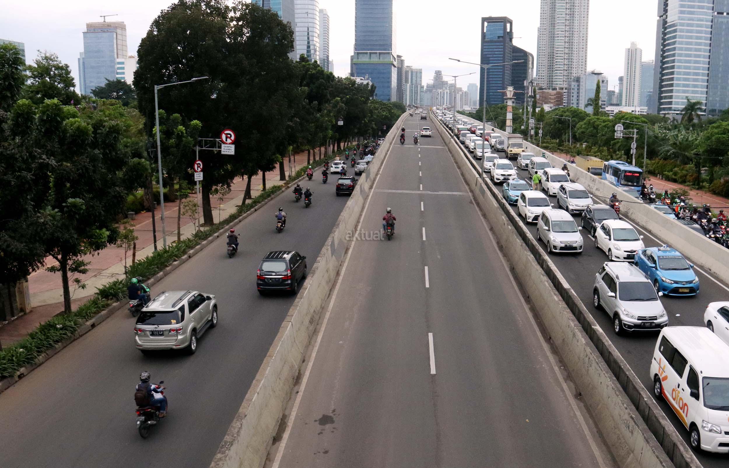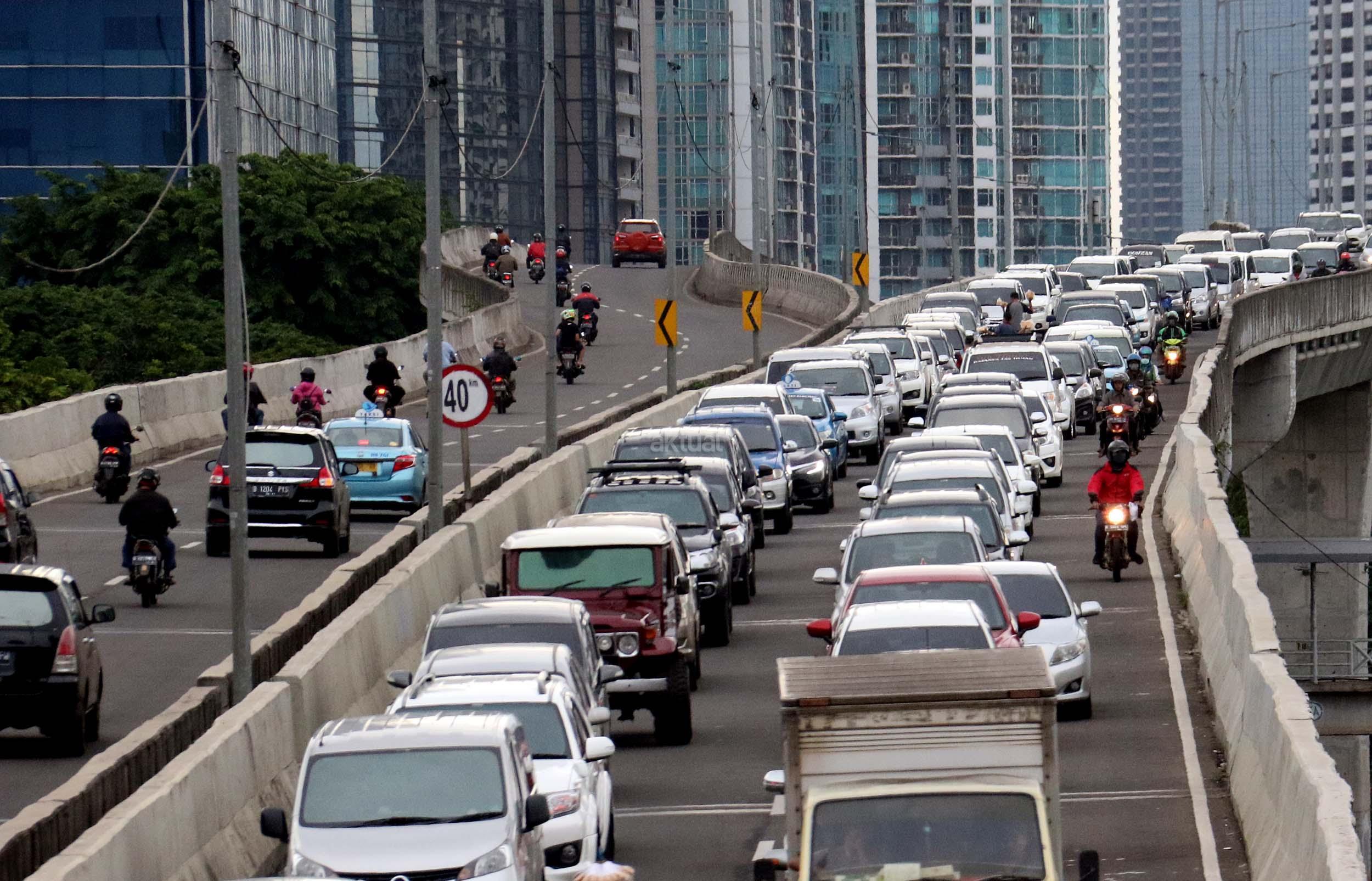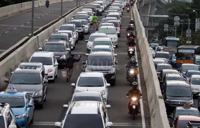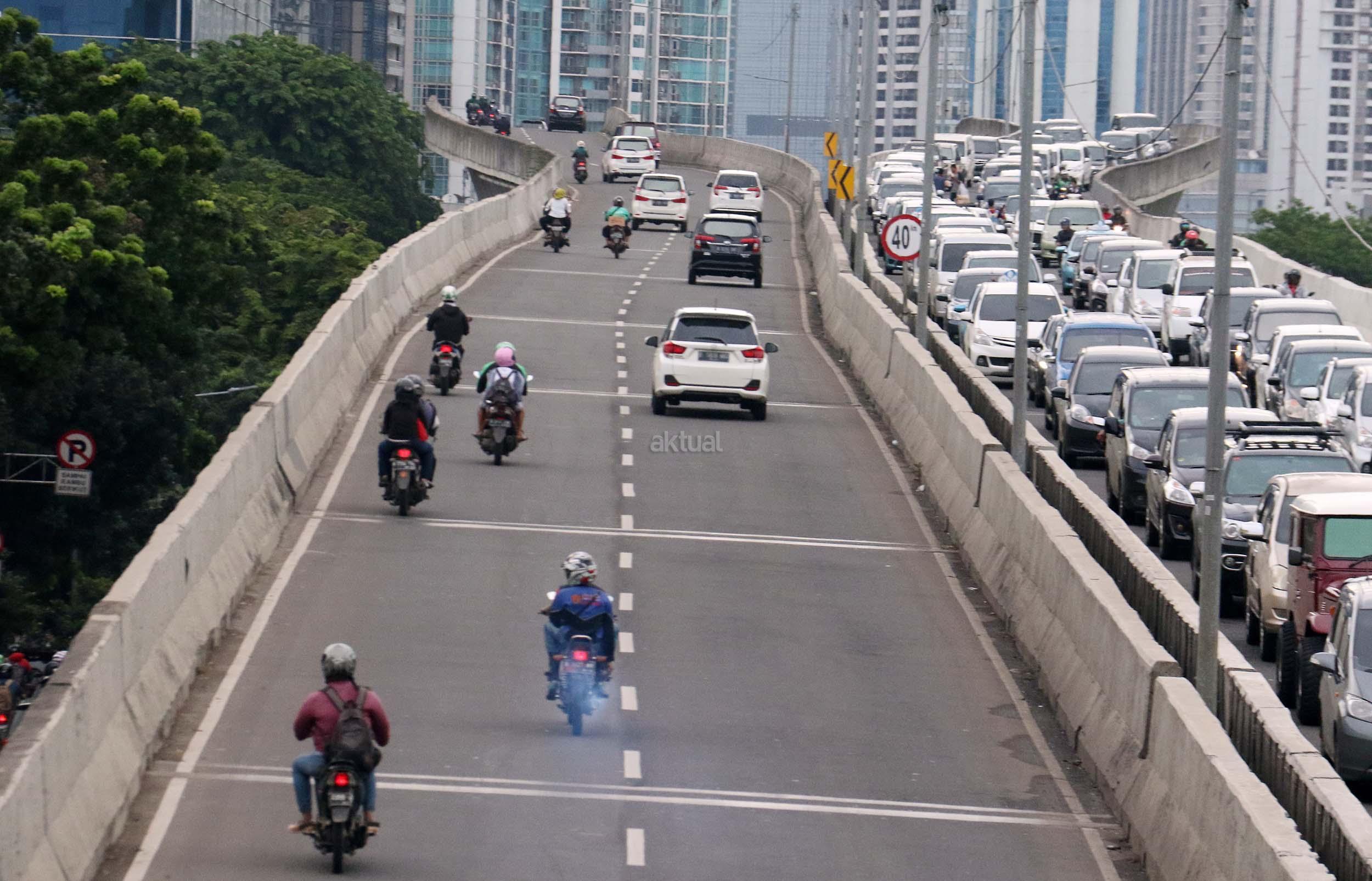Pengendara sepeda motor melintas di jalan layang non-tol Kampung Melayu-Tanah Abang, Jakarta, Senin (5/12/2016). Meski berbahaya bagi keselamatan mereka dan pengguna jalan lain, pemotor tetap melintas di jalur tersebut. AKTUAL/Munzir
