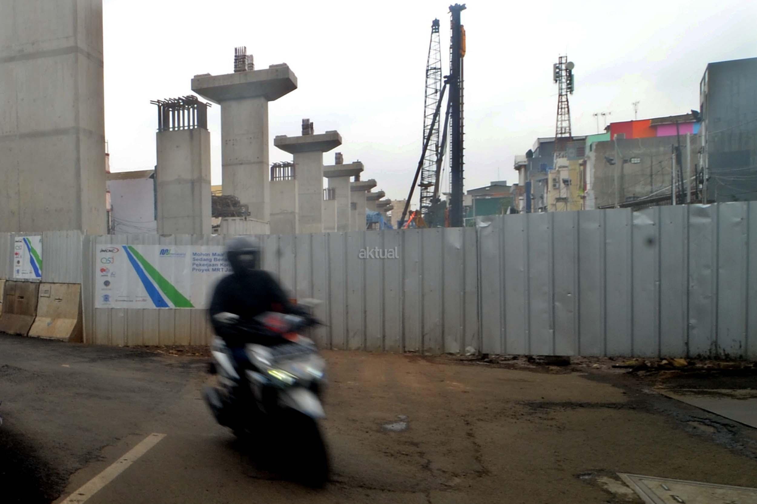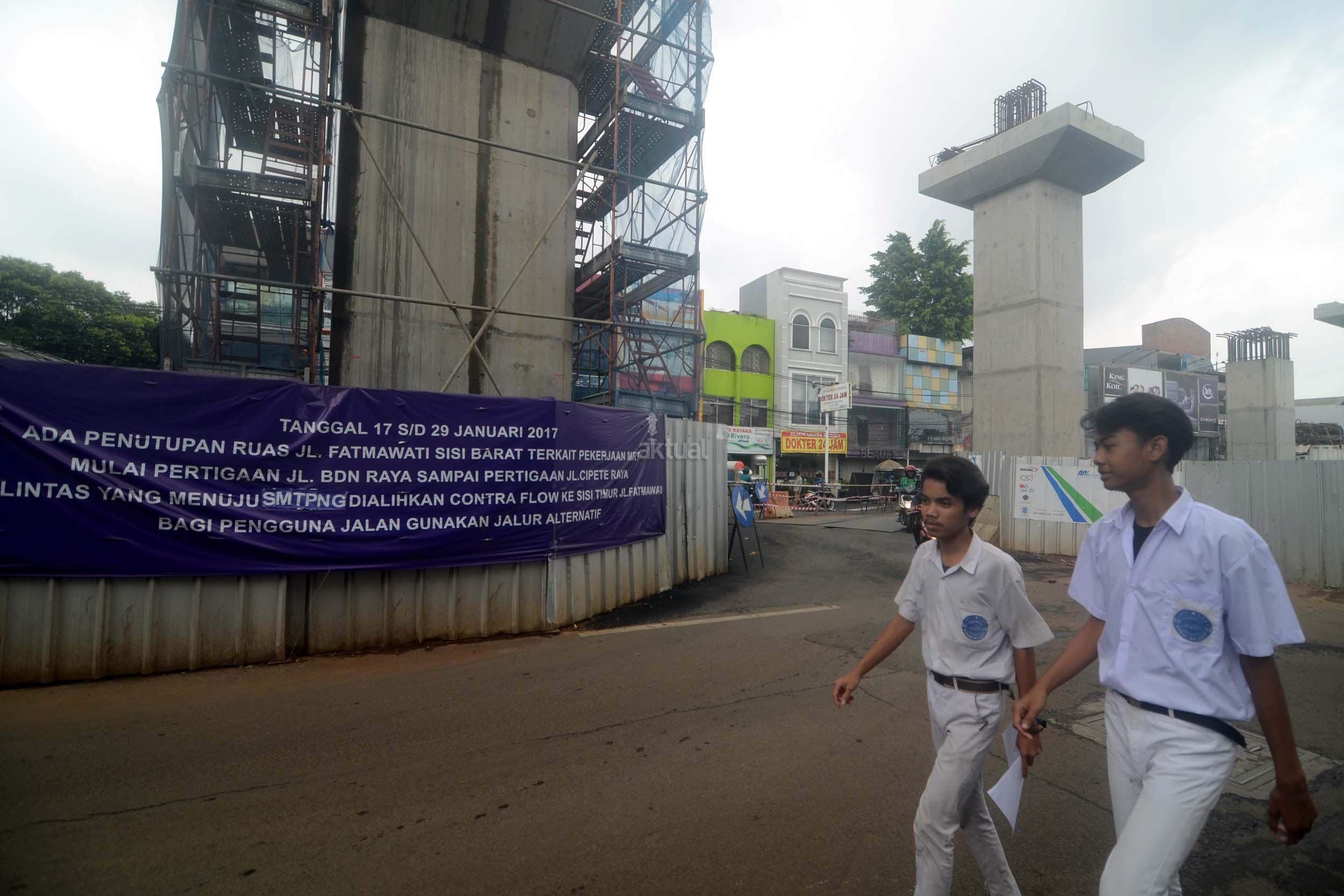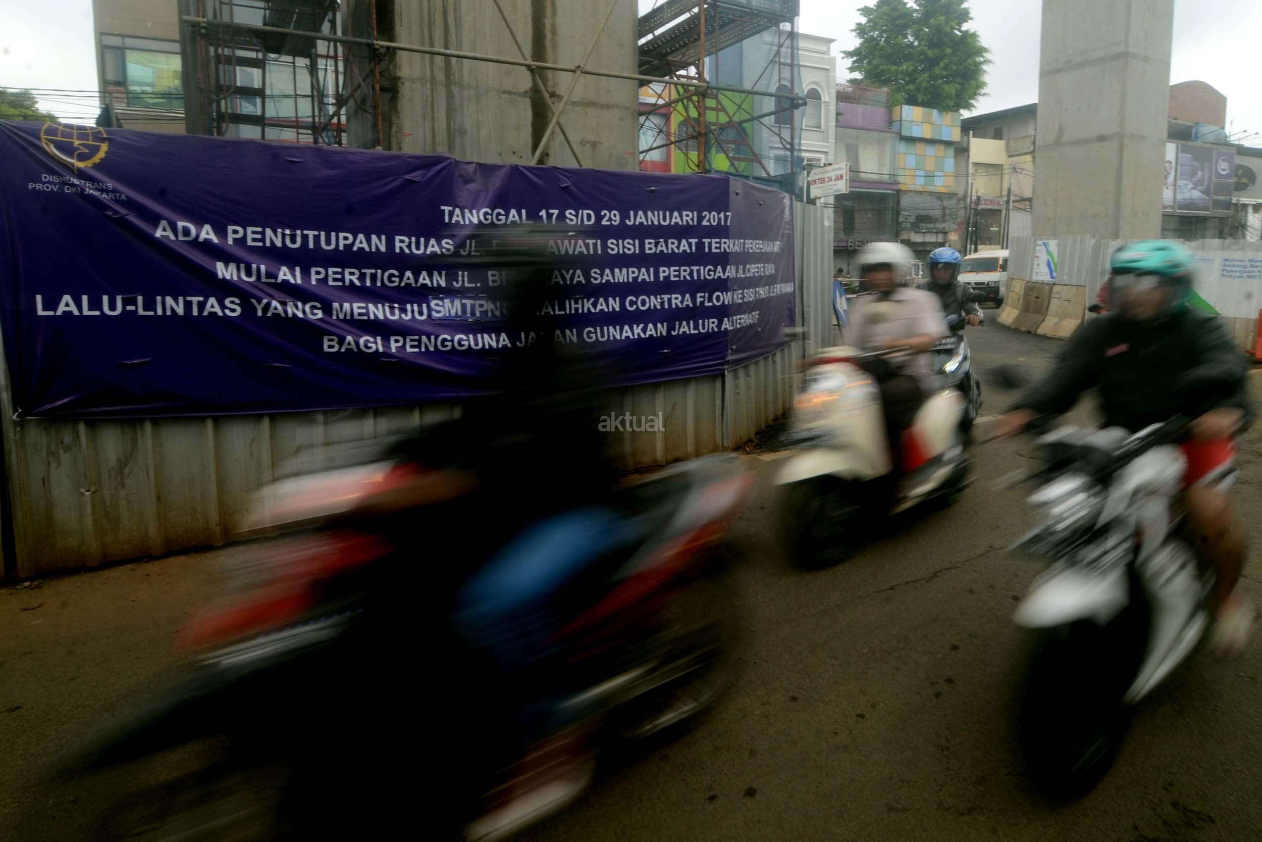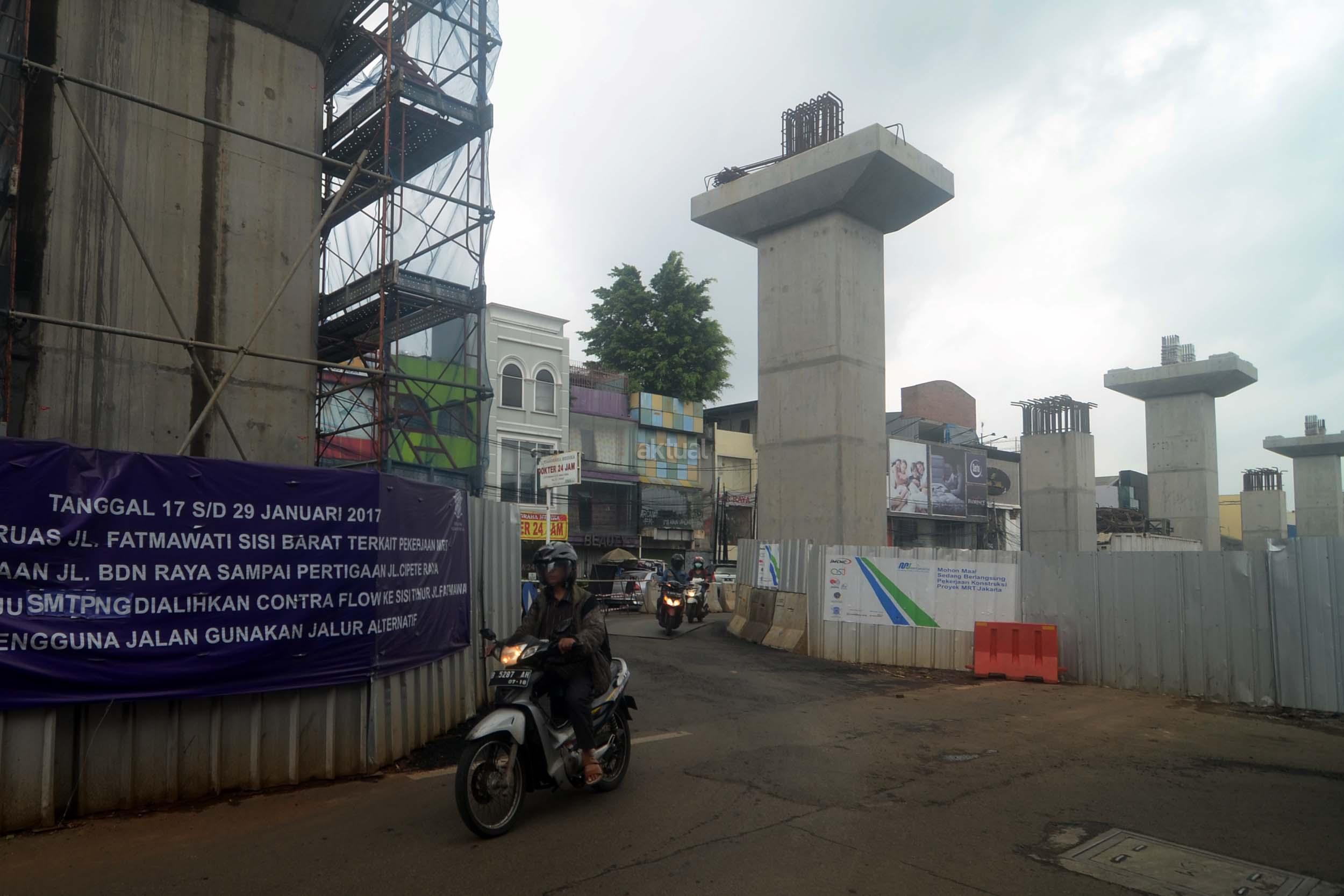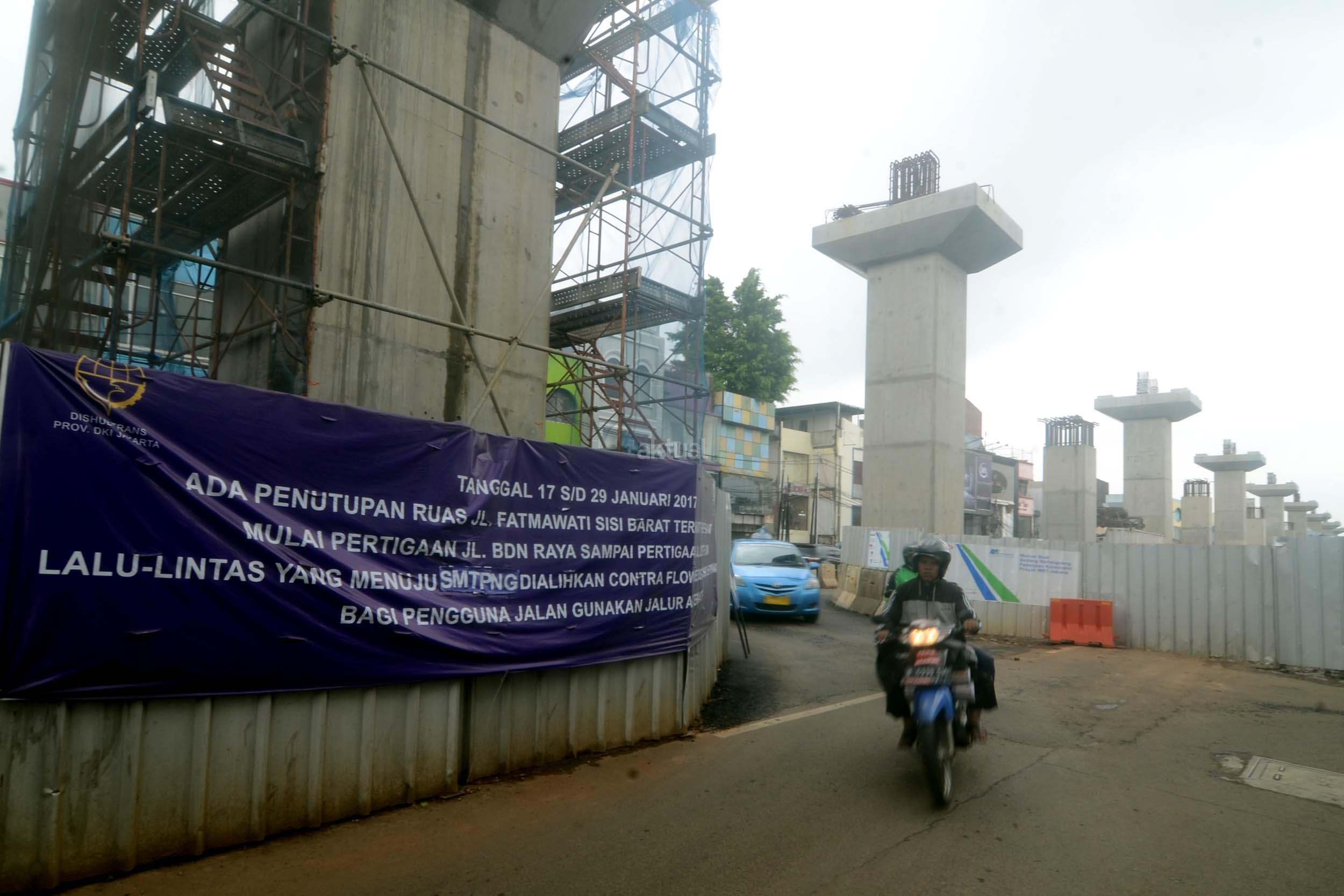 Sejumlah kendaraan melintas di dekat proyek Mass Rapid Transit (MRT) di Jalan Fatmawati, Jakarta. Senin (30/1/2017). PT MRT Jakarta berkordinasi dengan Dinas Perhubungan dan Transportasi Provinsi DKI Jakarta dan Ditlantas Polda Metro Jaya, akan melakukan penutupan Jalan Fatmawati mulai 4 Februari hingga 11 Agustus 2017 untuk pembangunan stasiun MRT Haji Nawi yang berlokasi di jalan tersebut. AKTUAL/Munzir