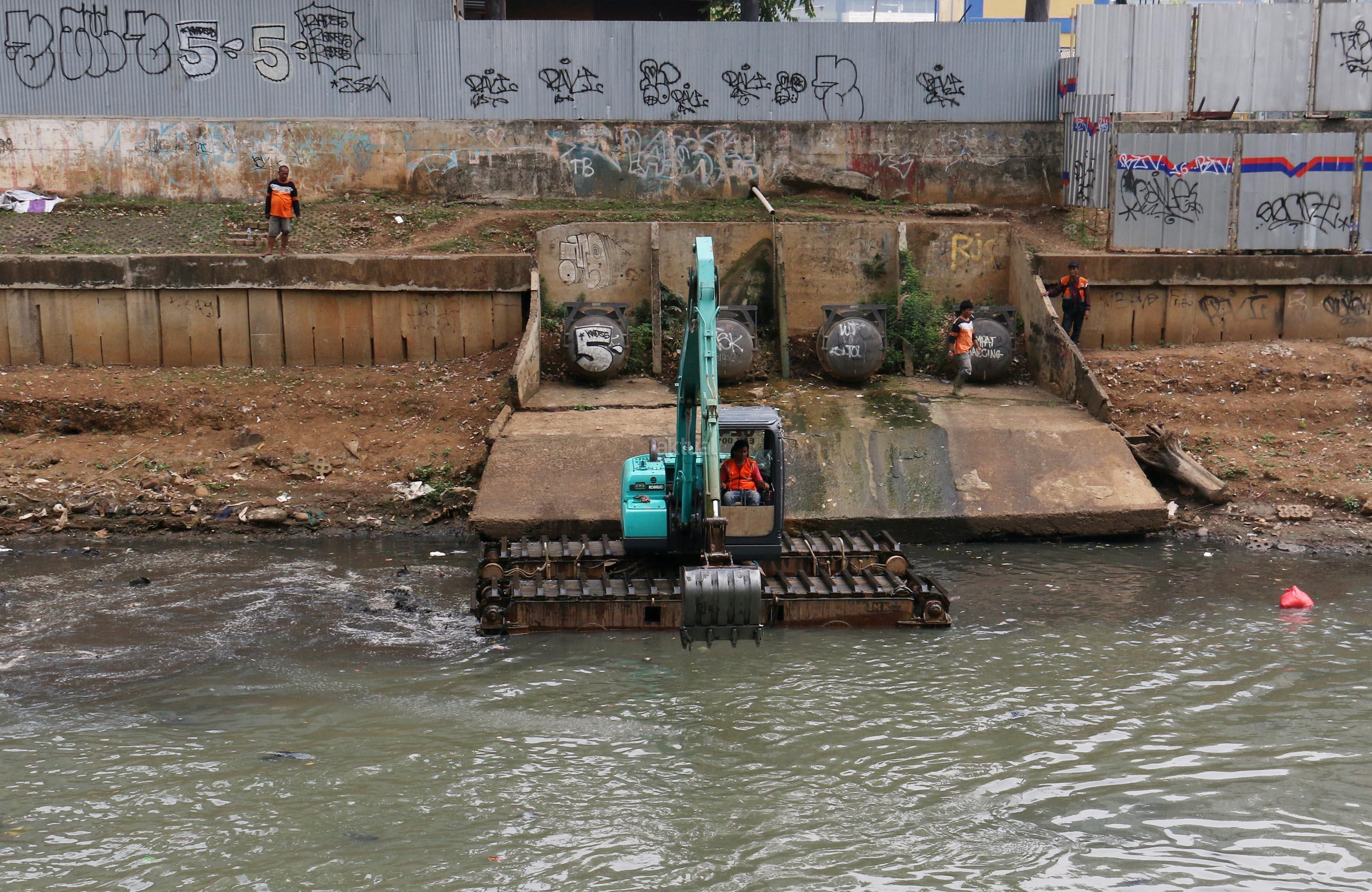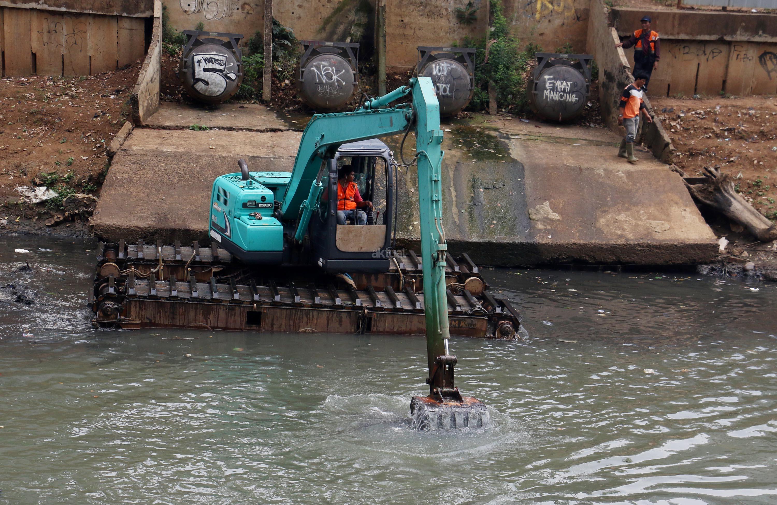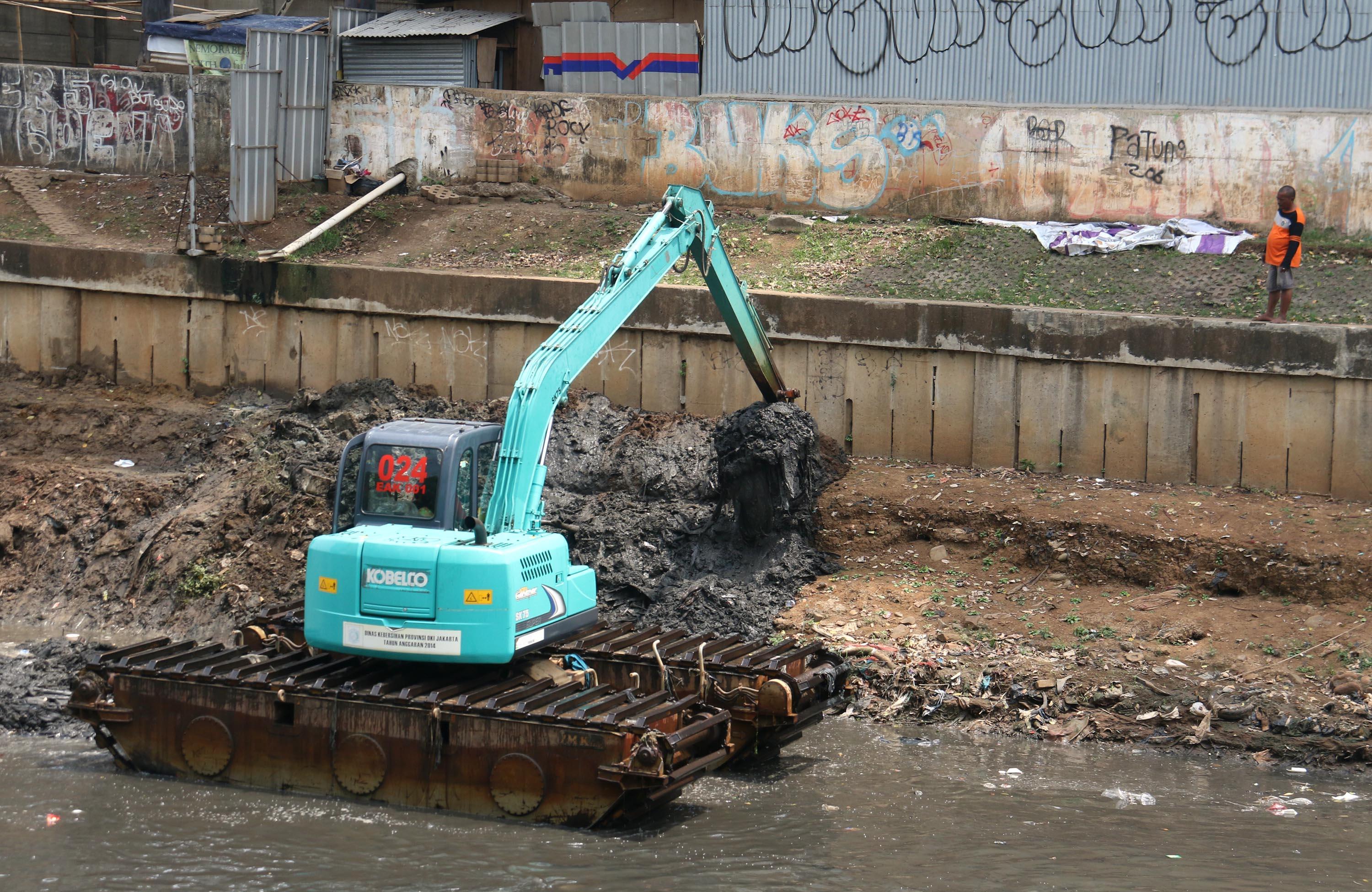 Pengerukan Lumpur Kali Banjir Kanal Barat Mencegah Pendangkalan