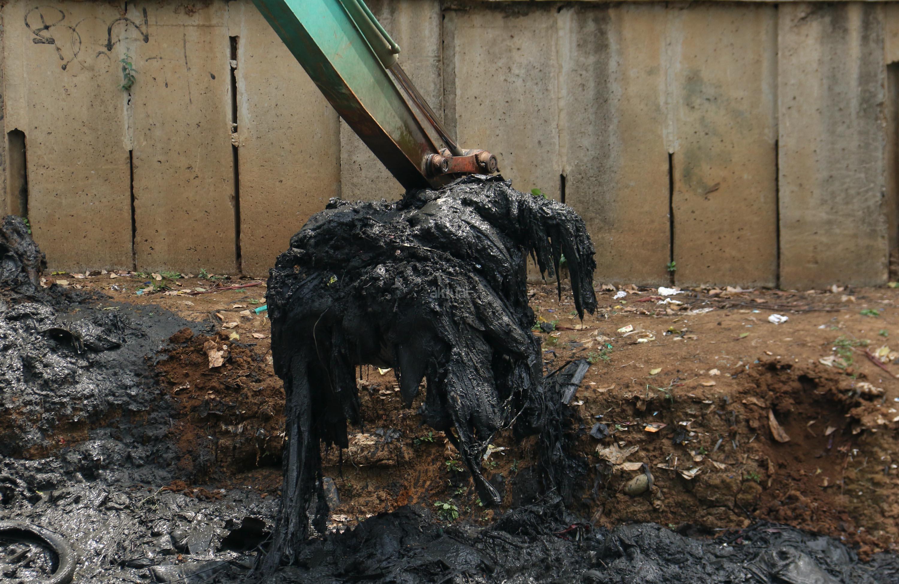 Eskavator/Alat Berat Dinas Pekerjaan Umum (CPU) DKI Jakarta mengangkut lumpur di Kali Banjir Kanal Barat, Jakarta, Rabu (5/10). Pengerukan lumpur di KKali Banjir Kanal Barat. untuk menambah kedalaman kali dan mencegah pedangkalan. AKTUAL/Munzir