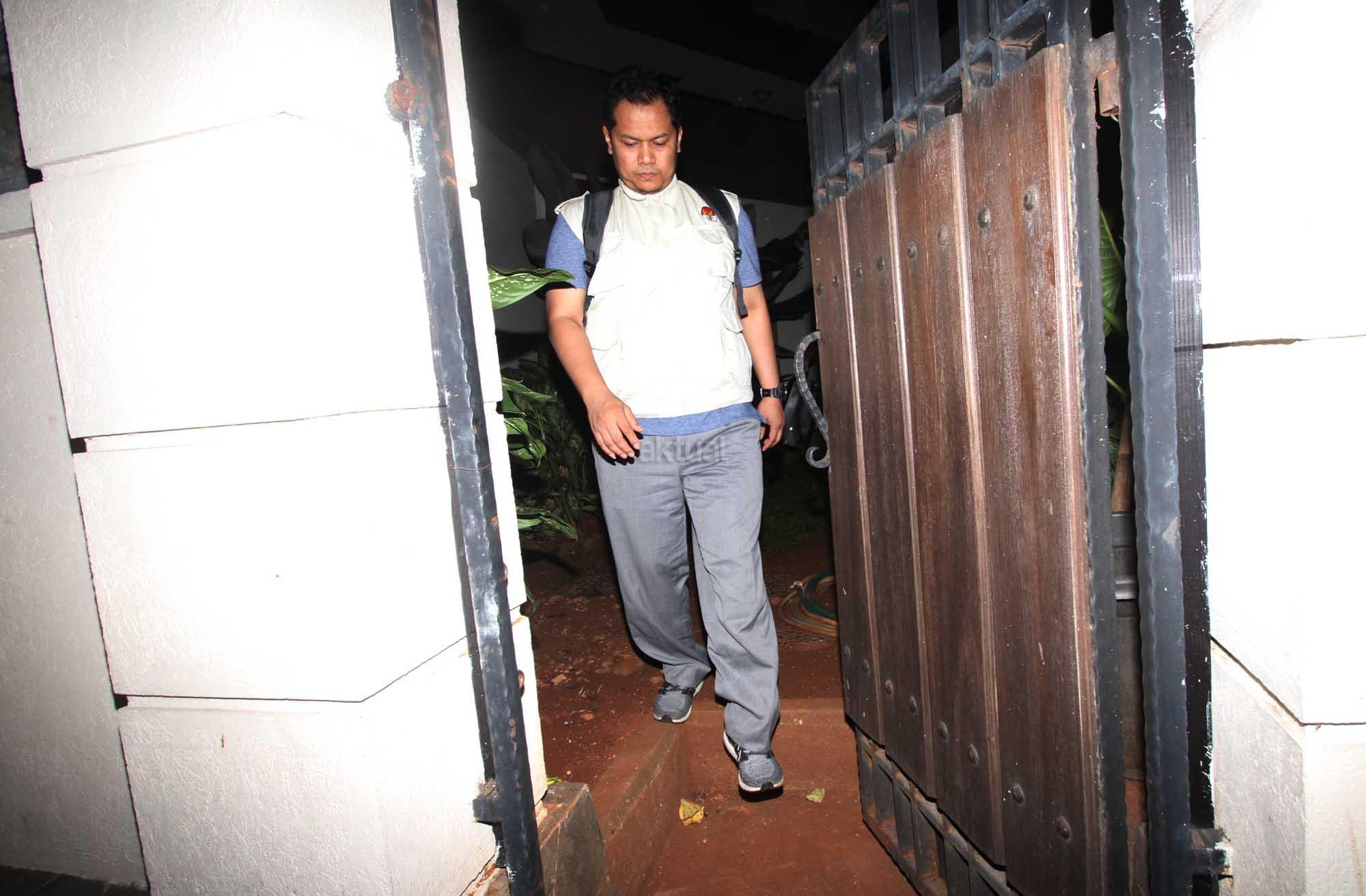 Penyidik KPK bergegas seusai melakukan penggeledahan rumah Direktur Utama PLN Sofyan Basir di Jalan Bendungan Jatiluhur, Bendungan Hilir, Jakarta, Minggu (15/7). KPK melakukan penggledahan tersebut sebagai tindak lanjut operasi tangkap tangan (OTT) terhadap Wakil Ketua Komisi VII DPR Eni Maulani Saragih terkait kasus suap pembangunan PLTU Riau-1. AKTUAL/Tino Oktaviano