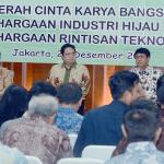 Menteri Perindustrian Airlangga Hartarto (tengah) didampingi jajarannya saat hadir untuk memberikan penghargaan Industri Hijau di Kantor Kementrian Perindustrian, Jakarta, Selasa (20/12). AKTUAL/Eko S Hilman