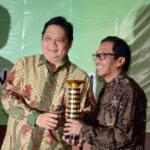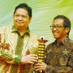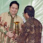 Menteri Perindustrian Airlangga Hartarto (kiri) memberikan penghargaan Industri Hijau kepada Direktur Utama PT Semen Gresik,Sunardi Priono Murti di Kantor Kementrian Perindustrian, Jakarta, Selasa (20/12).Semen Gresik Tuban merauh penghargaan Industri 2016 untuk level tertinggi atau level 5 dari Kementrian Deprind mewakili Pemerintah. AKTUAL/Eko S Hilman