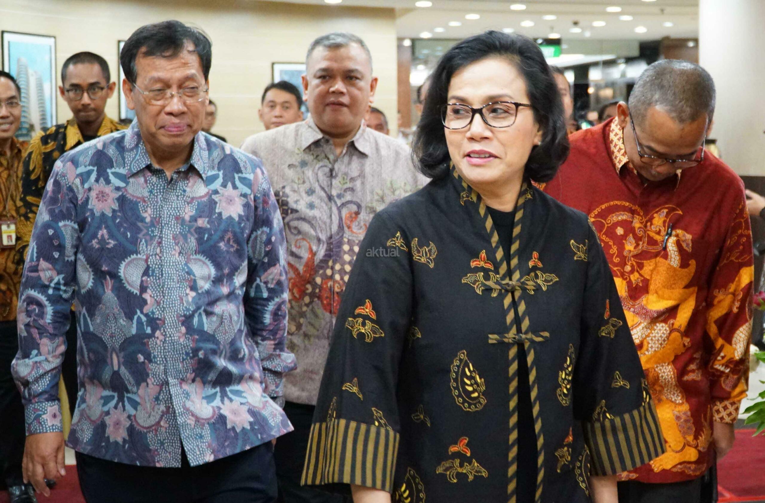 Menteri Keuangan Sri Mulyani (kanan) didampingi Dirjen Pajak Robert Pakpahan sebelum menyampaikan sambutan di depan para wajib pajak seusai menyerahkan piagam penghargaan Wajib Pajak di Gedung Radjiman Wedyodiningrat, Jakarta, Selasa (13/3). Sebanyak 31 wajib pajak besar meraih apresiasi dan penghargaan atas kepatuhan terhadap peraturan perpajakan dan pencapaian target penerimaan Kanwil DJP Wajib Pajak Besar di tahun 2017. AKTUAL/Eko S Hilman