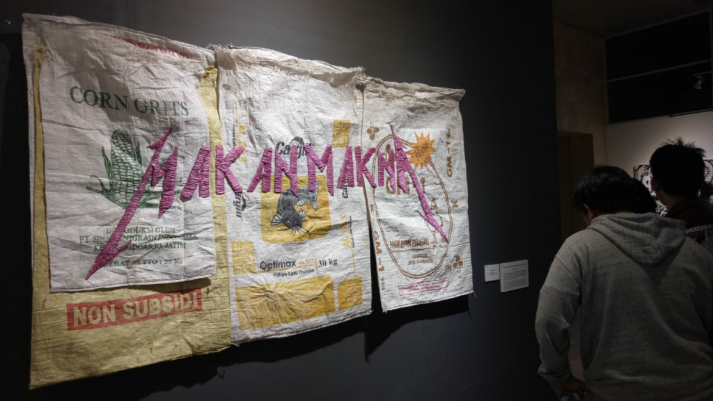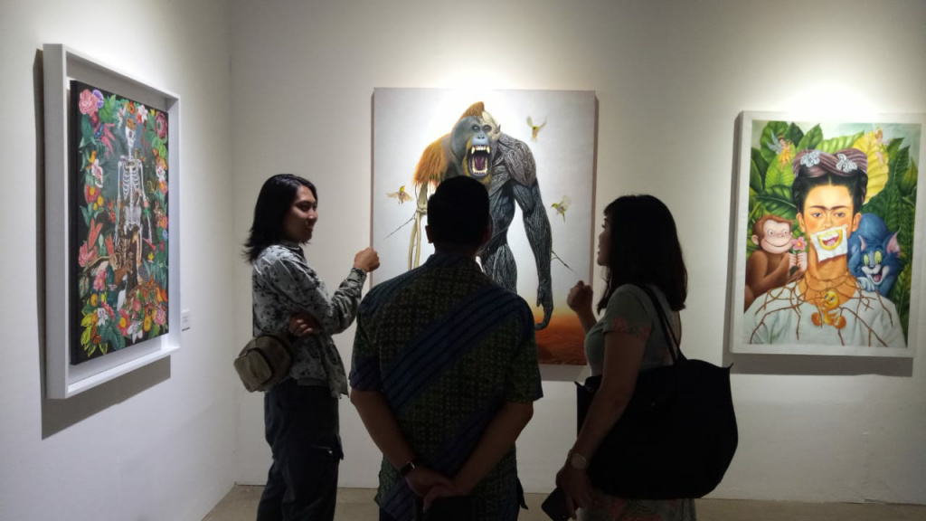 Suasana pameran karya lukisan para pemenang penghargaan UOB Painting Of The Year 2019 di Museum Nasional, Jakarta, Kamis (17/10) malam.