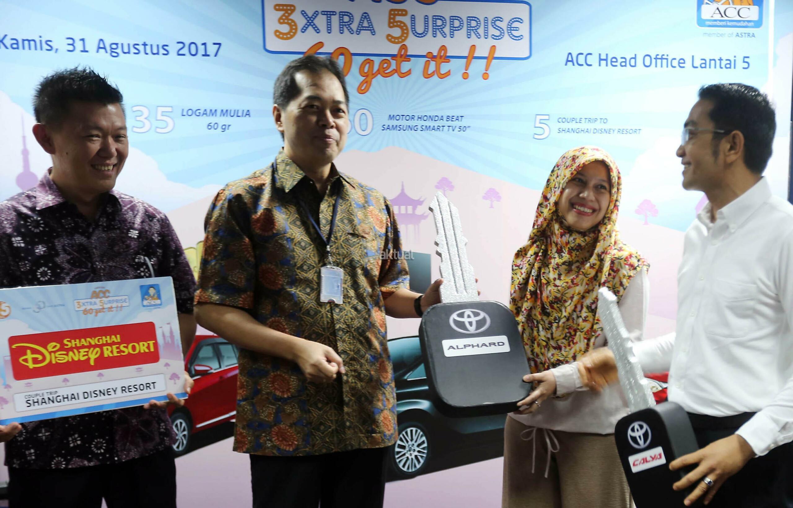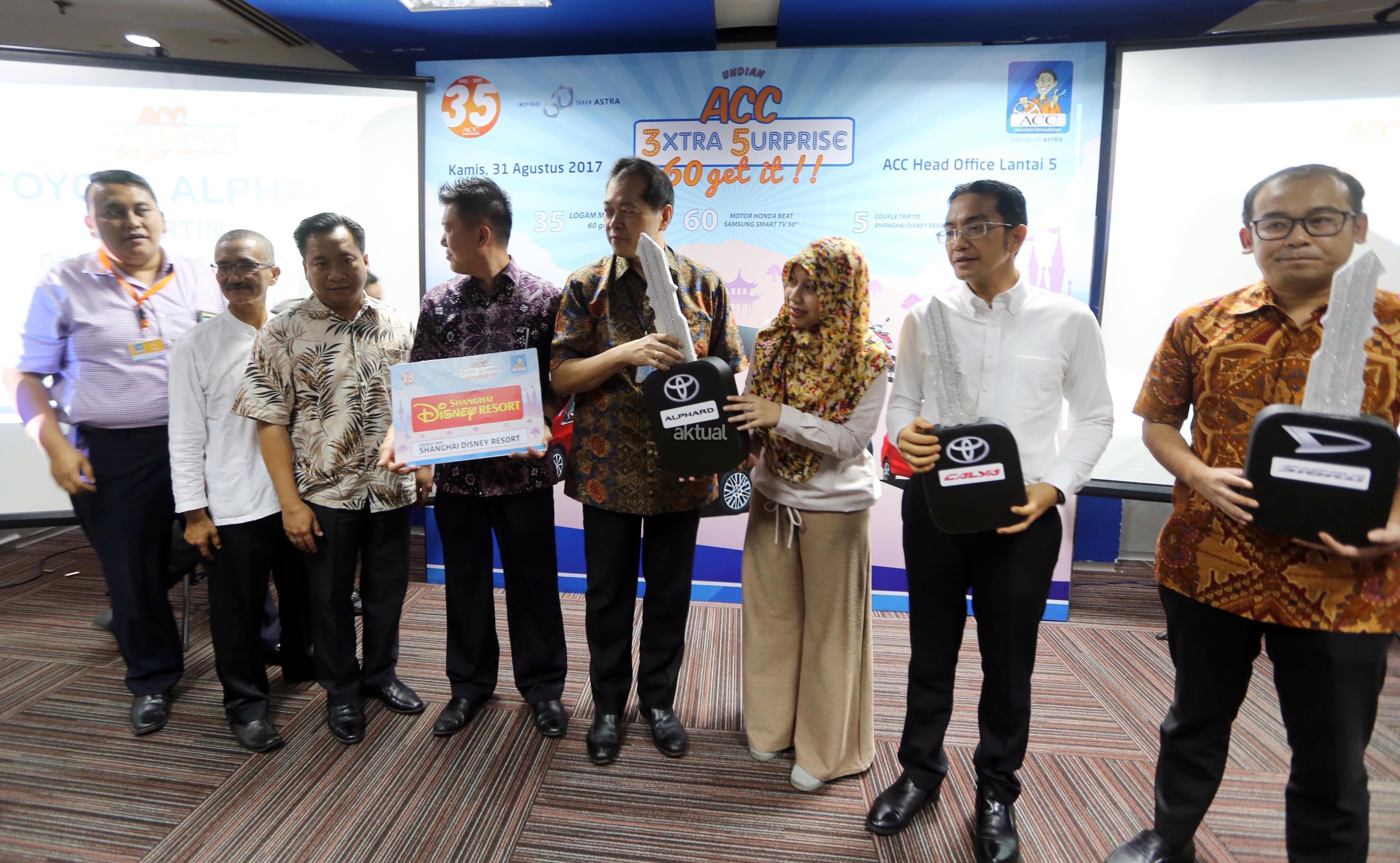 Astra Credit Companies (ACC), perusahaan pembiayaan pertama Astra, mengumumkan pemenang undian berhadiah ACC 3xtra 5urprise yang merupakan program undian senilai miliaran rupiah sebagai bentuk apresiasi acc kepada pelanggan setianya. Program undian berhadiah ini dimulai sejak bulan Februari 2017 hingga bulan Juli 2017. AKTUAL/Eko S Hilman