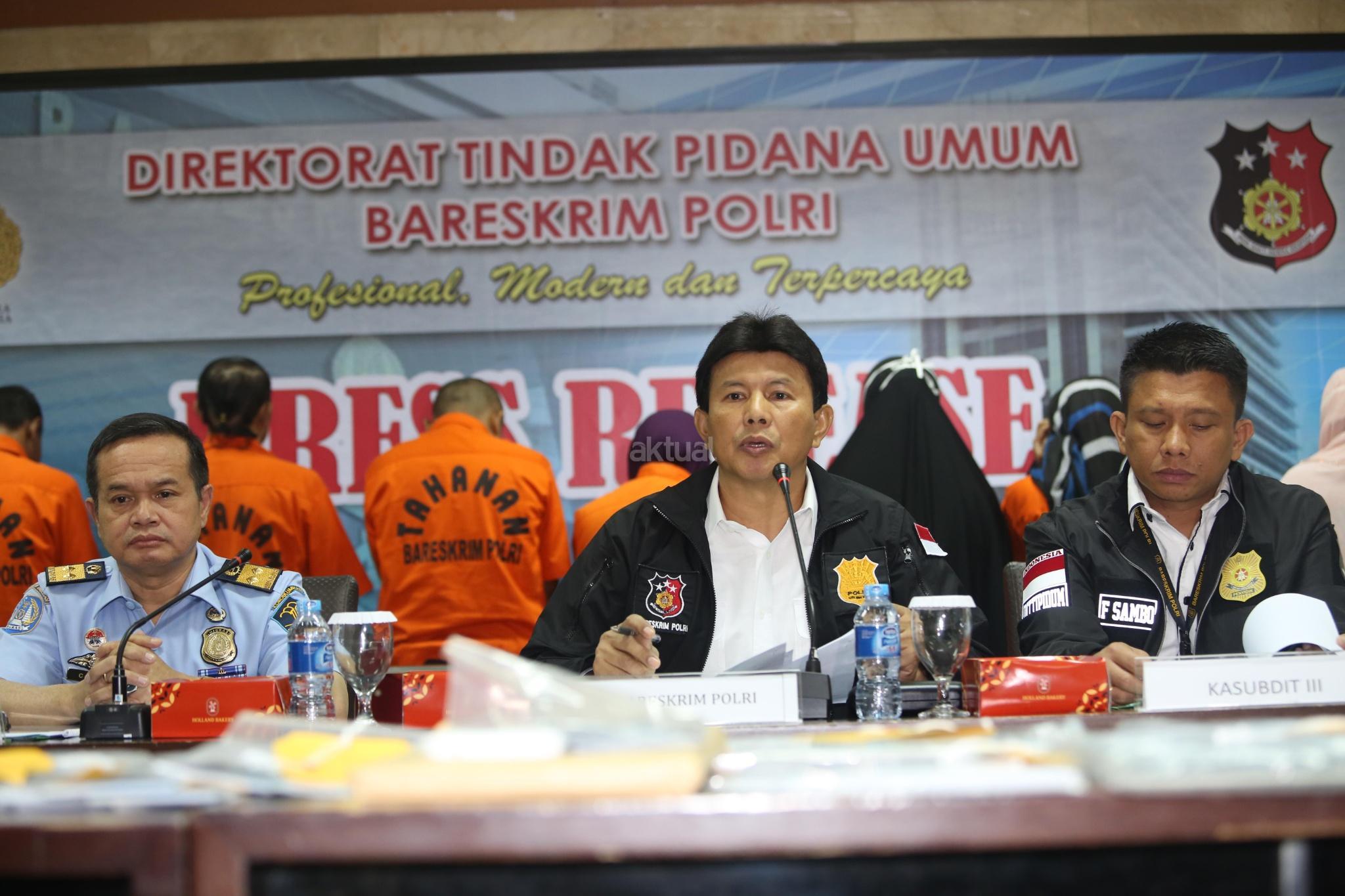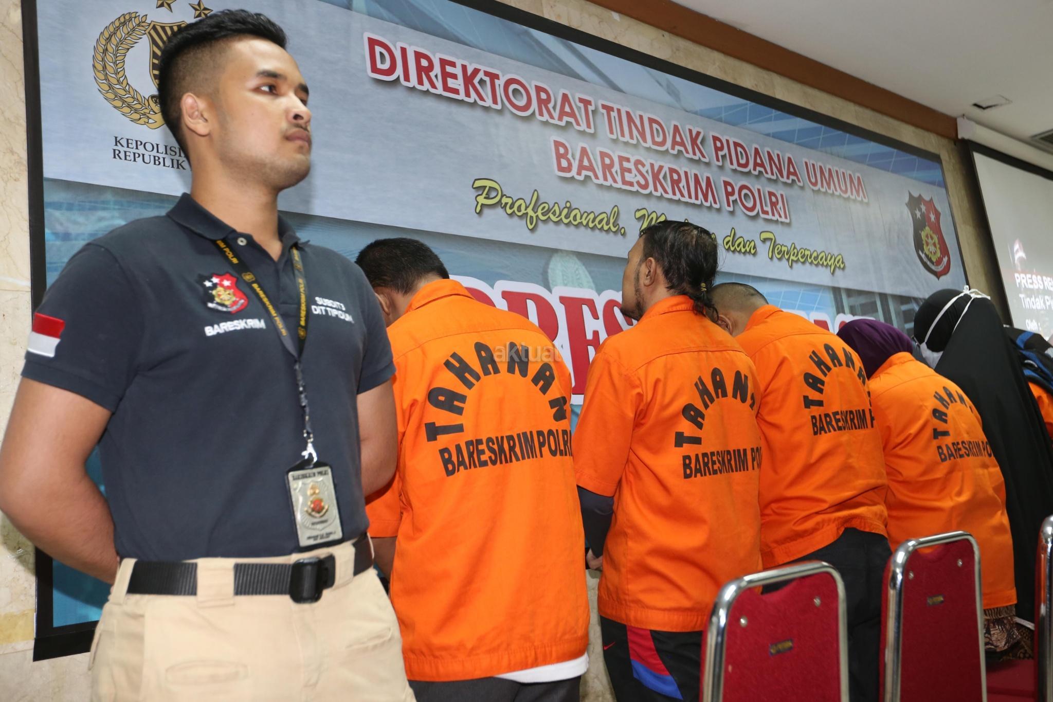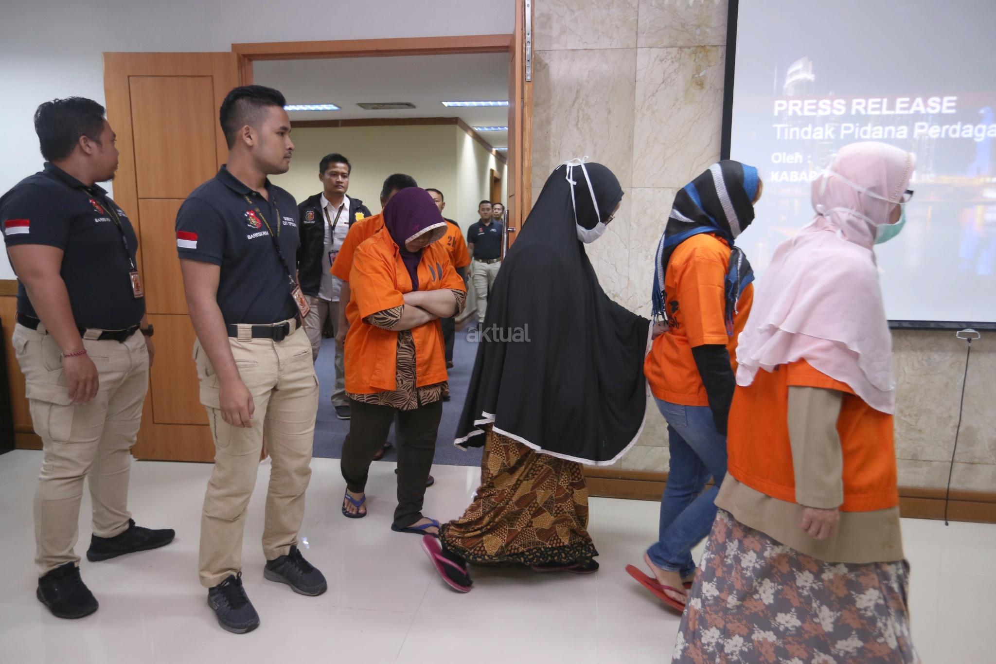 Bareskrim Mabes Polri berhasil melakukan pengungkapan kasus tindak pidana perdagangan orang jaringan Arab Saudi, Jaringan Asia Pasifik dan Jaringan China dengan mengamankan 7 orang tersangka beserta sejumlah barang bukti. AKTUAL/Tino Oktaviano