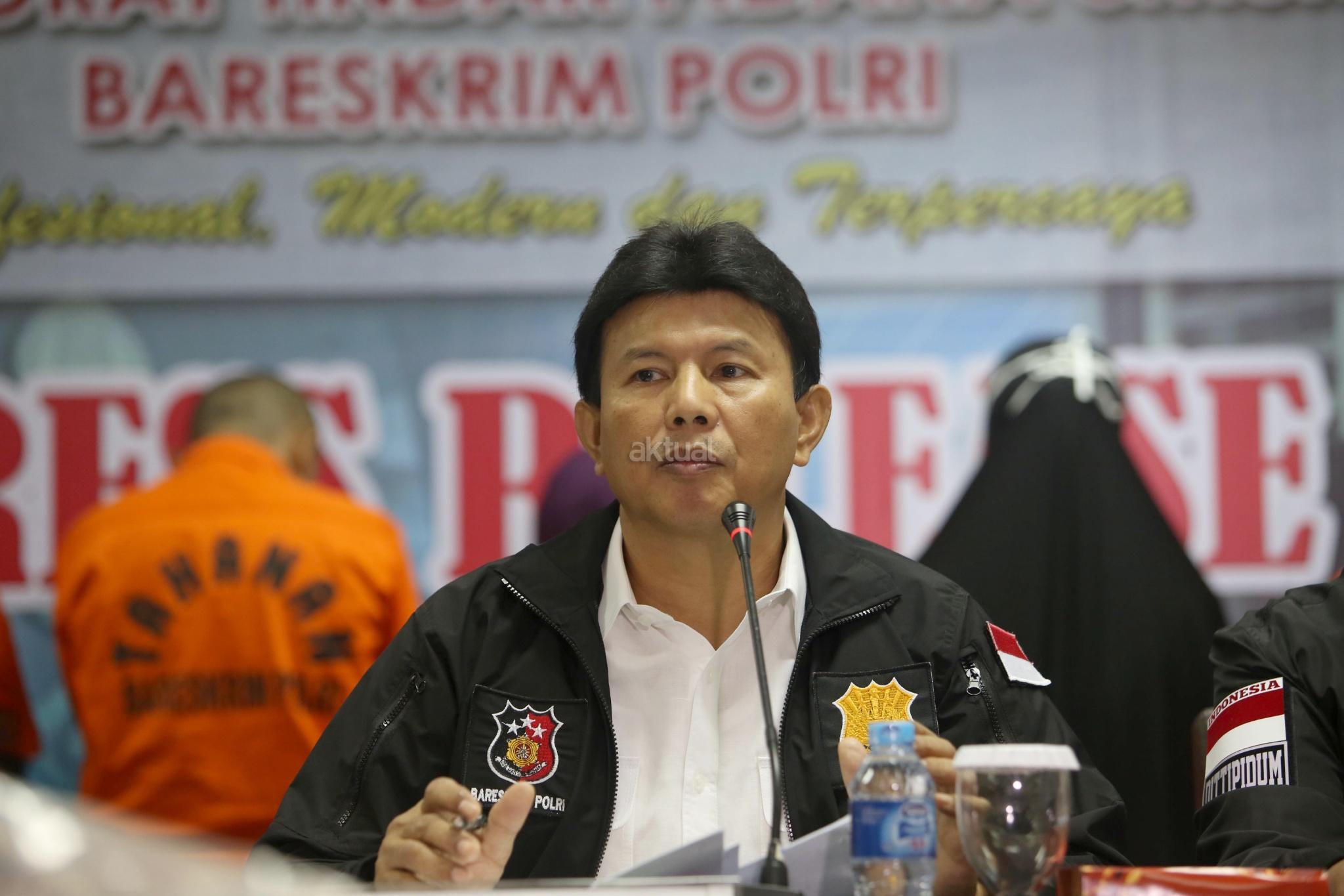 Kabareskrim Mabes Polri Komjen Ari Dono Sukmanto memberikan keterangan mengenai pengungkapan kasus tindak pidana perdagangan orang di Jakarta, Kamis (21/12). Bareskrim Mabes Polri berhasil melakukan pengungkapan kasus tindak pidana perdagangan orang jaringan Arab Saudi, Jaringan Asia Pasifik dan Jaringan China dengan mengamankan 7 orang tersangka beserta sejumlah barang bukti. AKTUAL/Tino Oktaviano