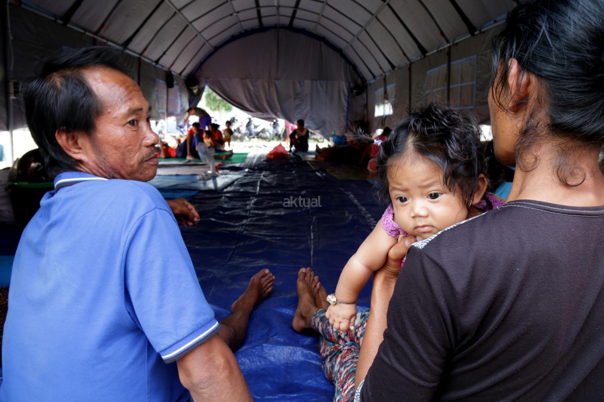 Sejumlah pengungsi Gunung Agung beraktivitas di tempat penampungan di GOR Suwecapura, Klungkung, Bali, Minggu (1/10). Berdasarkan data Badan Nasional Penanggulangan Bencana (BNPB), hingga saat ini jumlah pengungsi Gunung Agung telah mencapai 141.509 orang yang tersebar di berbagai lokasi di seluruh Bali. AKTUAL/Tino Oktaviano