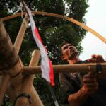 Seorang pedagang menghaluskan Pohon Pinang yang akan dijual di Jalan Manggarai Utara, Jakarta, Jumat (12/8). Penjualan Pohon Pinang untuk perlombaan panjat pinang dalam rangka memeriahkan peringatan HUT Kemerdekaan RI tersebut mulai marak dijual dengan harga Rp750 ribu-Rp1 juta per buah. AKTUAL/TINO OKTAVIANO