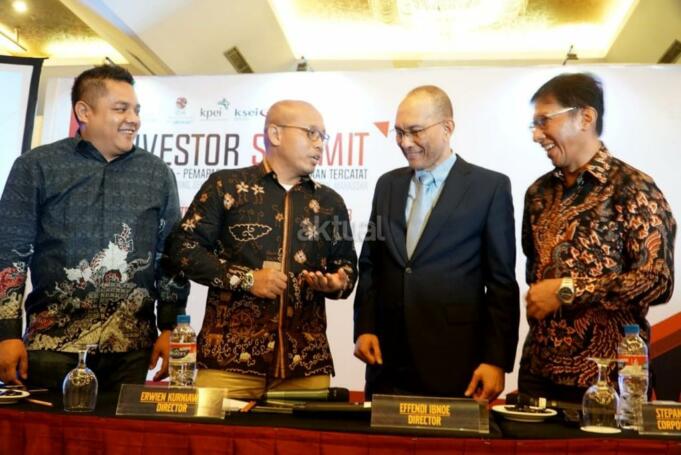 General Manager Sales PT Intraco Penta Prima Servis (IPPS) Novandy Lantang (dari kiri), Direktur IPPS Erwien Kurniawan, Direktur PT Intraco Penta Tbk. (INTA) Effendi Ibnoe, dan Corporate Secretary INTA Stepanus Ardhanova, berbincang di sela-sela paparan publik perseroan di Balikpapan, Kalimantan Timur, Selasa (25/9). Emiten trading alat berat dan konstruksi, mencatat pertumbuhan penjualan di akhir Agustus 2018 naik hingga 113% dibanding Agustus 2017 atau dari Rp695,9 miliar menjadi Rp1,48 triliun. AKTUAL/Eko S Hilman