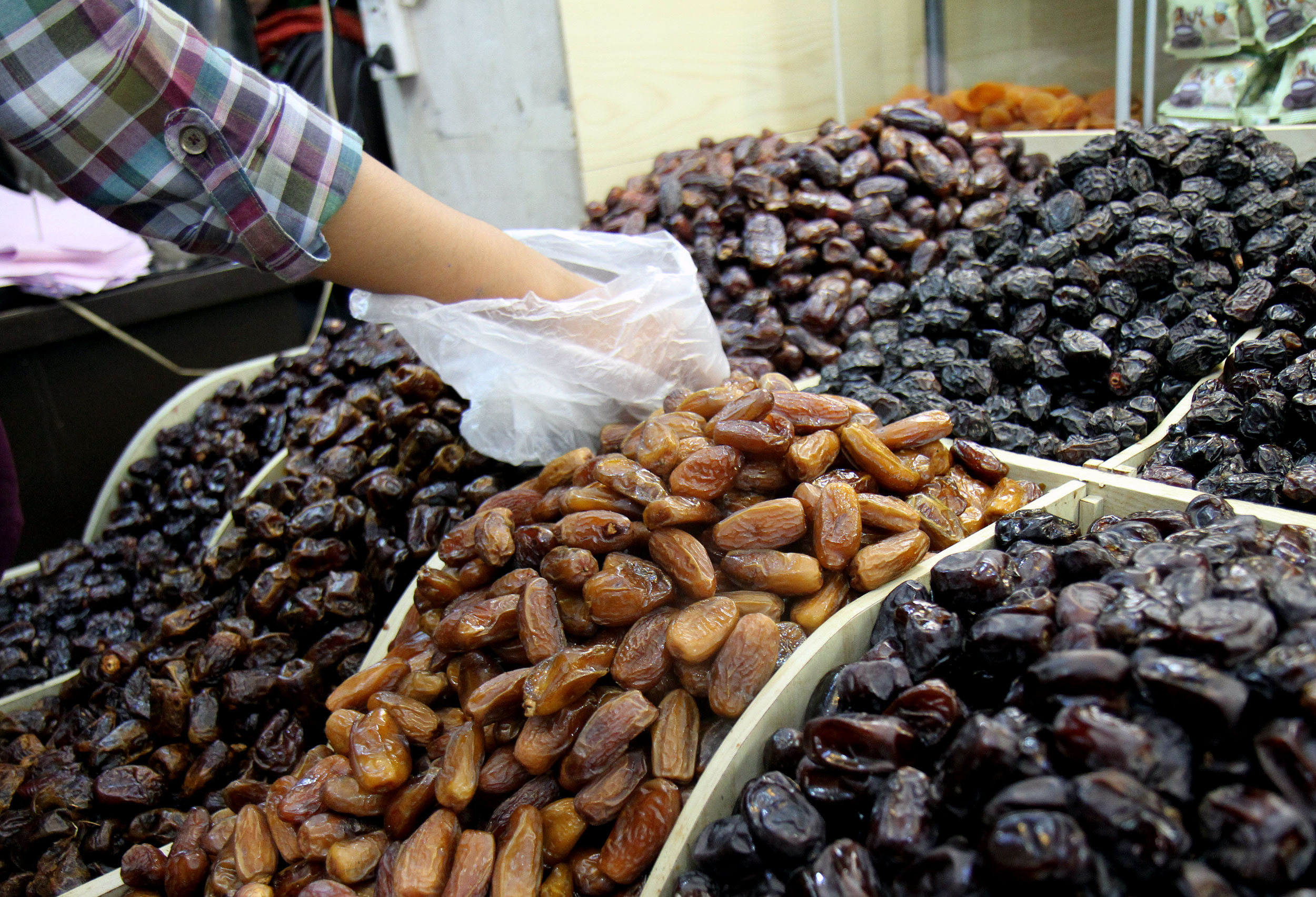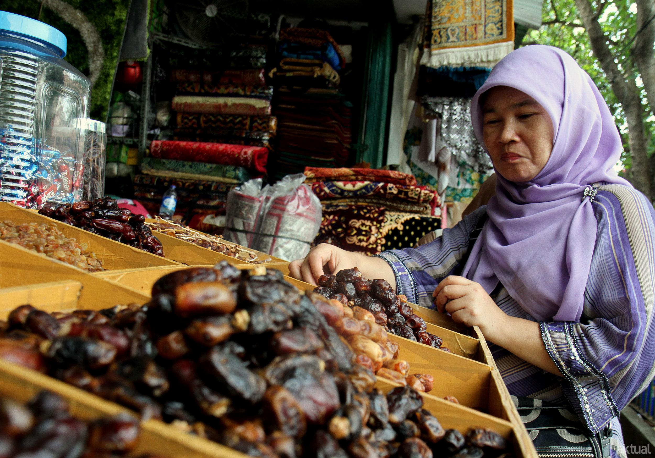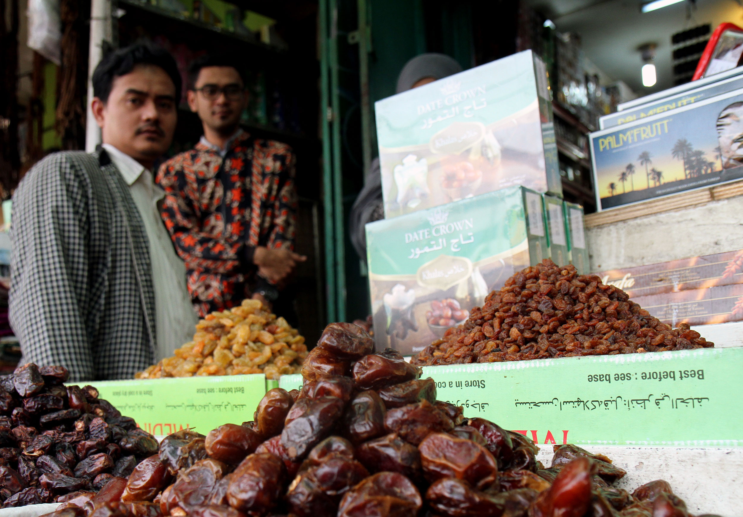 Pembeli memilih beberapa jenis kurma yang dijajakan pedagang di pasar Tanah Abang, Jakarta Pusat, Jumat (12/6/2015). Menjelang Ramadhan penjualan kurma mulai ramai tidak seperti hari. Pedagang mengaku biasanya hanya mendapatkan untung sekitar Rp 1 juta perhari, menjelang ramadhan penjualan naik dua sampe tiga kali lipat. AKTUAL/MUNZIR