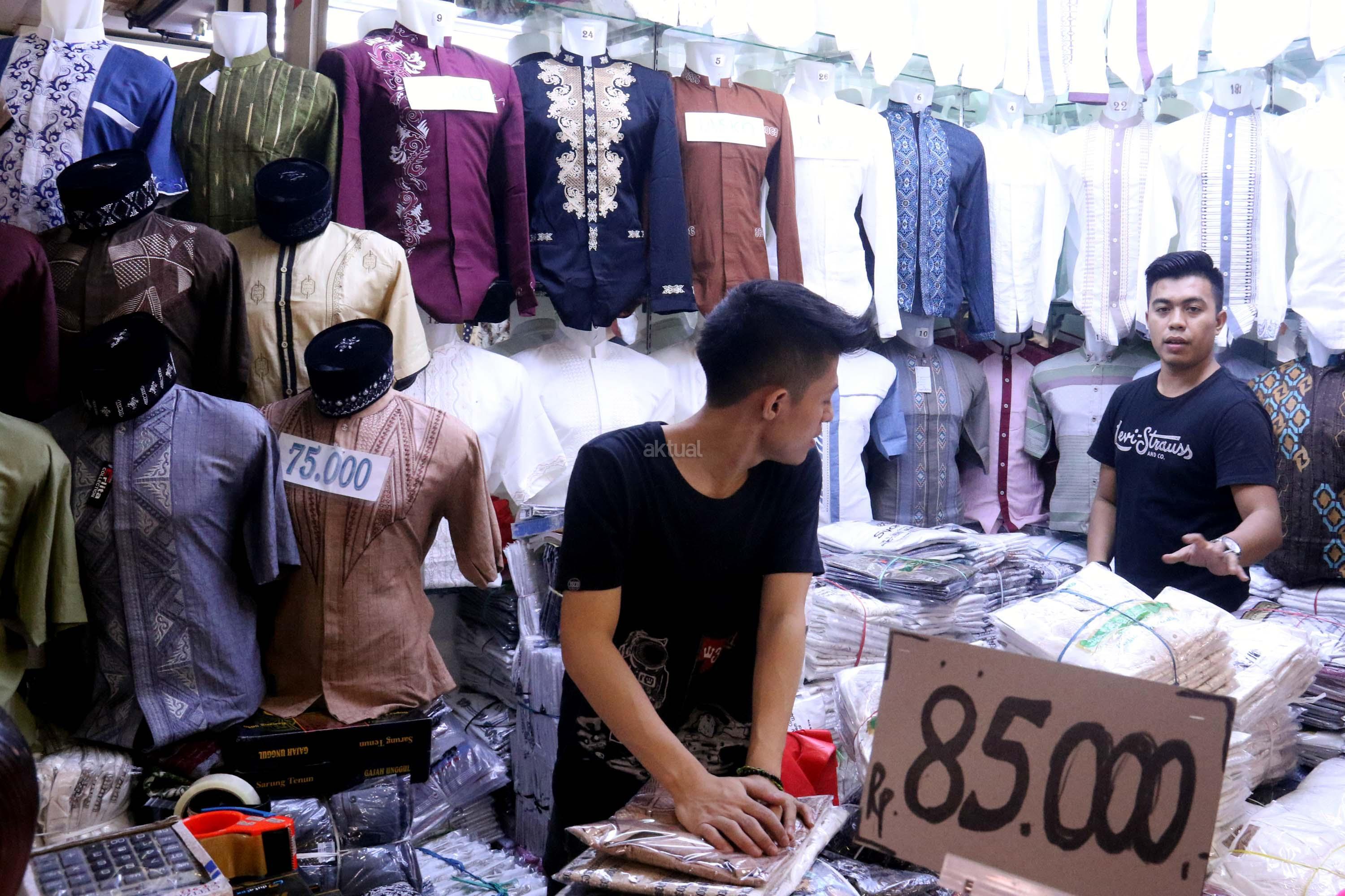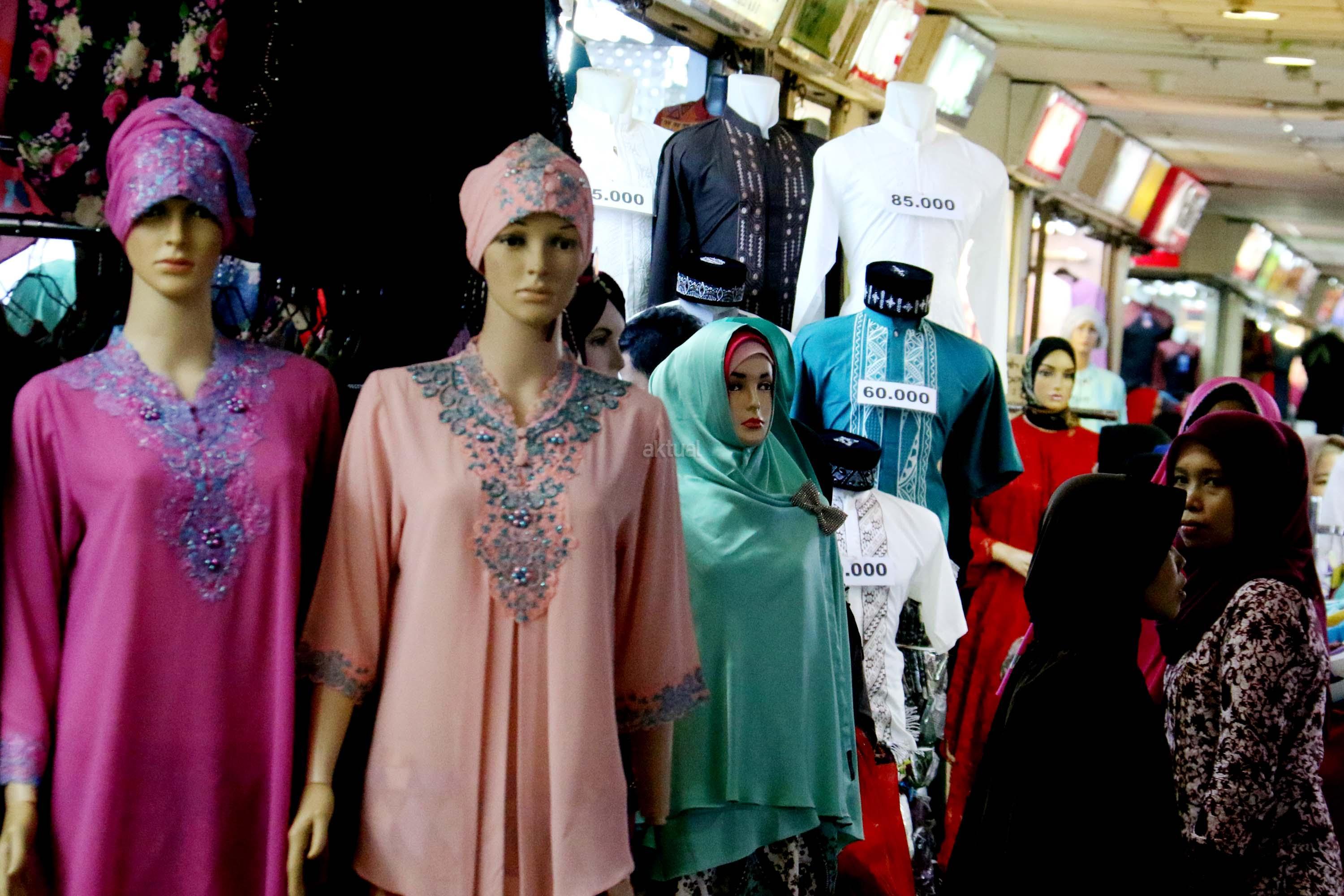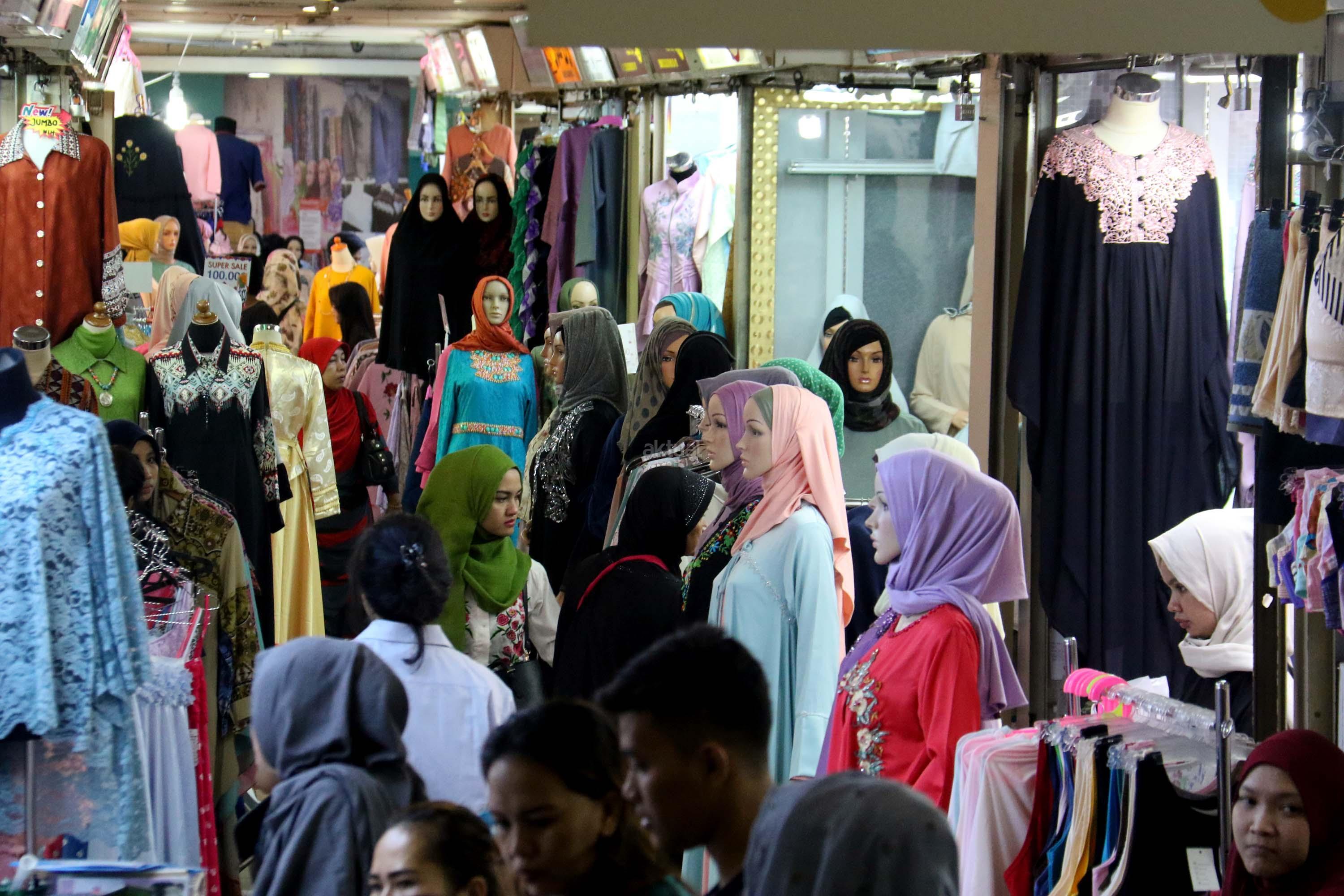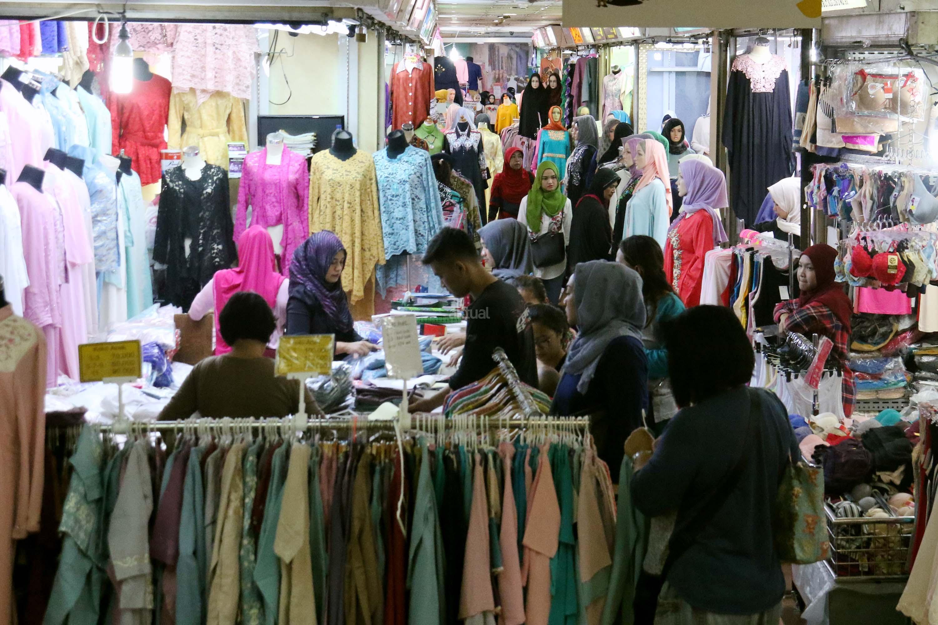 Suasana di Pasar Tanah Abang, Jakarta, Senin (29/5/2017). Dalam bulan suci Ramadan, penjualan busana Muslim di pasar grosir pakaian Tanah Abang kembali mengalami peningkatan. AKTUAL/Munzir