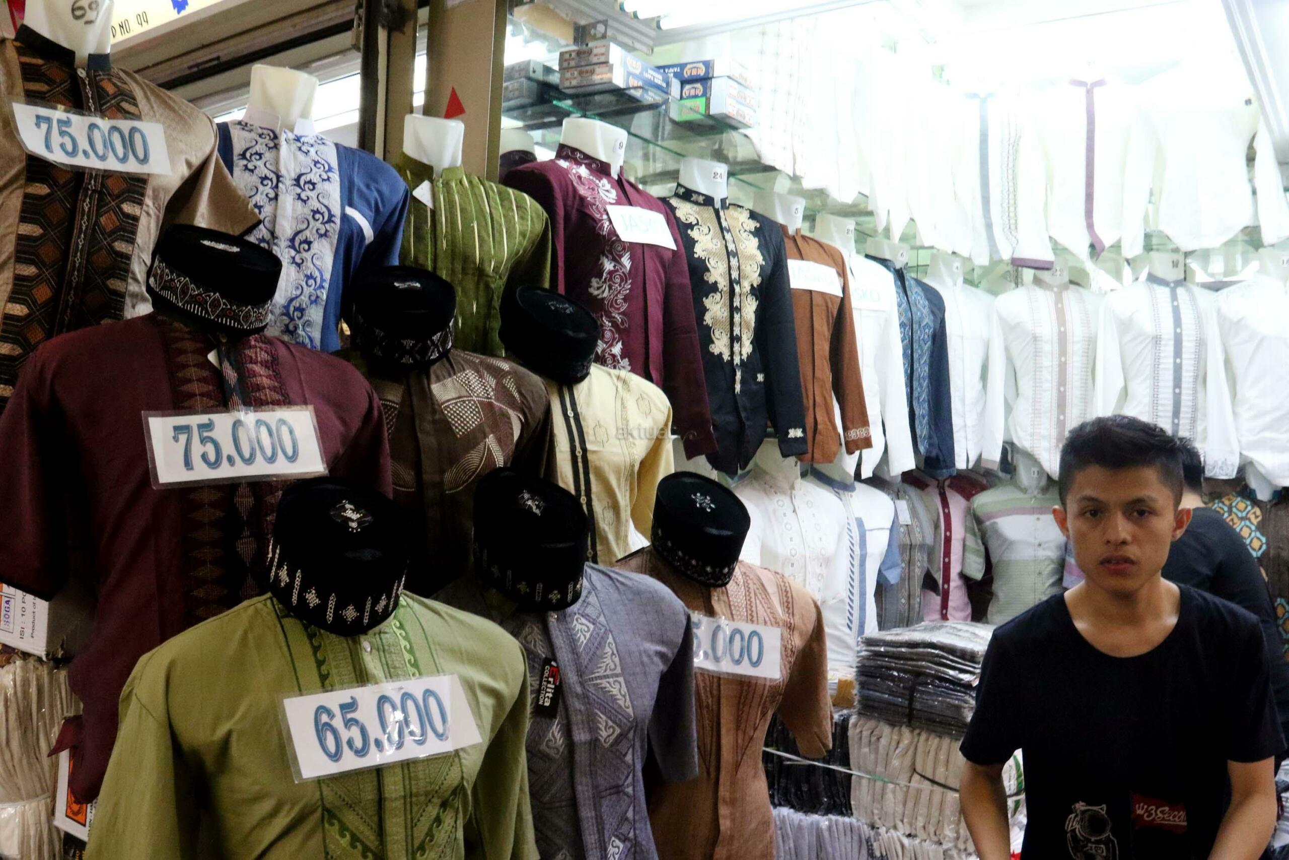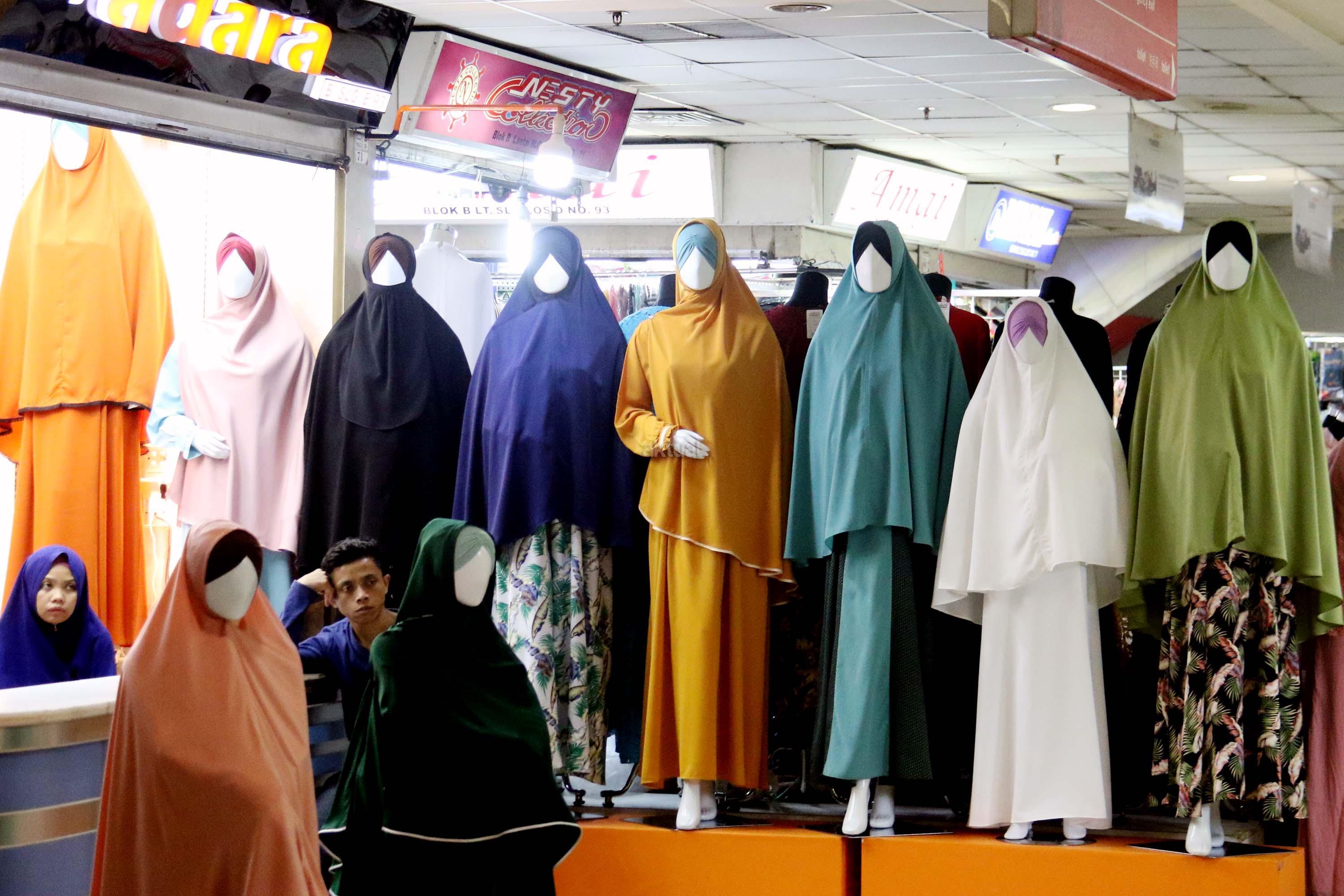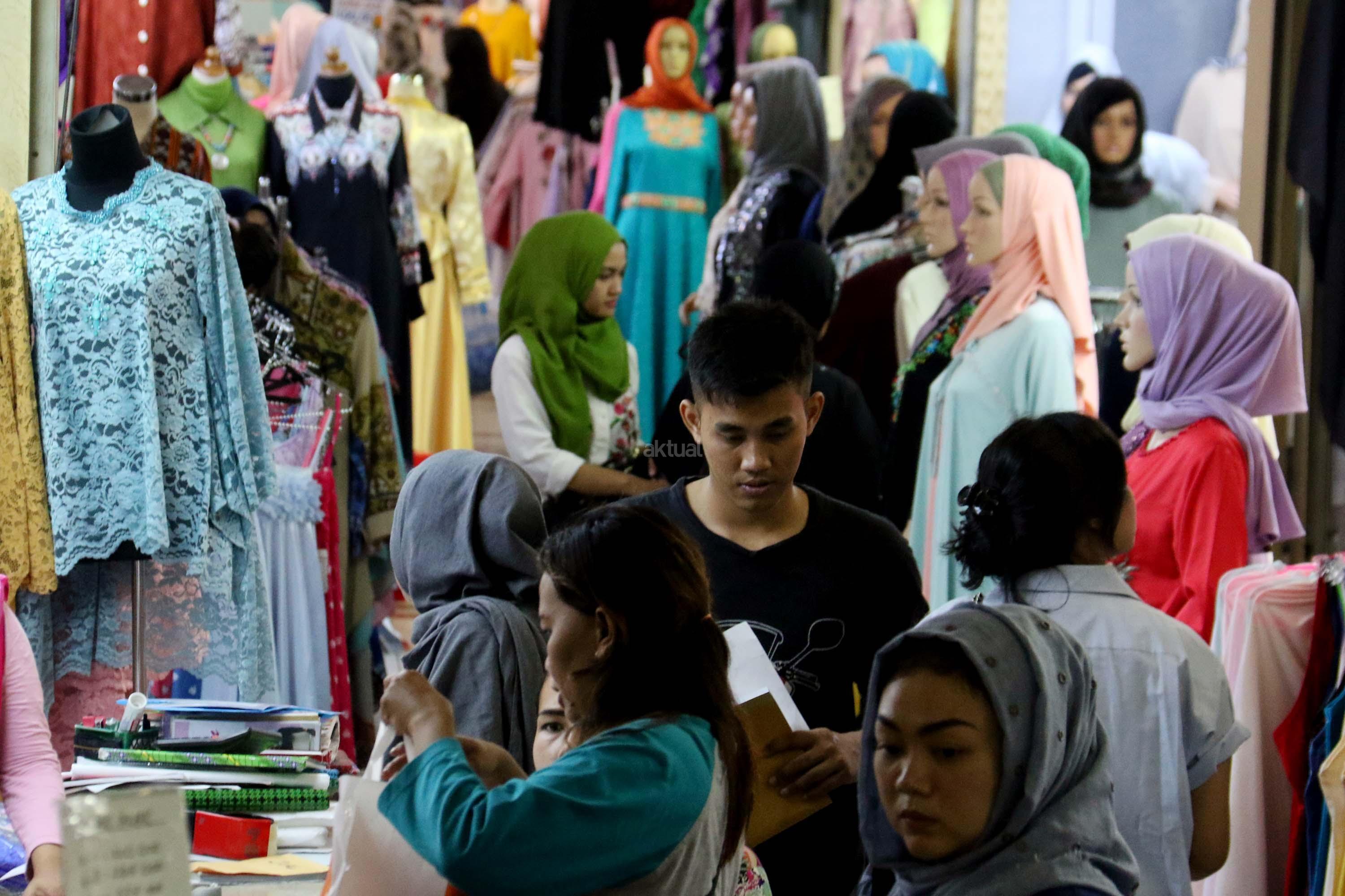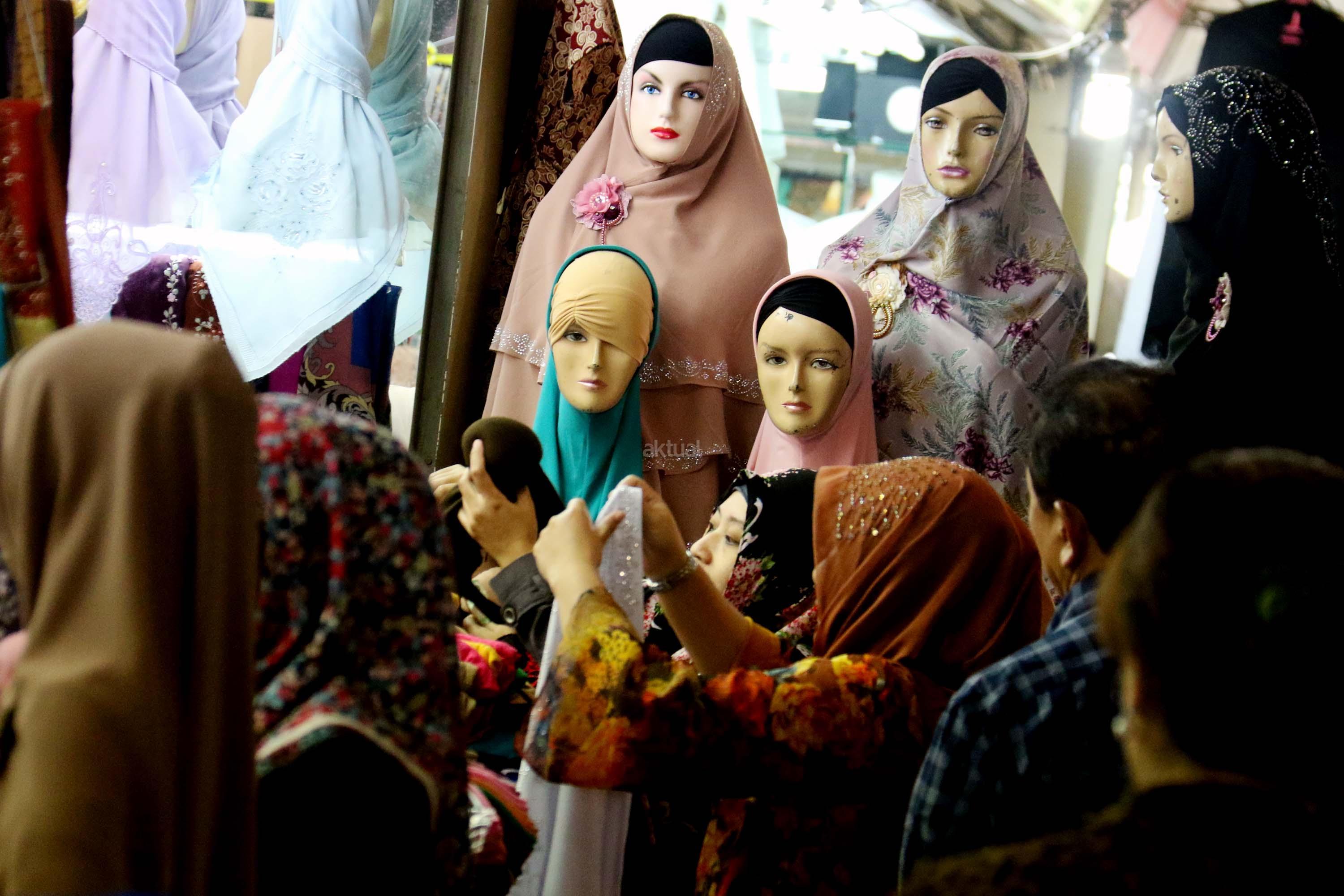 Suasana di Pasar Tanah Abang, Jakarta, Senin (29/5/2017). Dalam bulan suci Ramadan, penjualan busana Muslim di pasar grosir pakaian Tanah Abang kembali mengalami peningkatan. AKTUAL/Munzir